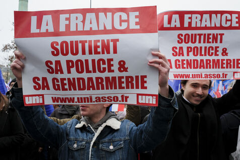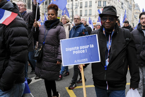 A l'appel du syndicat Alliance, les policiers et agents des forces de l'ordre manifestent, lors d'une "mobilisation citoyenne" pour dénoncer la détérioration de leurs conditions de travail, le manque de moyens et de respect