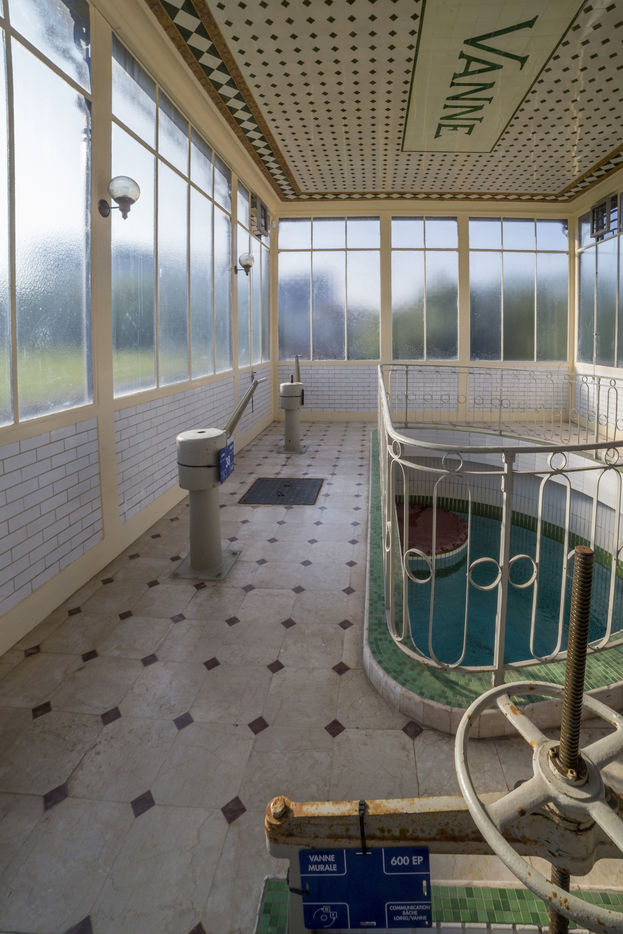 France, Paris, 2014-09-09. Lors d?un arrêt exceptionnel de l?aqueduc du Loing (Seine-et-Marne) pour des travaux de rénovation, la bâche, en forêt de Fontainebleau, point de convergence des aqueducs du Loing et du Lunain, dont les eaux se mélangent ici à celles de la Sorques, de la Vanne et de la Voulzie. Départ de l?aqueduc du Loing, long de 95 km, en fonction depuis 1900. Il peut transporter jusqu?à 210 000 m3 d?eau par jour et alimente un million d?habitants au c?ur de Paris.