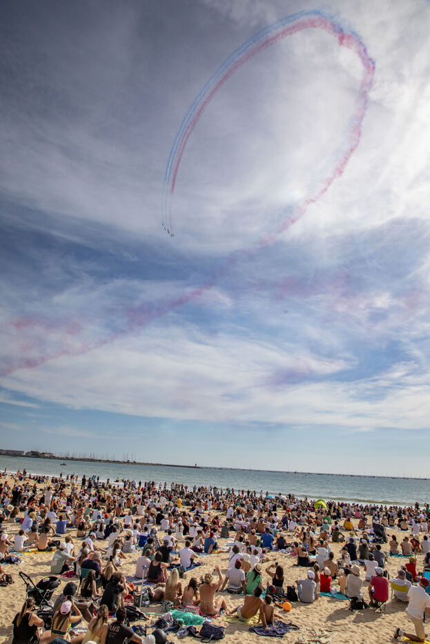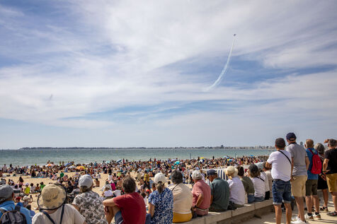 This event marked the end of summer in Pornichet and along the Loire coast: the fifth edition of Pornichet Plein Vol, France's largest air show, flew over La Baule Bay, one of the most beautiful bays in the world, on Saturday, August 23, 2025. The highlight was the maneuvers of the Patrouille de France's Alpha jets, a demonstration of the Dauphin 35F helicopter, the Airbus A400M Atlas, the ATL2 maritime patrol aircraft, the French Air and Space Force aerobatic team, and the Phoenix parachute team. Photography by Caroline Paux / Hans Lucas