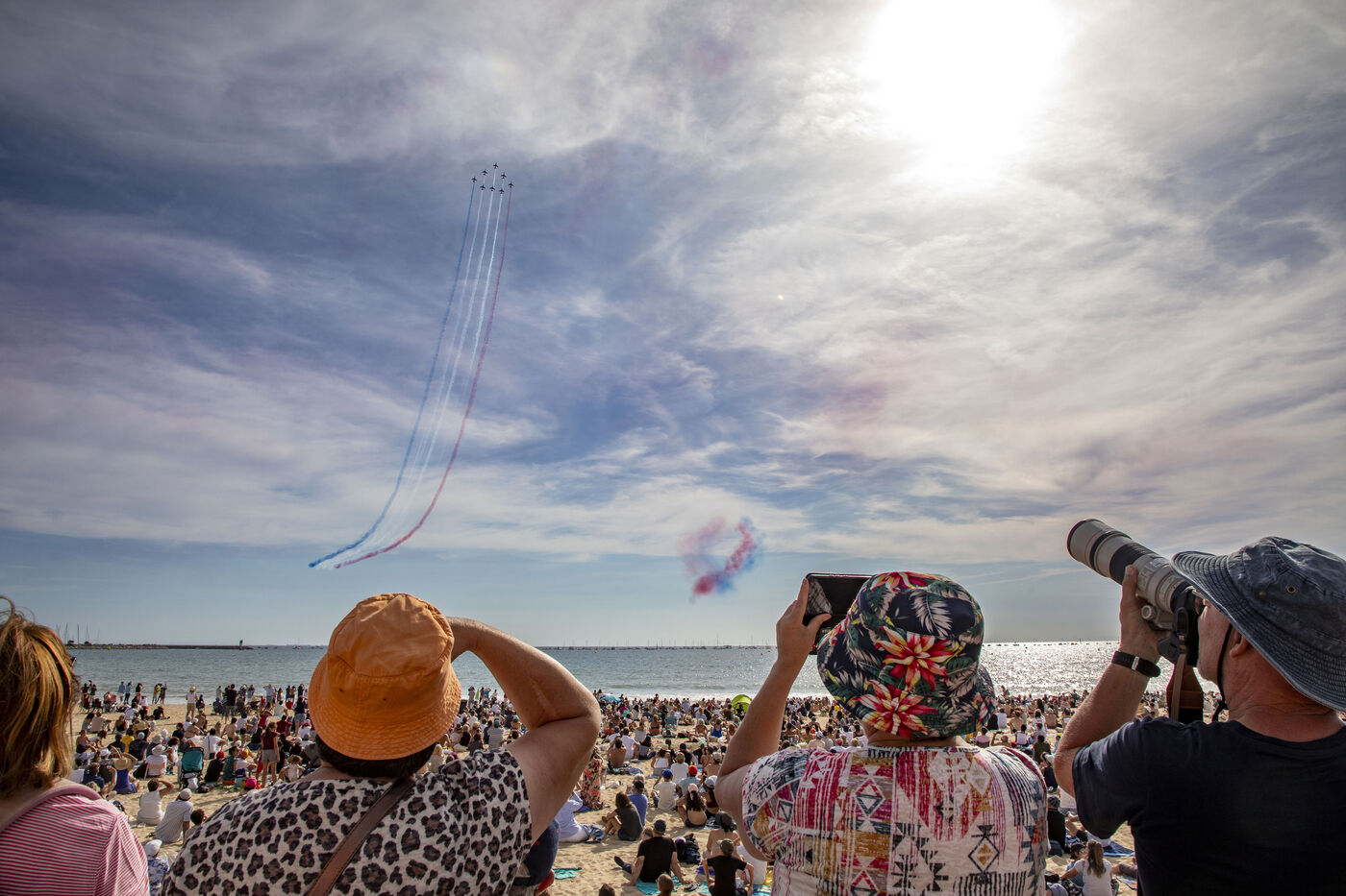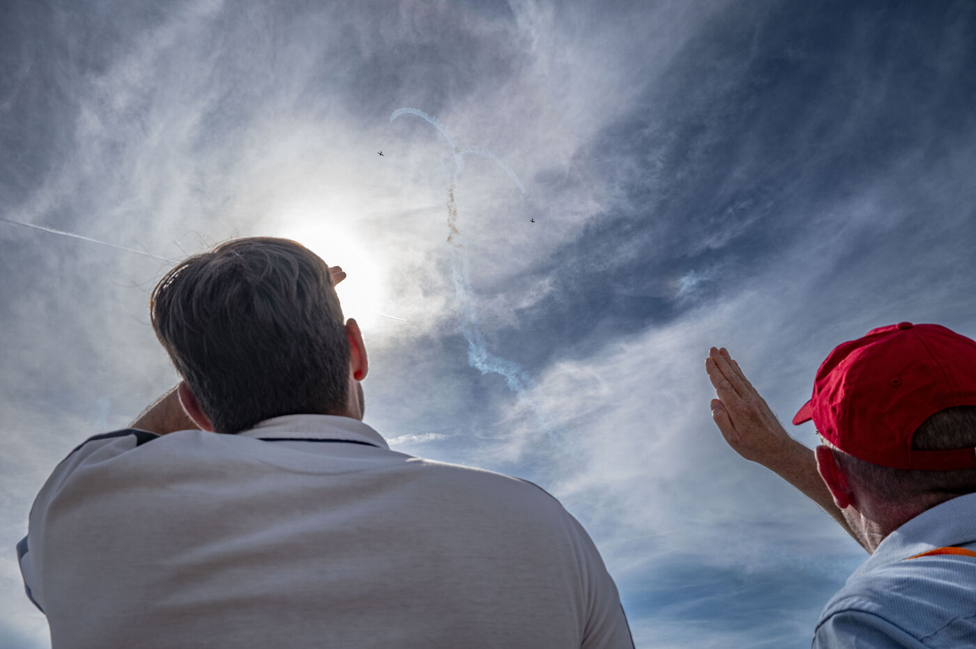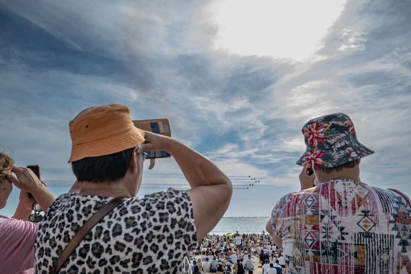 C’est l’événement qui a marqué la fin de l’été à Pornichet et sur le littoral ligérien : la 5e édition de Pornichet Plein Vol, le plus important meeting aérien de France, a survolé la Baie de La Baule, une des plus belles baies du monde, le samedi 23 août 2025. En point d’orgue les évolutions des Alpha jets de la Patrouille de France, une démonstration de l’hélicoptère Dauphin 35F, de l’Airbus A400M Atlas, de l’avion de patrouille maritime atl2, de l’équipe de voltige aérienne de l’Armée de l’Air et de l’Espace, de l’équipe Phoenix de parachutistes. Photographie par Caroline Paux / Hans Lucas