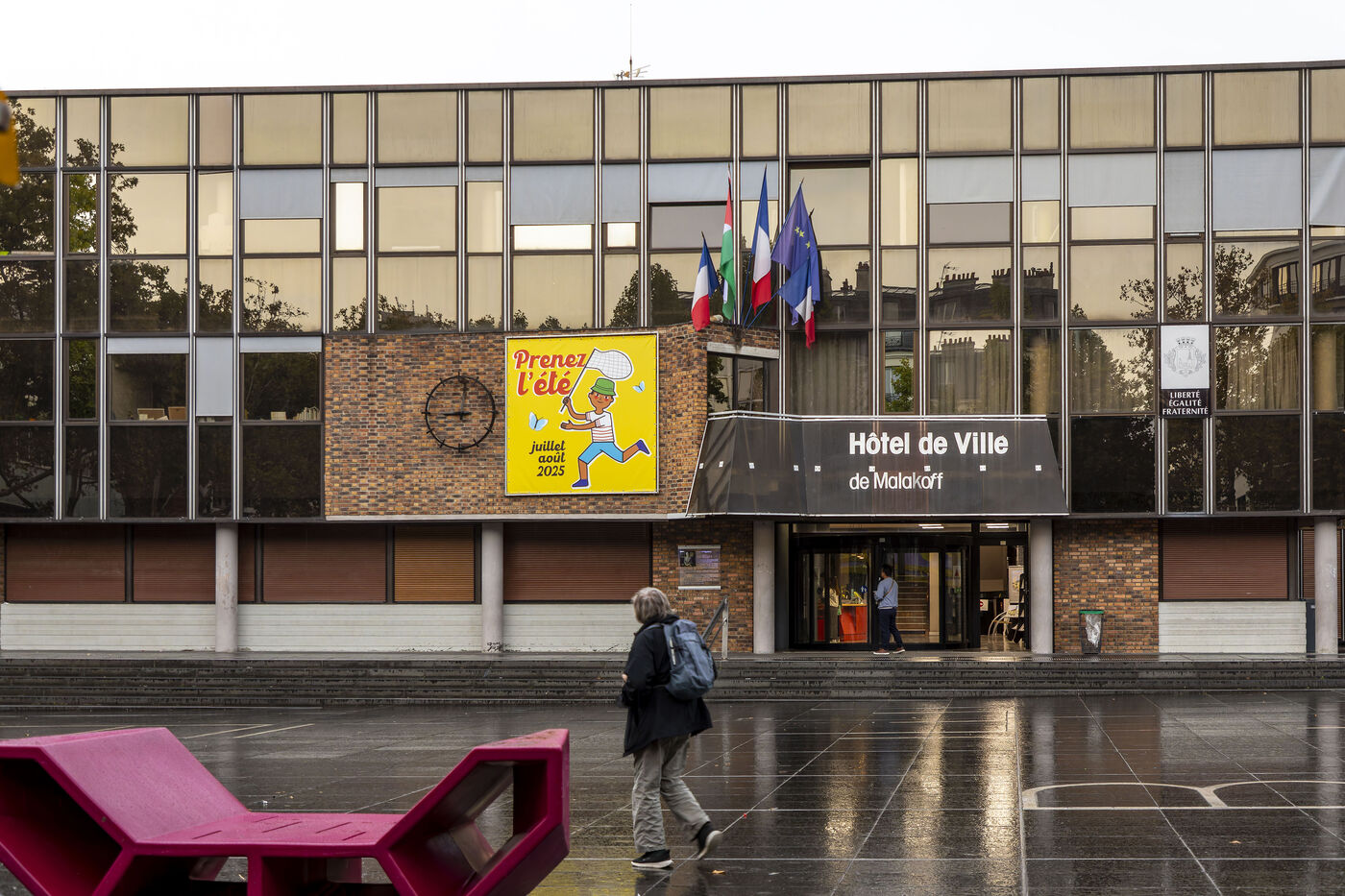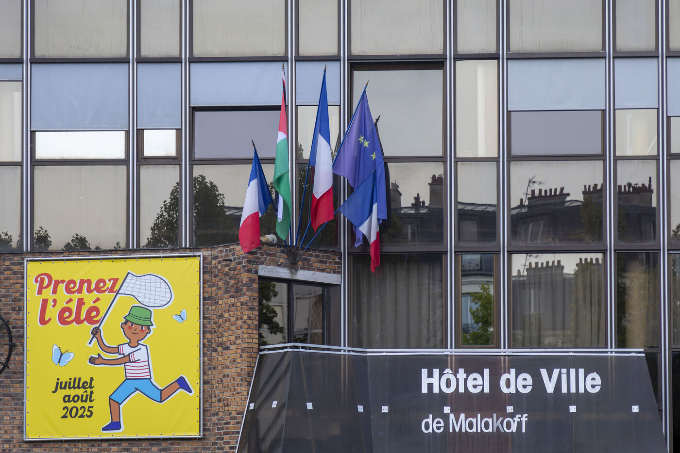 The Palestinian flag hoisted on the front of the town hall between the French and European flags in Malakoff in France on Saturday, September 20, 2025. The prefect of Hauts-de-Seine, following instructions from the Ministry of the Interior, asked the mayor, Jacqueline Belhomme, to remove the flag, failing which he would urgently refer the matter to the administrative court of Cergy-Pontoise on grounds of secularism.