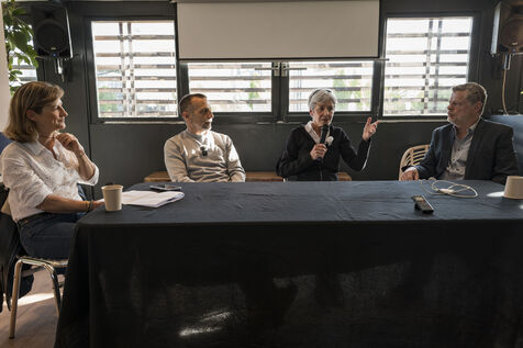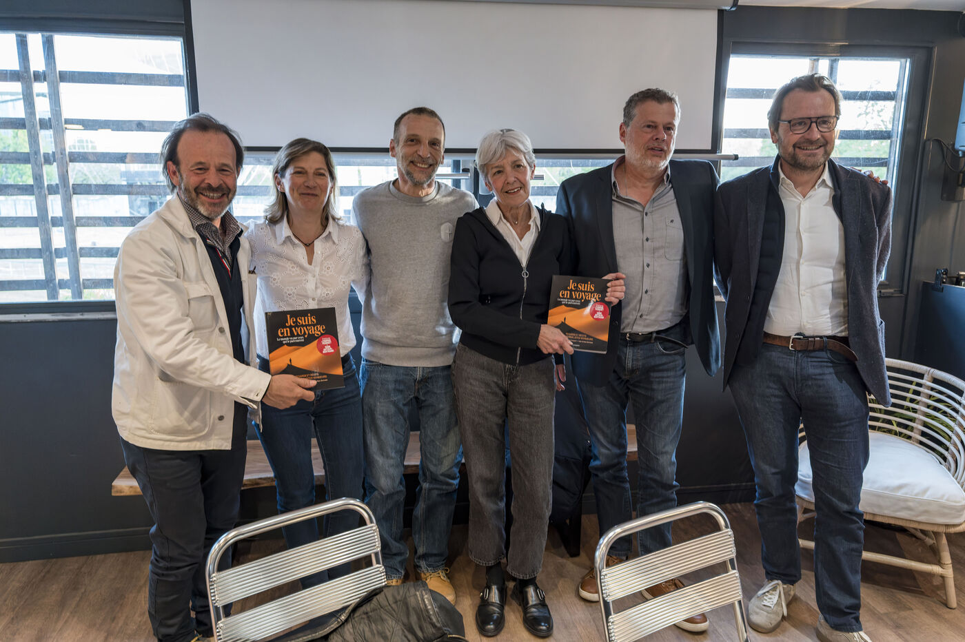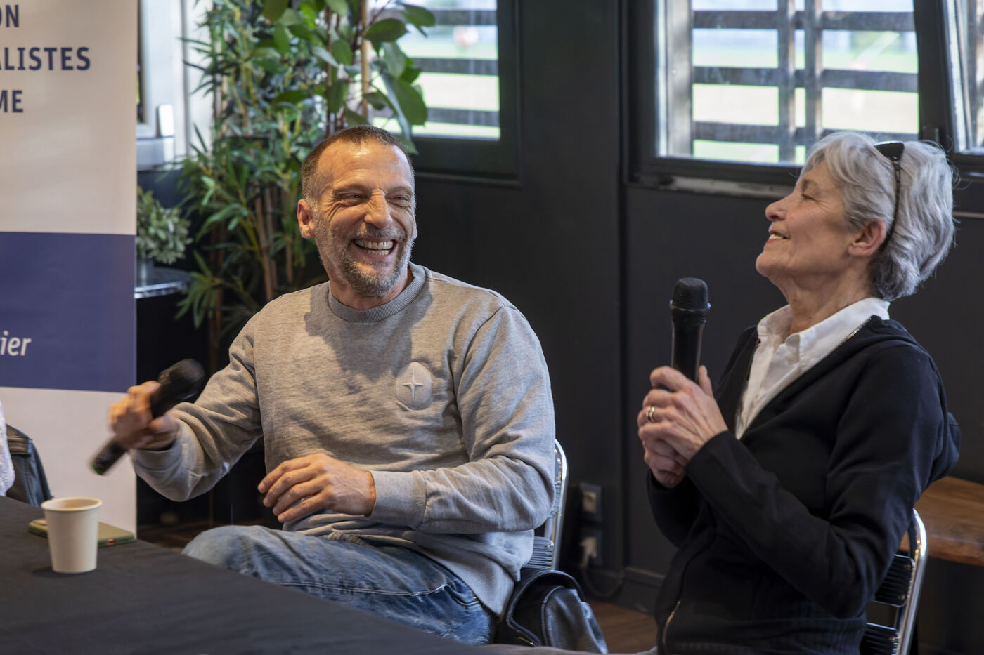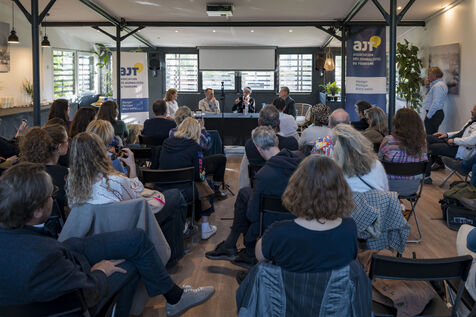 On April 20, 2026, the Association of Tourism Journalists (AJT) hosted an Unexpected Encounter at the Ballon de Paris—a dialogue on exploration and daring—featuring astronaut Claudie Haigneré and actor-director Mathieu Kassovitz, attended by some fifty journalists. Photograph by Caroline Paux / Hans Lucas