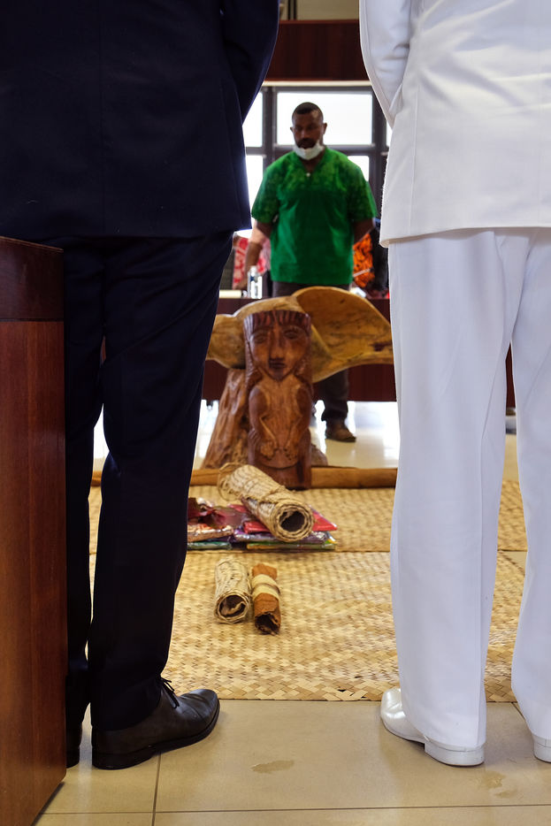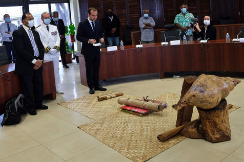Overseas Minister Sébastien Lecornu is on a official visit to New Caledonia to mesure the lenght of the health crisis due to the COVID-19 pandemic and to anticipate the organization of the 3rd referendum of self-determination or so called "Independance" of the territory which will take place on December 12. During his first day of official visit, the Minister first went to the "Coutumier" Senat also knowed as The House of the Ceremonial of Giving to perform a "Coutume" : a sign of respect, humility and welcome in the presence of Yvon Kona, President of the "Coutumier" Senate and Patrice Faure, High Commissioner of the French Republic in New Caledonia.