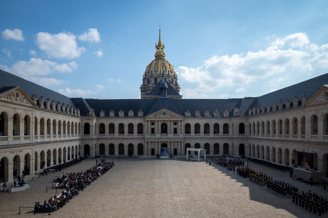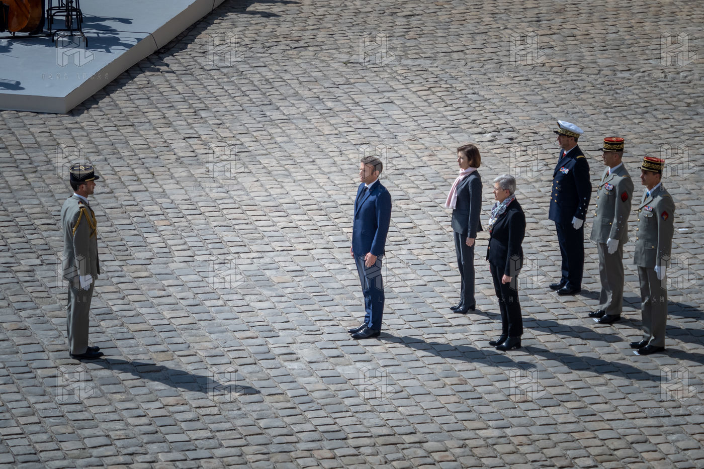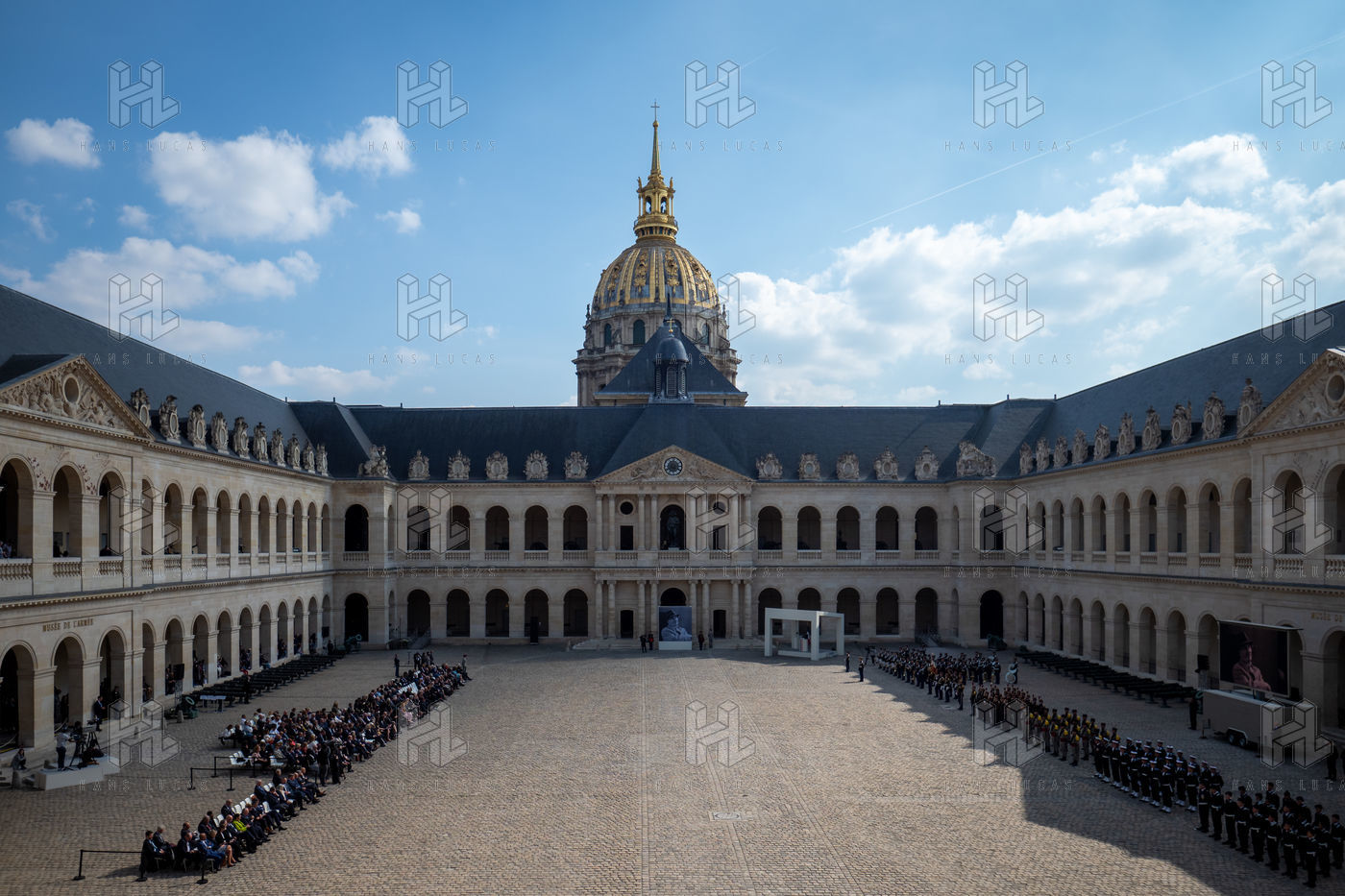 Hommage national à l'acteur français Michel Bouquet décédé le 13 avril 2022, présidé par Emmanuel Macron à l hôtel des Invalides à Paris.