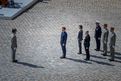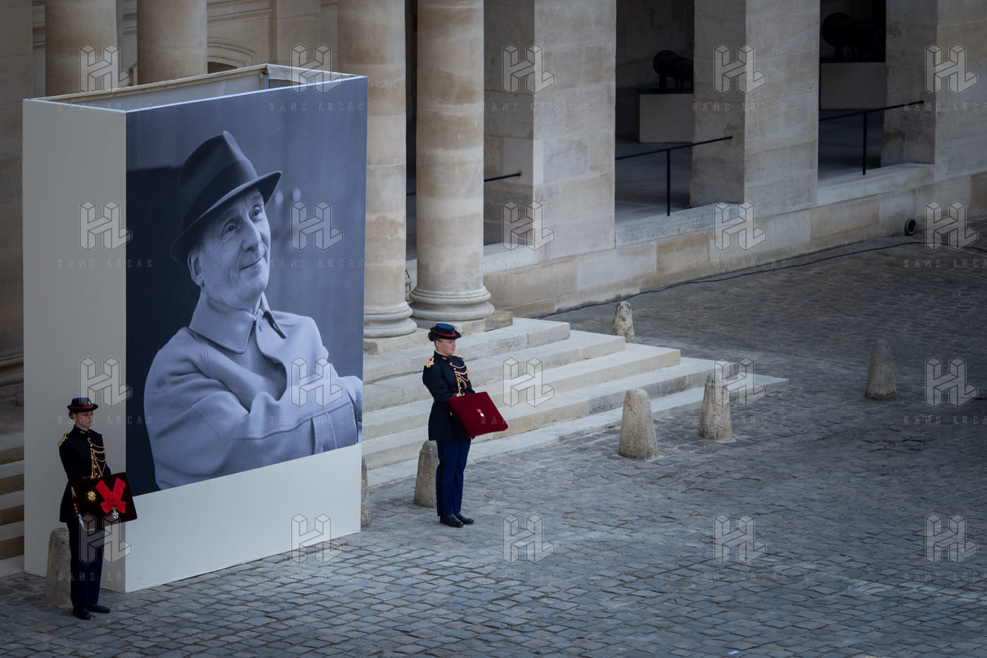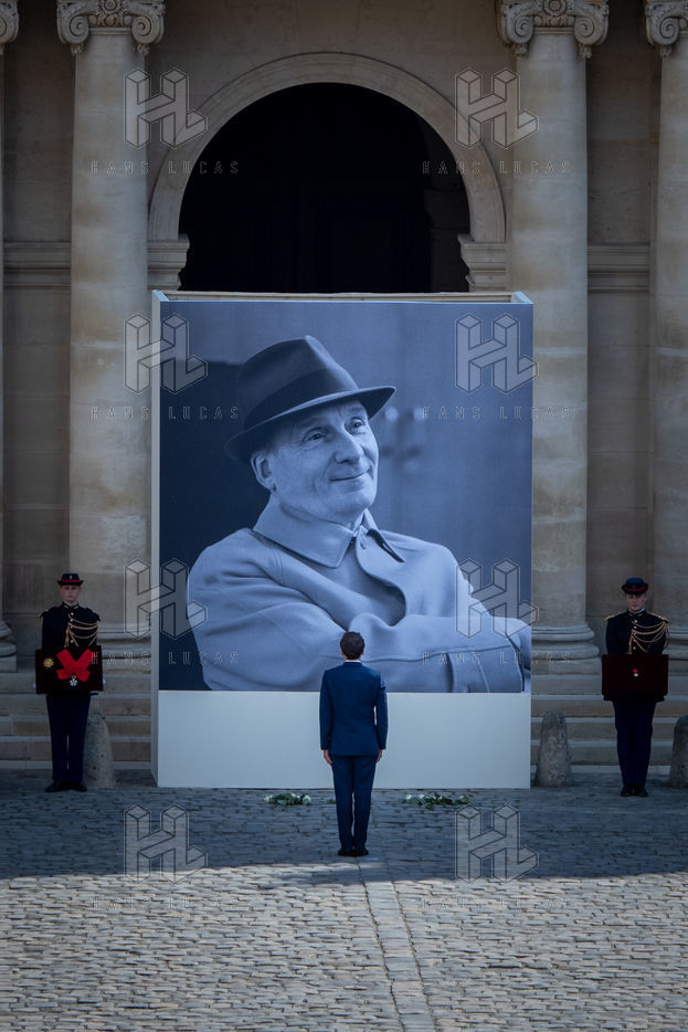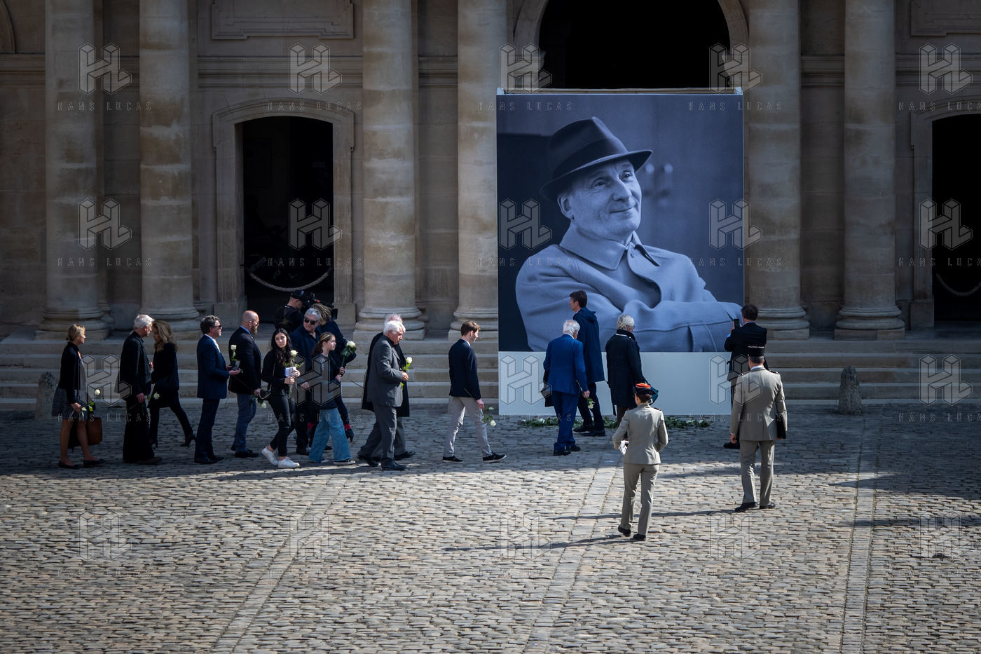 National tribute to the French actor Michel Bouquet who died on April 13, 2022, presided over by Emmanuel Macron at the Hotel des Invalides in Paris.