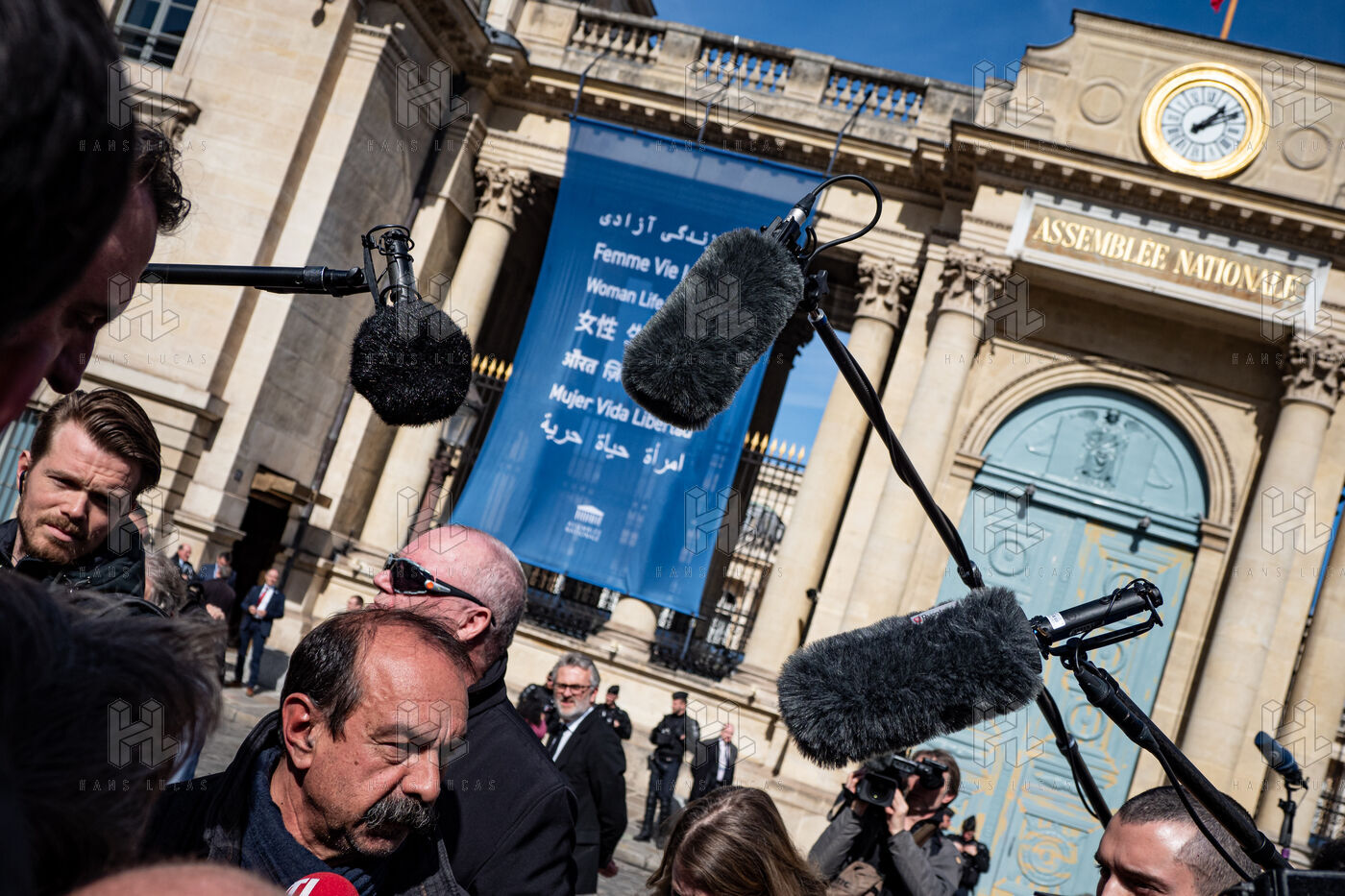 Press conference of the union representatives in front of the national assembly before the announcement of the 49-3.