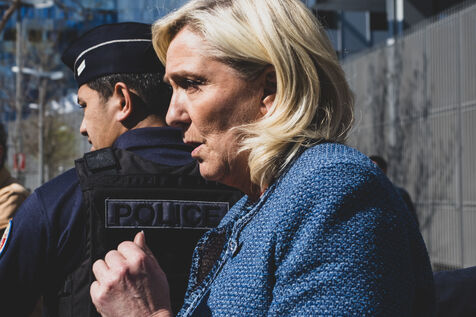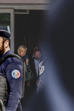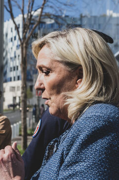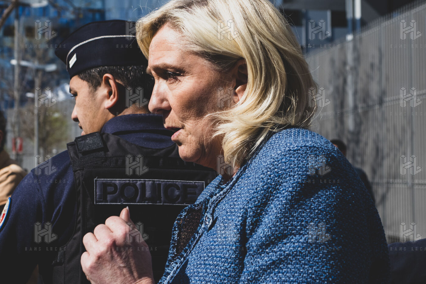 Marine Le Pen, députée et ex présidente du Rassemblement National au tribunal de Paris pour l"'affaire des assistants parlementaires".