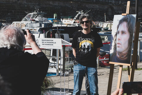Anne Hidalgo, Maire de Paris, rend hommage à Jim Morrison, en nommant la passerelle enjambant le port de l’Arsenal au nom du chanteur mythique du groupe The Doors.