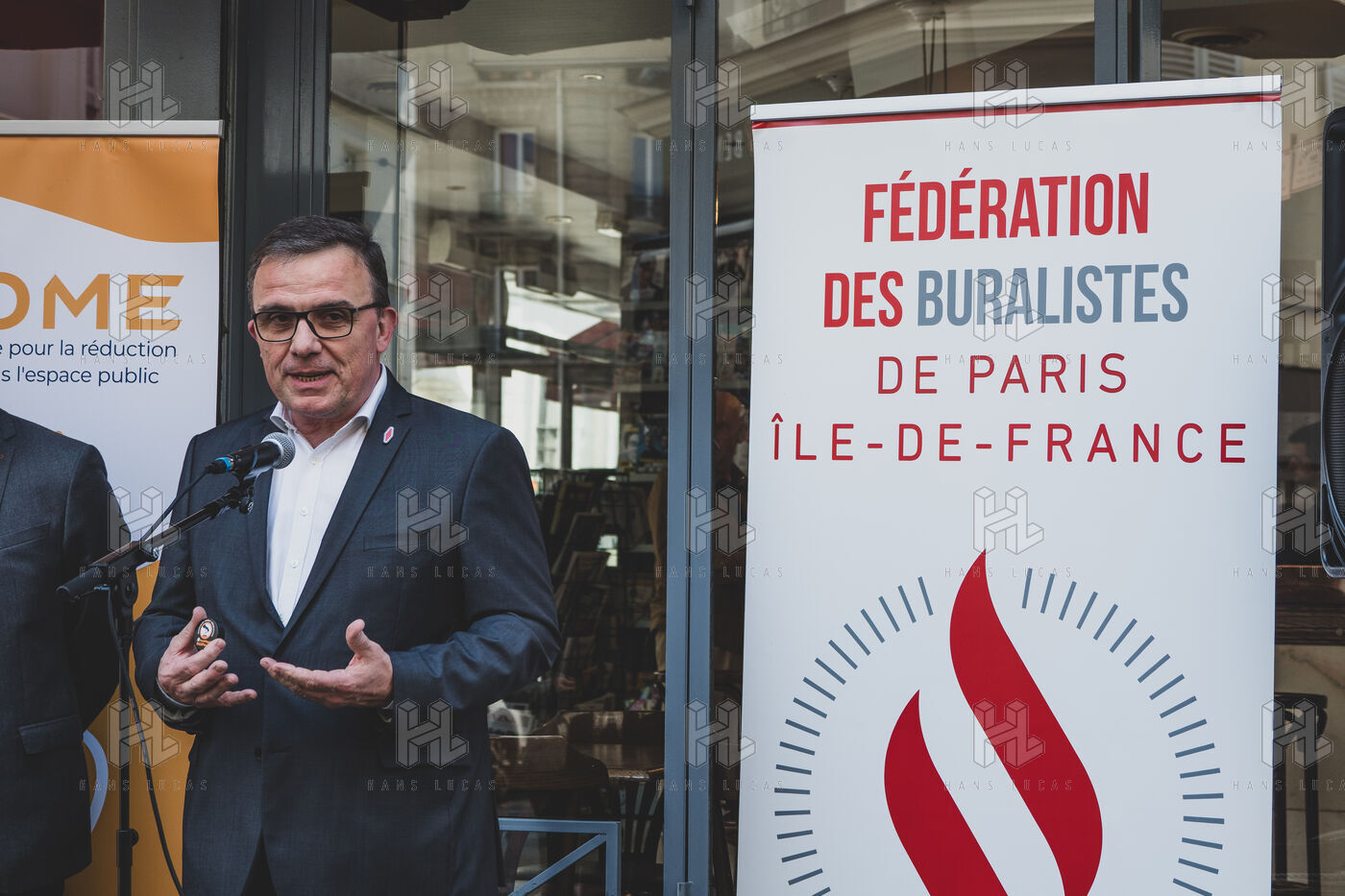 Paris City Hall unveils its new system for combating cigarette butt litter. In the presence of Antoine Guillou, deputy mayor in charge of public space cleanliness, Philippe Alauze, President of the Federation des buraliste d'ile de France and Jonathan Decottignies, ALCOME Operations Director. Between 4 and 5 million cigarette butts are thrown into the streets of Paris every day, a scourge that has a major impact on the environment and urban cleanliness.