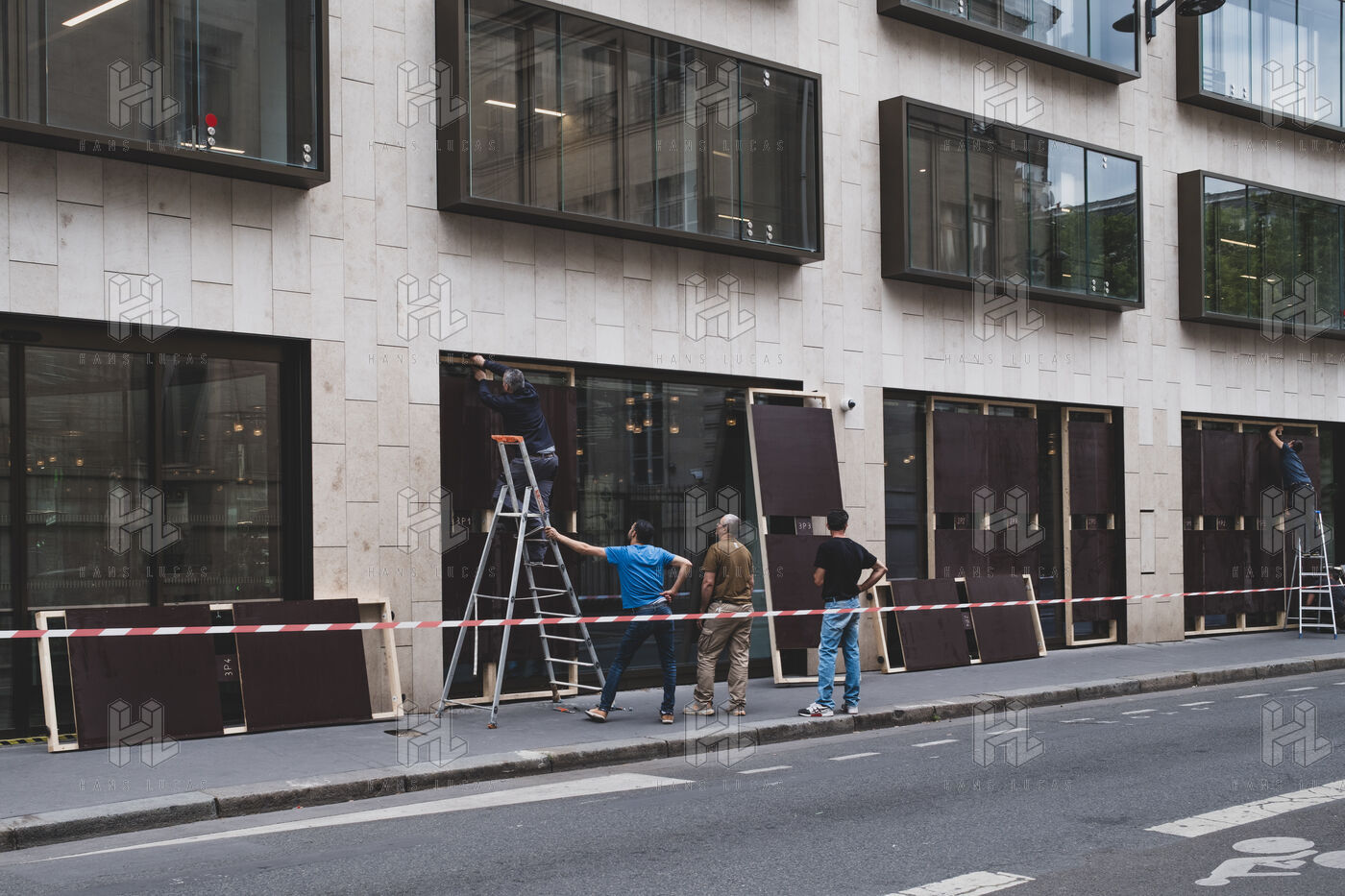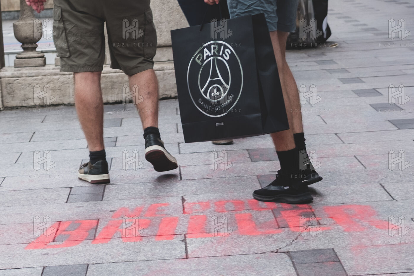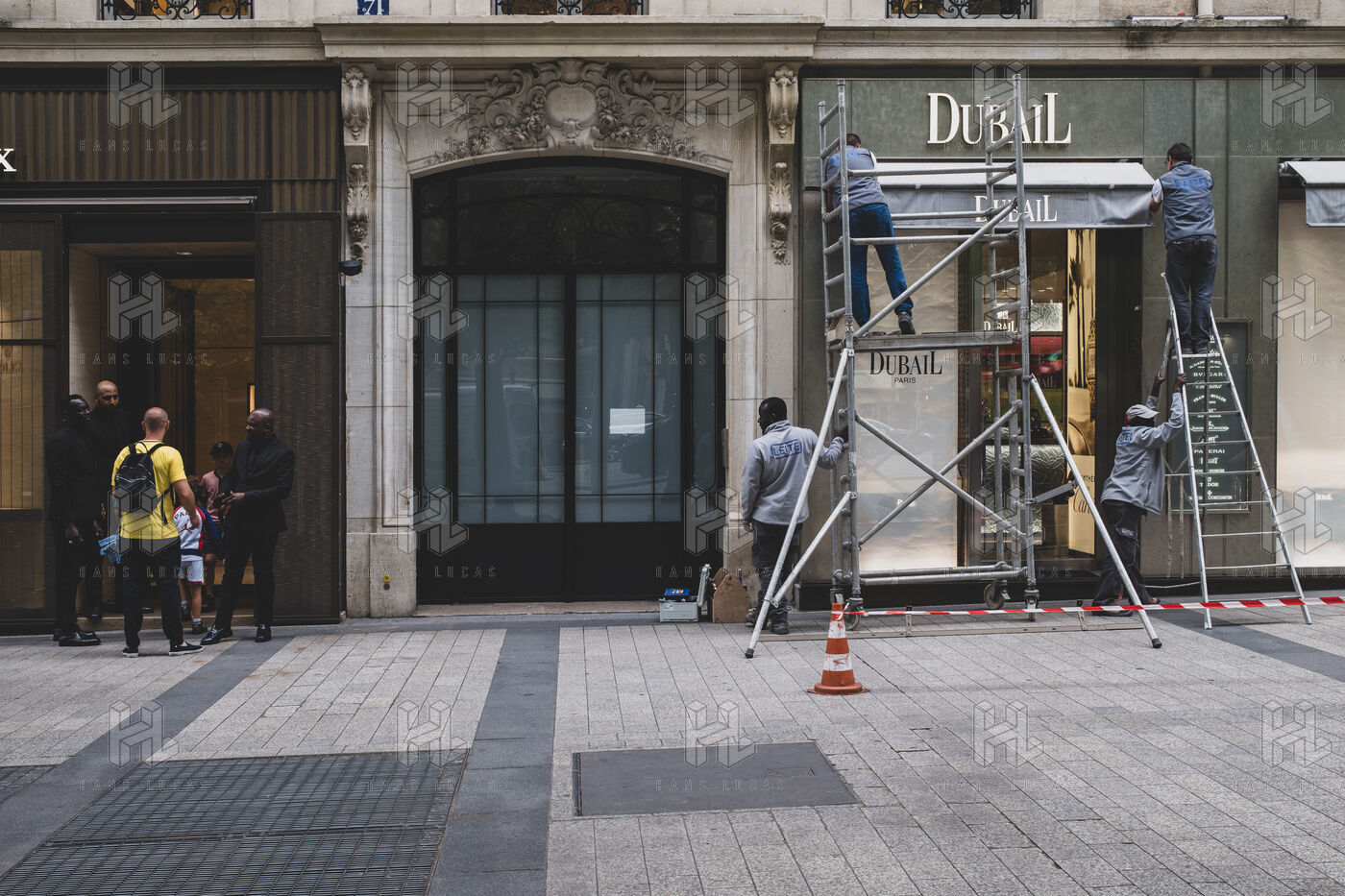 D-Day, the Champs Elysées get ready for PSG's match in the Champions League final, with stores protecting their windows and fans wearing their shirts.