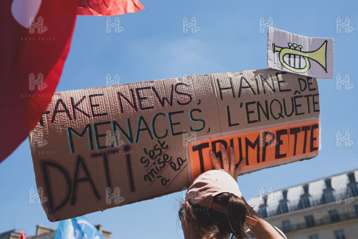 Manifestation contre le projet de loi actant la création d’une holding rassemblant France Télévisions, Radio France et l’INA porté par la Ministre de la culture Rachida Dati.