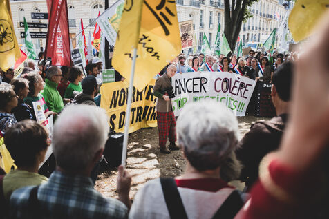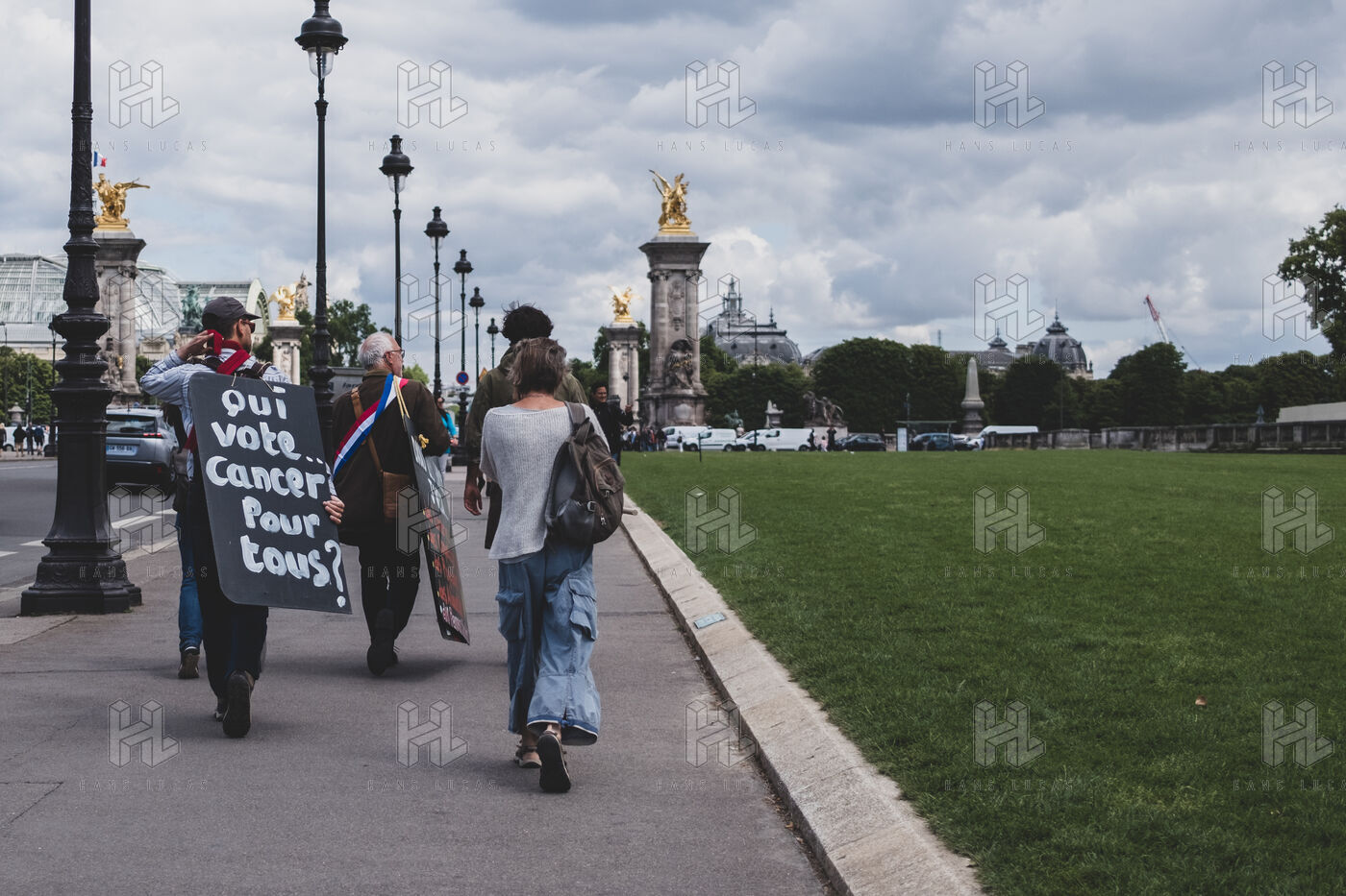 Rassemblement aux Invalides à Paris contre la proposition de loi Duplomb qui vise à "lever les contraintes à l'exercice du métier d'agriculteur". Le texte, qui a fait l'objet d'un accord entre députés et sénateurs en commission mixte paritaire (CMP), a déjà été approuvé par le Sénat le 2 juillet.