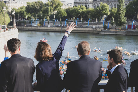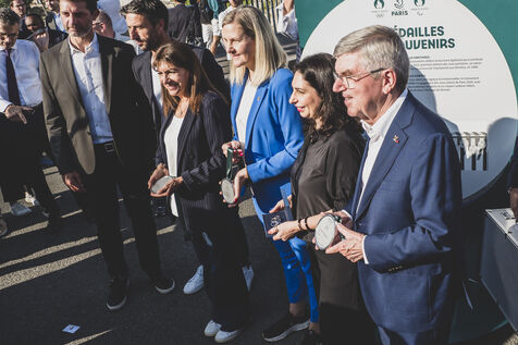 In the presence of IOC President Kirsty Coventry, Tony Estanguet and Sports Minister Marie Barsacq, Anne Hidalgo, Mayor of Paris, honors the great markers of the Olympic legacy on the Pont Saint Louis.