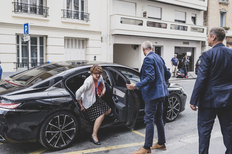 Arrivée des membres du parti Les Républicains pour la Convention Nationale d'Investiture CNI à l'espace Moncassin, Paris 15.