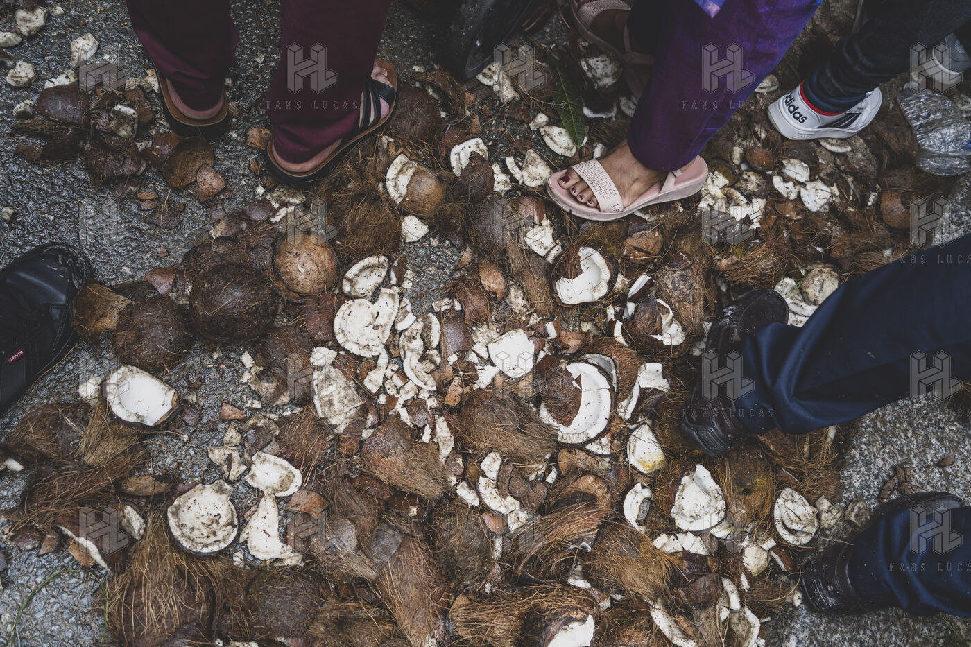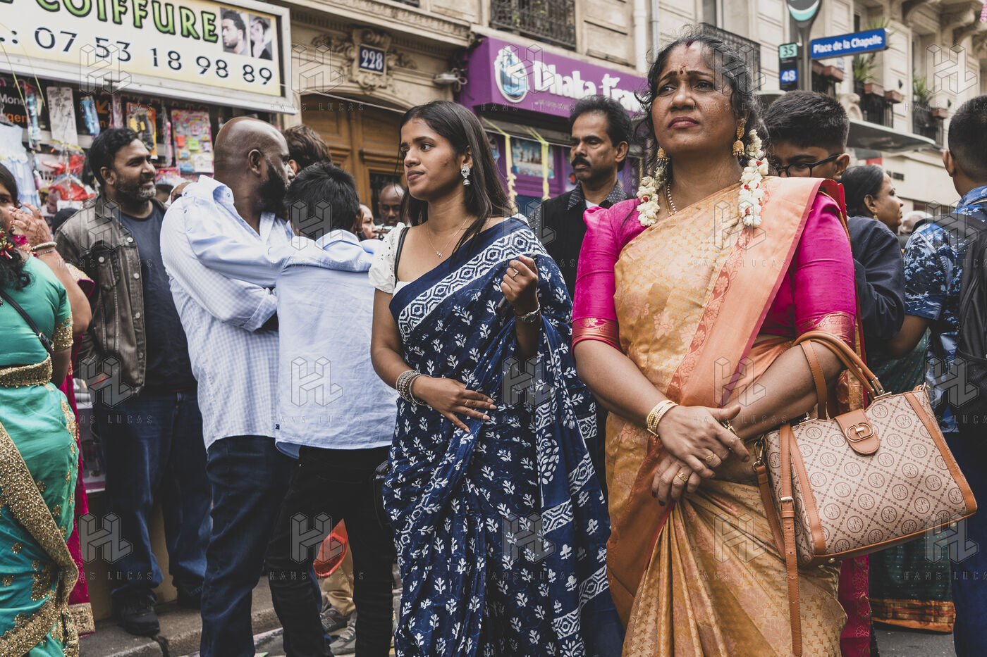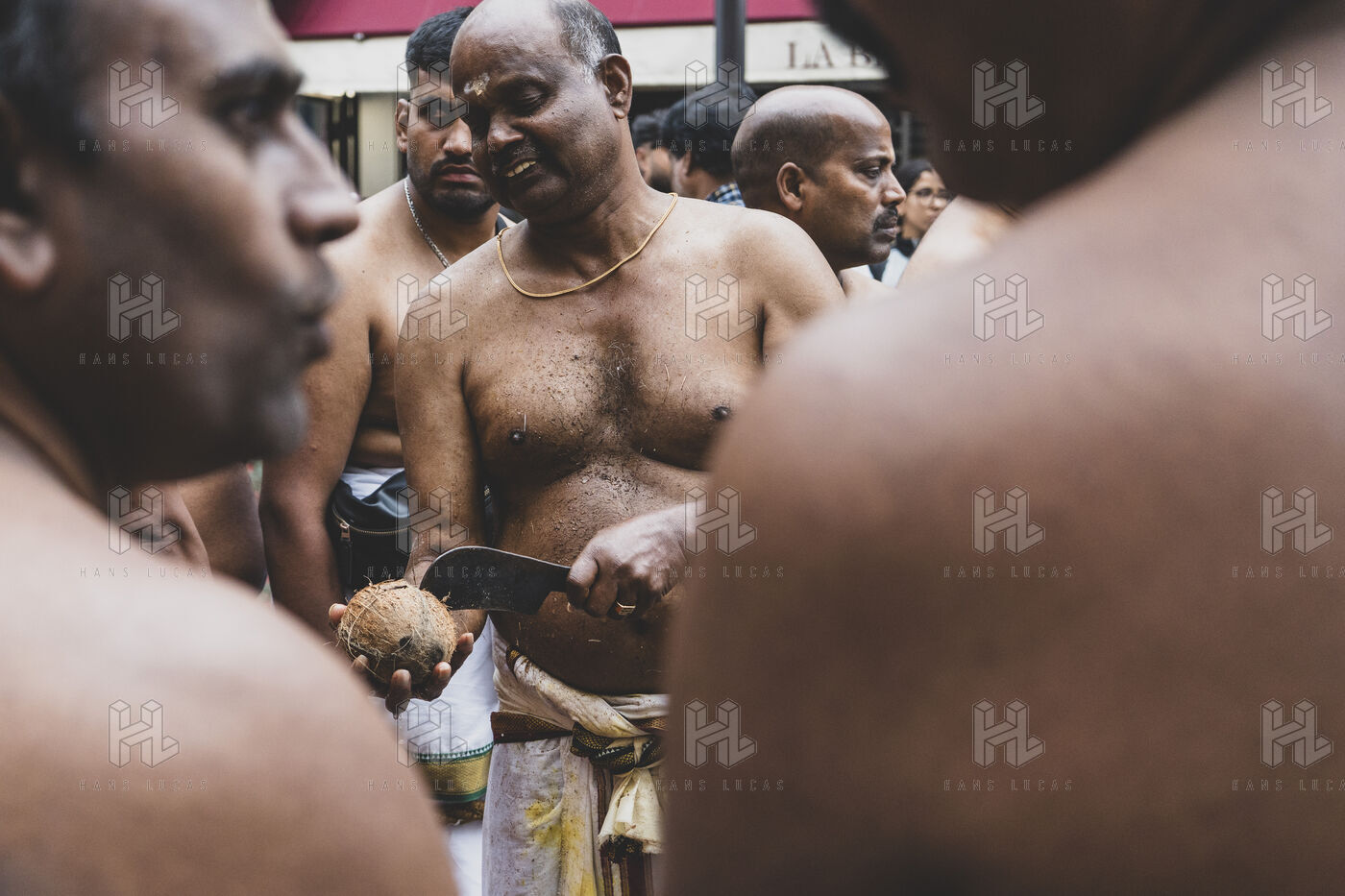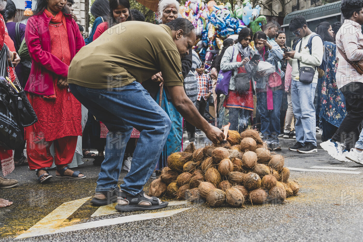 It is around the Sri Manicka Vinayakar Alayam temple located in the 18th arrondissement of Paris, that Ganesh is celebrated every year in the capital. During this day of celebration, religious ceremonies and a procession take place in the streets of the neighborhood. During this religious parade, coconuts are broken: the shell represents the illusion of the world, the flesh represents individual karma, and the coconut water represents the ego. This water is poured as the representation of Ganesha passes by. Next come the dancers, who carry large peacock feather arches called kavadi on their shoulders, and the female dancers, who carry terracotta pots with burning camphor on their heads.