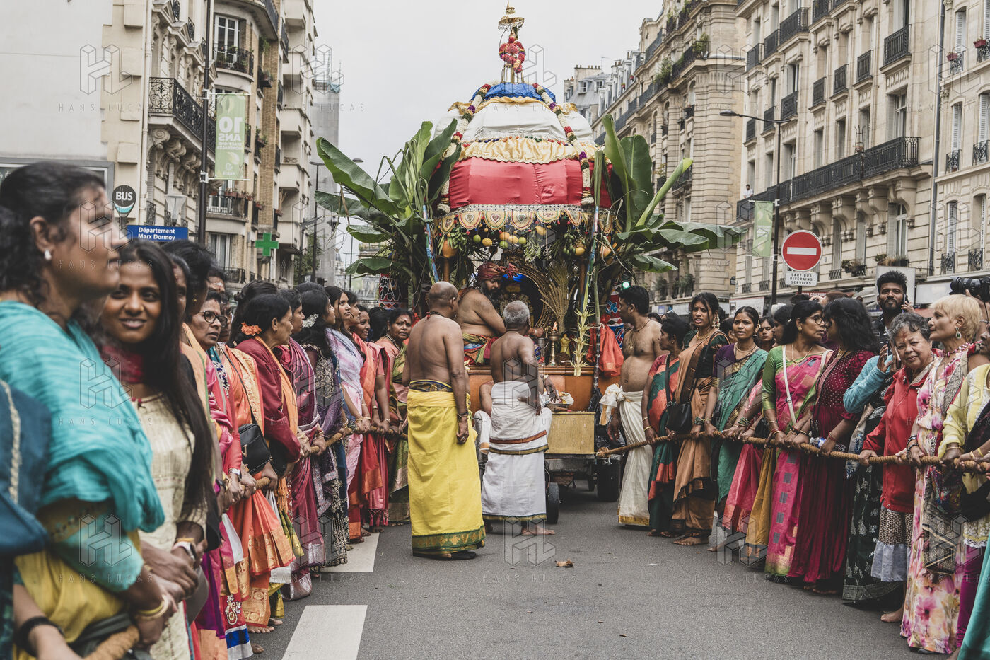 C'est autour du temple de Sri Manicka Vinayakar Alayam situé dans le 18eme arrondissement de Paris que l'on célèbre Ganesh chaque année dans la capitale. Au cours de cette journée de fête, des cérémonies religieuses et une procession dans les rues du quartier. Durant ce défilé religieux, des noix de coco sont brisées : la coquille représente l'illusion du monde, la chair le karma individuel et l'eau de coco l'ego. Cette eau est déversée au passage de la représentation de Ganesha. Viennent ensuite les danseurs qui portent sur leurs épaules un grand arceau de plumes de paon appelé kavadi, et les danseuses qui portent sur leurs têtes des pots de terre cuite dans lesquels brûle du camphre.