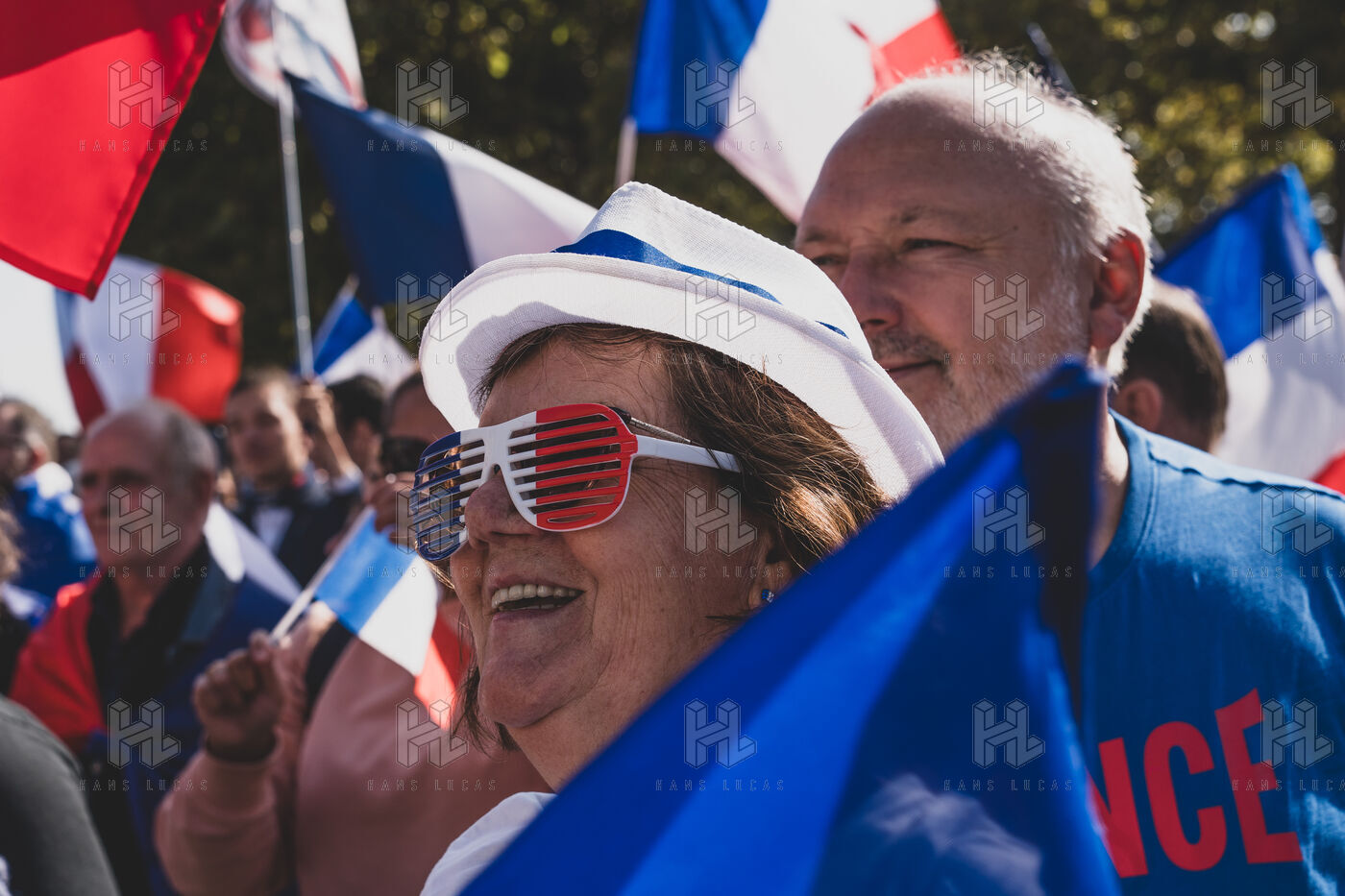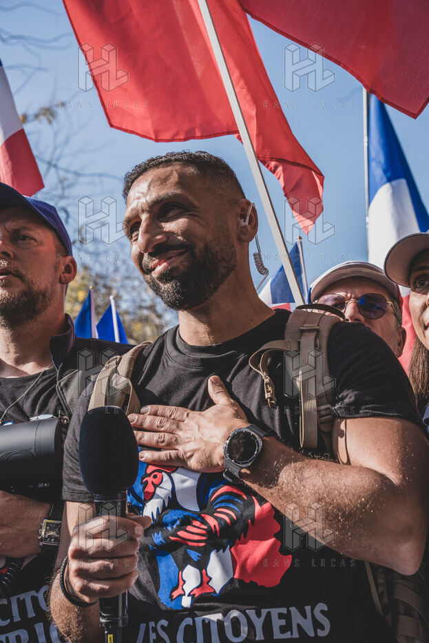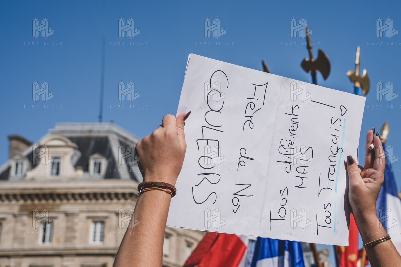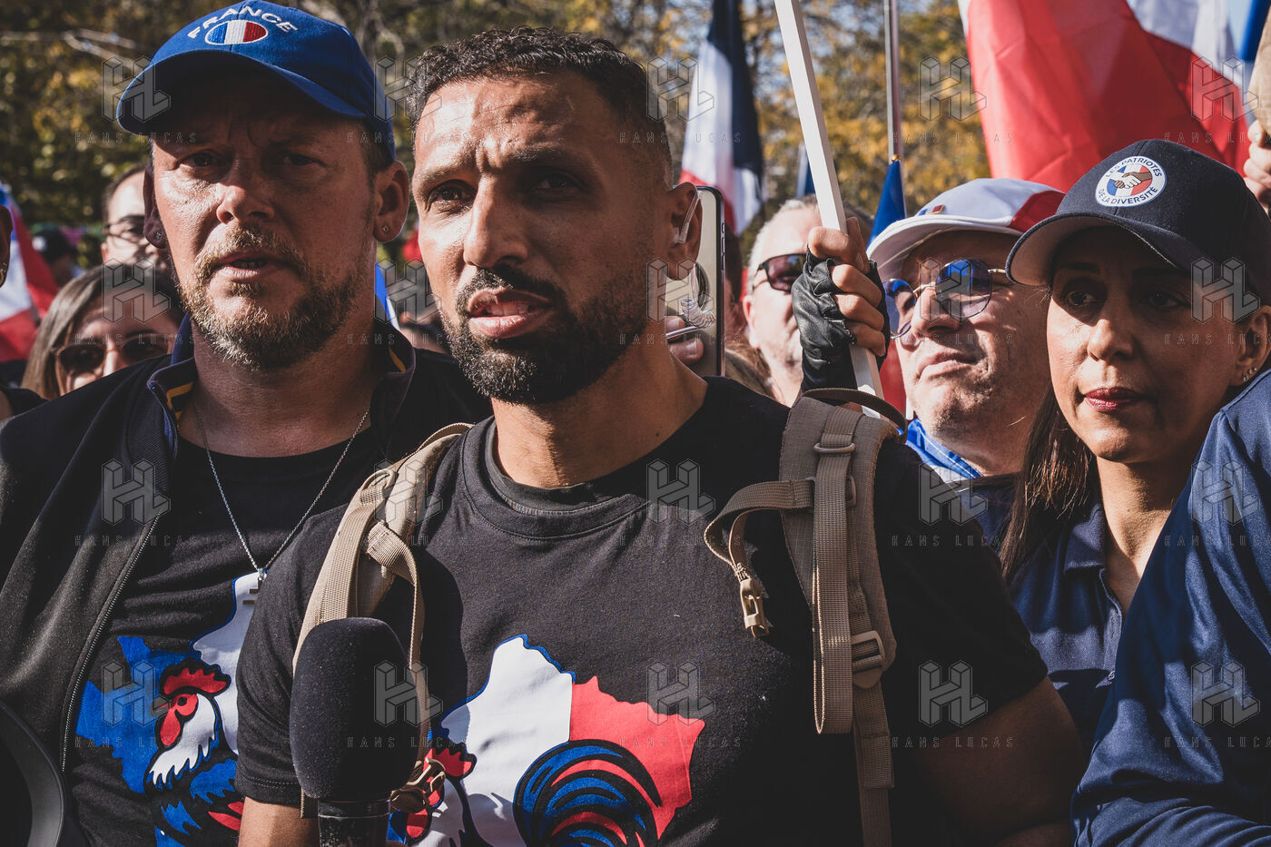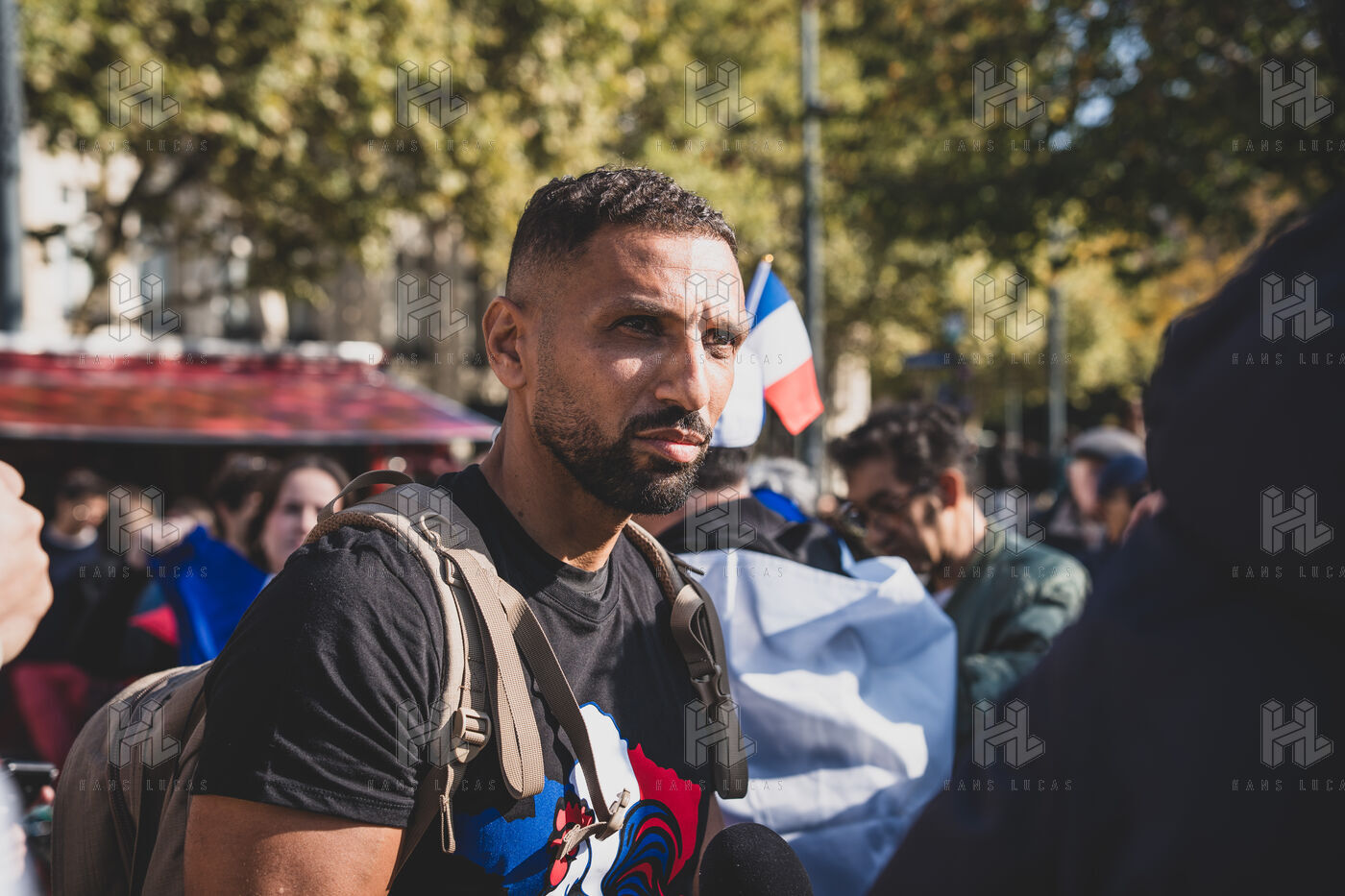 Rassemblement des "Patriotes de la diversité", mouvement républicain et indépendant de citoyens engagés pour défendre les valeurs de liberté, d’égalité de fraternité et laïcité initié par l'influenceur Ben le patriote et Henda Ayari, militante féministe.