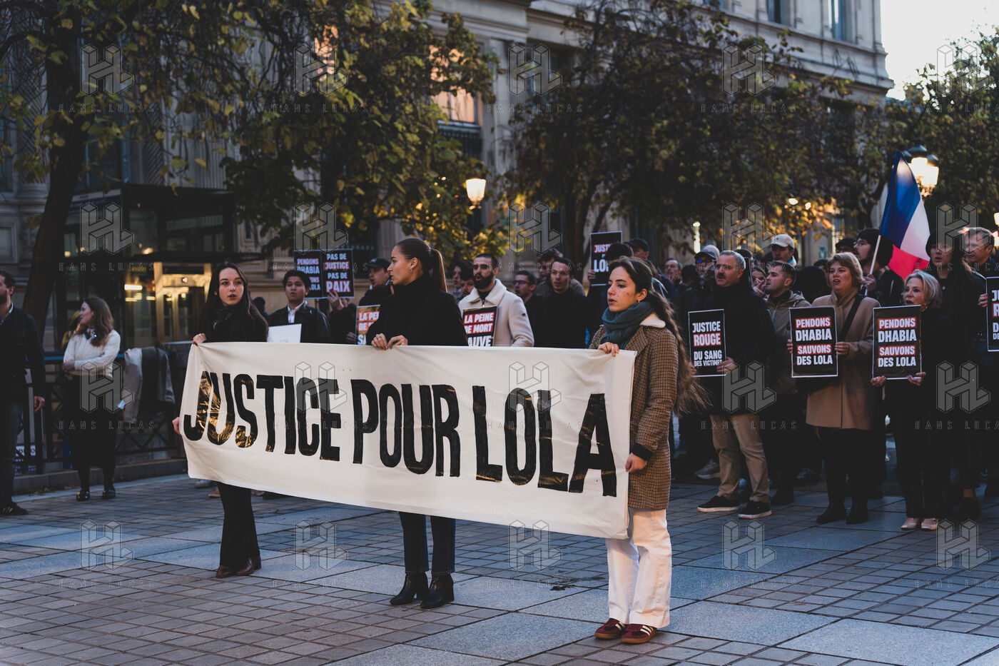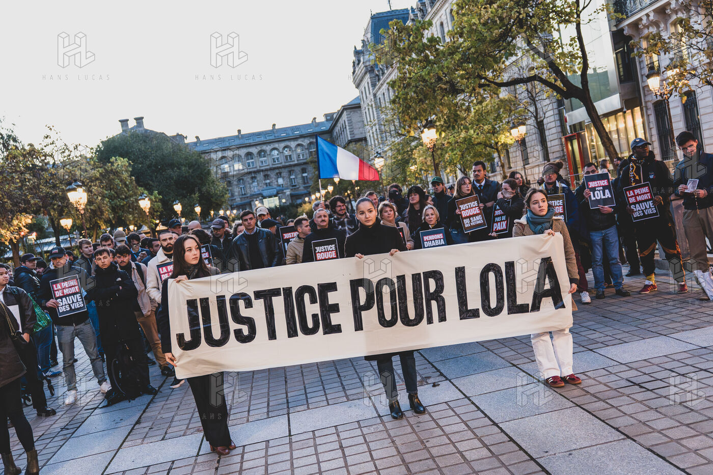 Rassemblement pour Lola devant le Palais de Justice de Paris pour le dernier jour du procès de sa meutrière présumée Dahbia B avec le collectif Nemesis.
