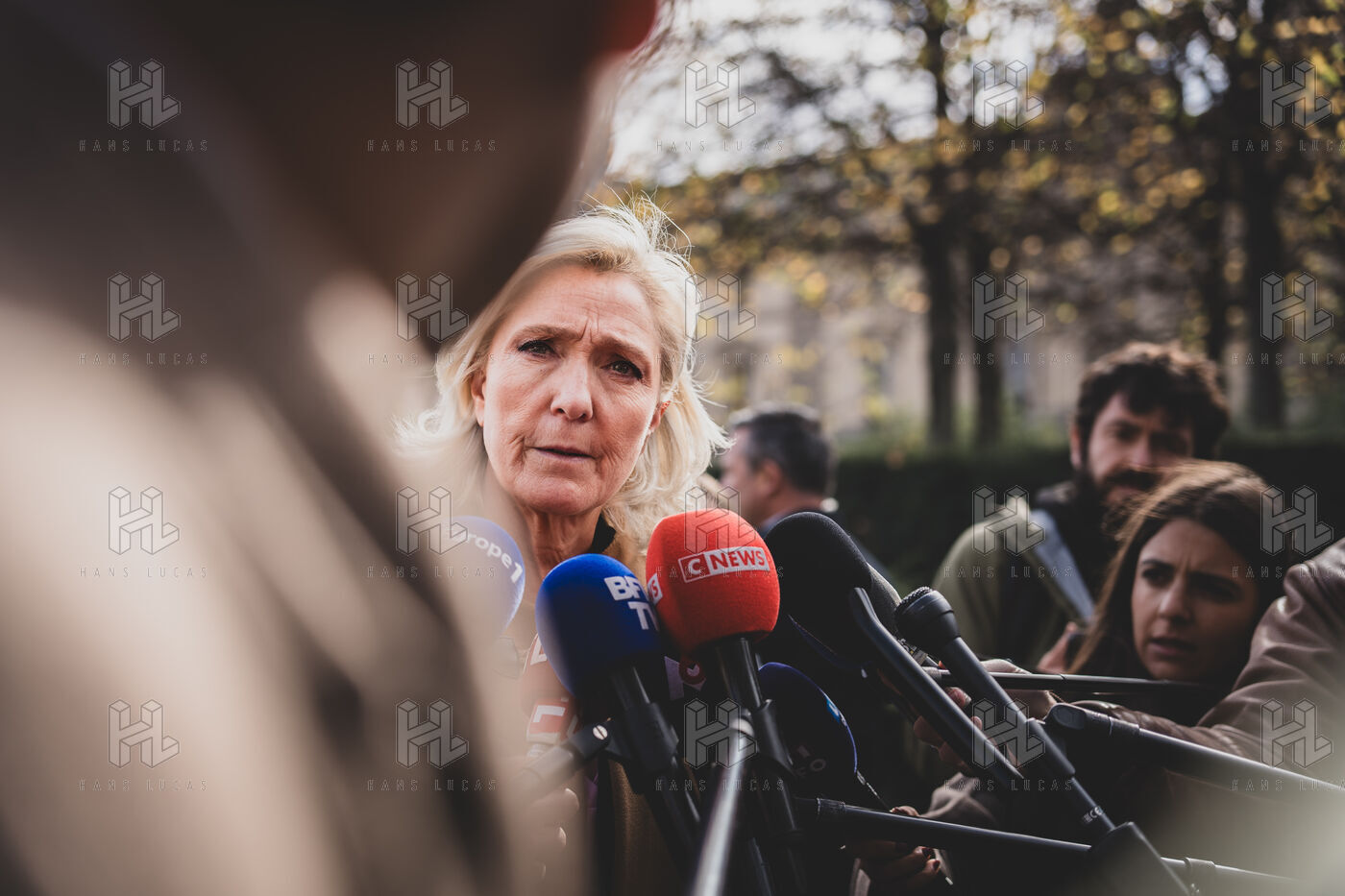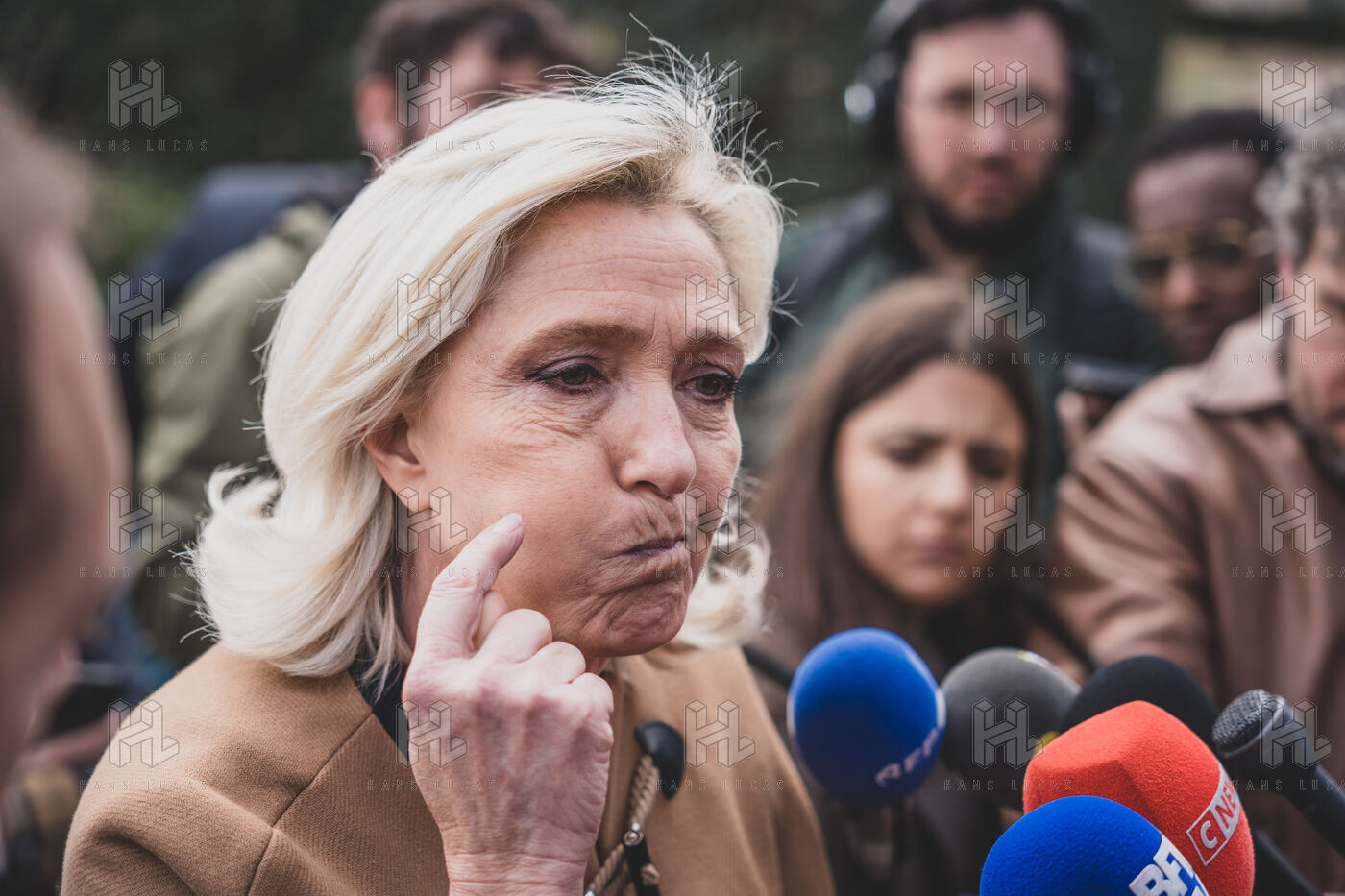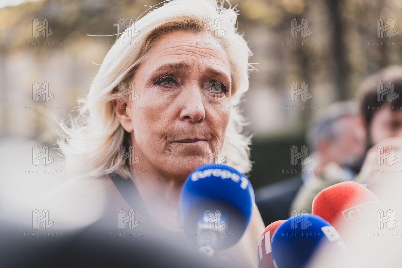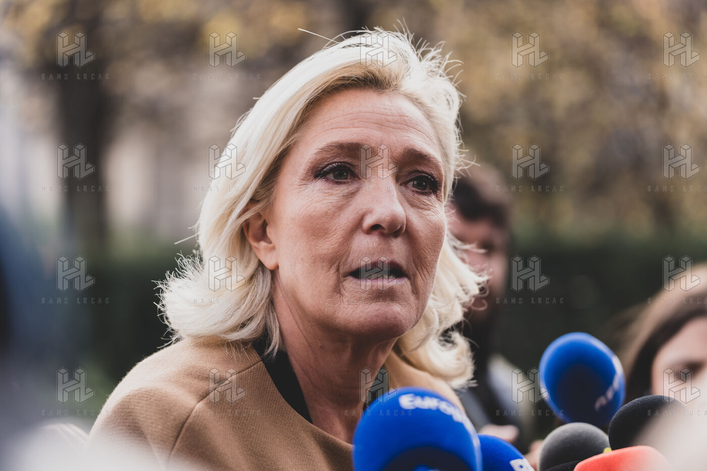 Marine Le Pen visiting the Cultural Heritage Fair at the Carrousel du Louvre, press briefing.