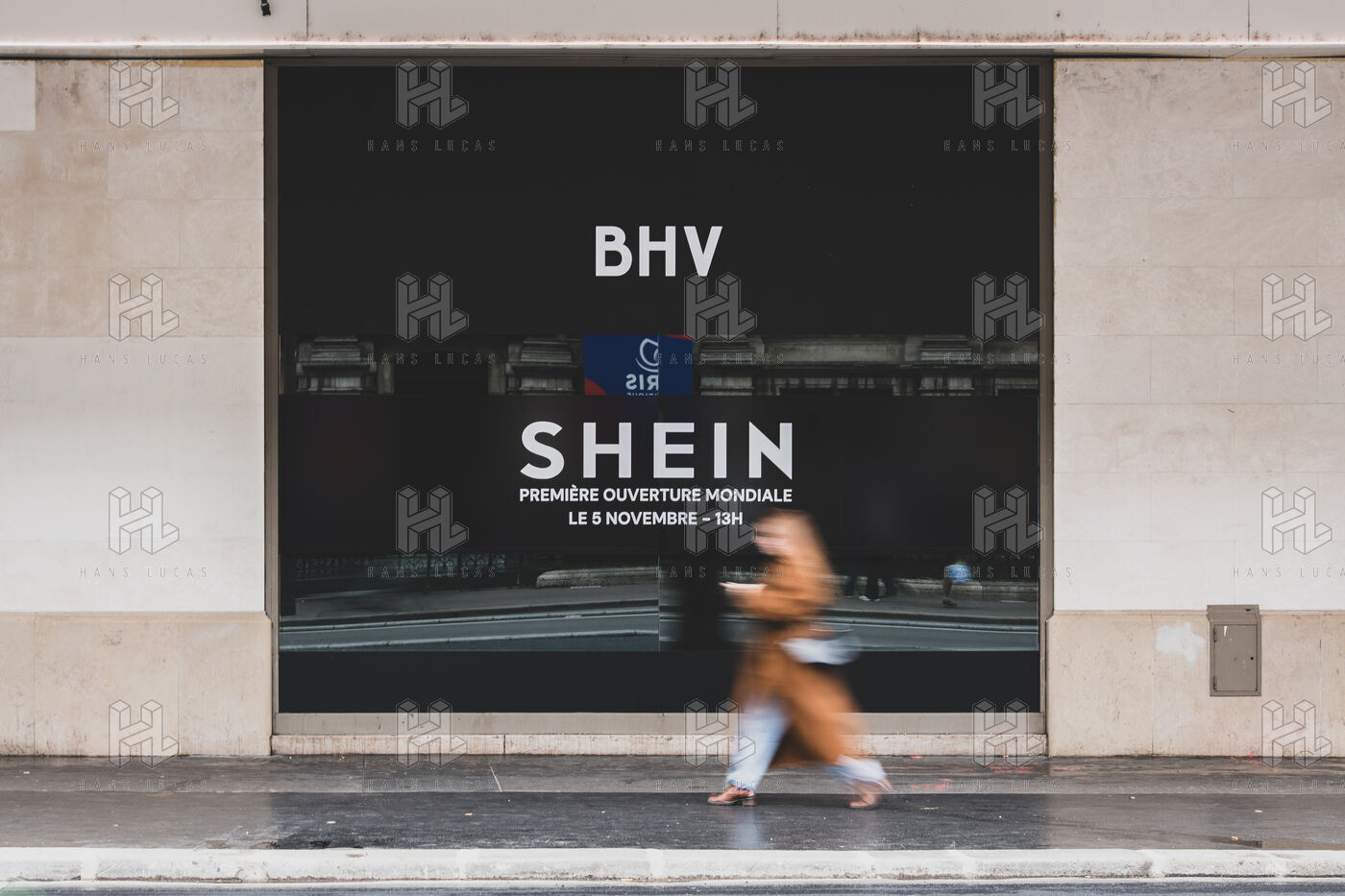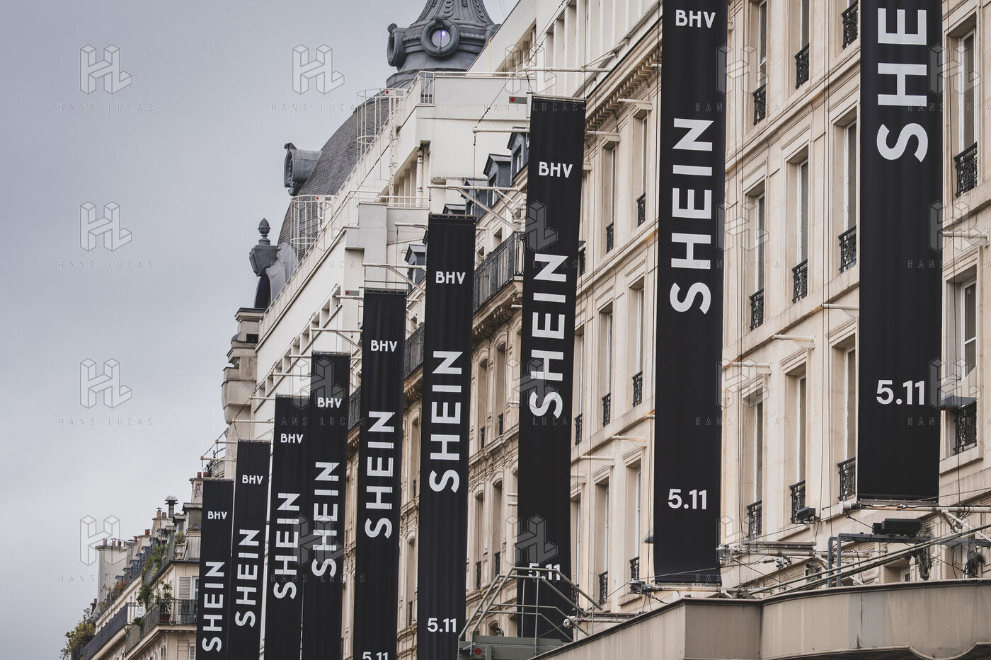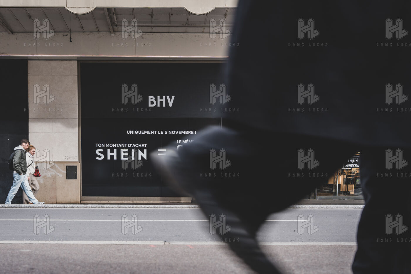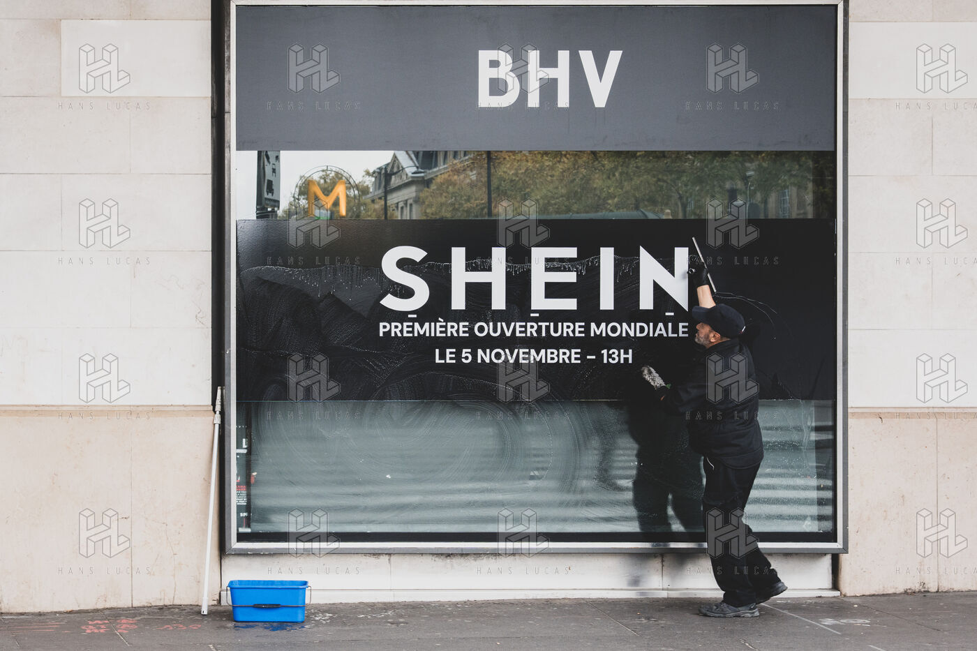 Le BHV Marais se prépare à l'arrivée de la première boutique physique de la marque de fast fashion chinoise SHEIN en France le 05 Novembre 2025.