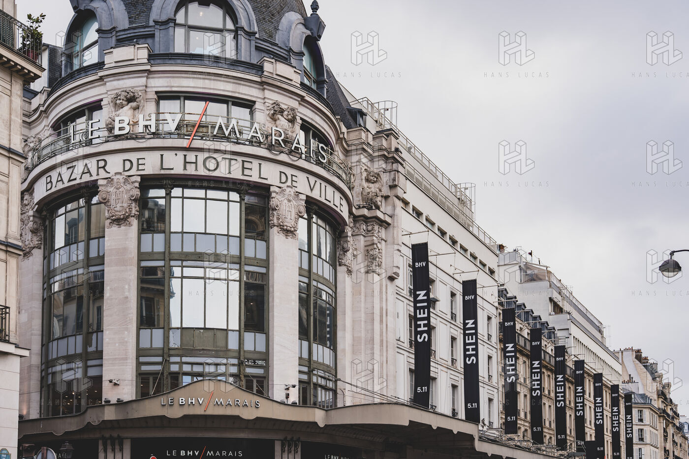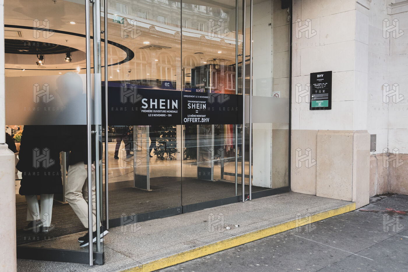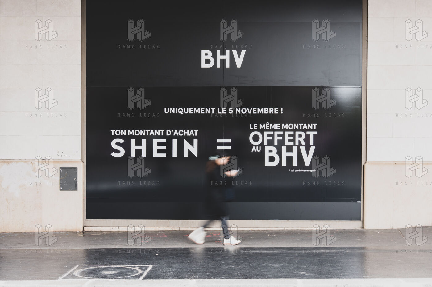 Le BHV Marais se prépare à l'arrivée de la première boutique physique de la marque de fast fashion chinoise SHEIN en France le 05 Novembre 2025.