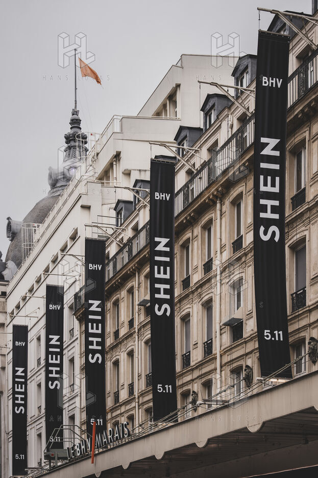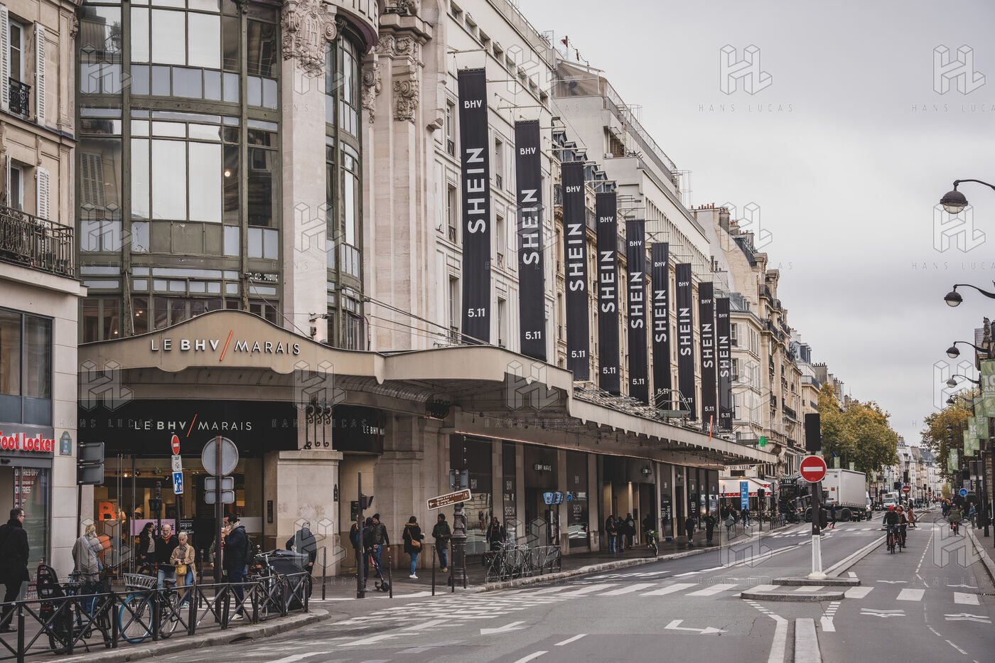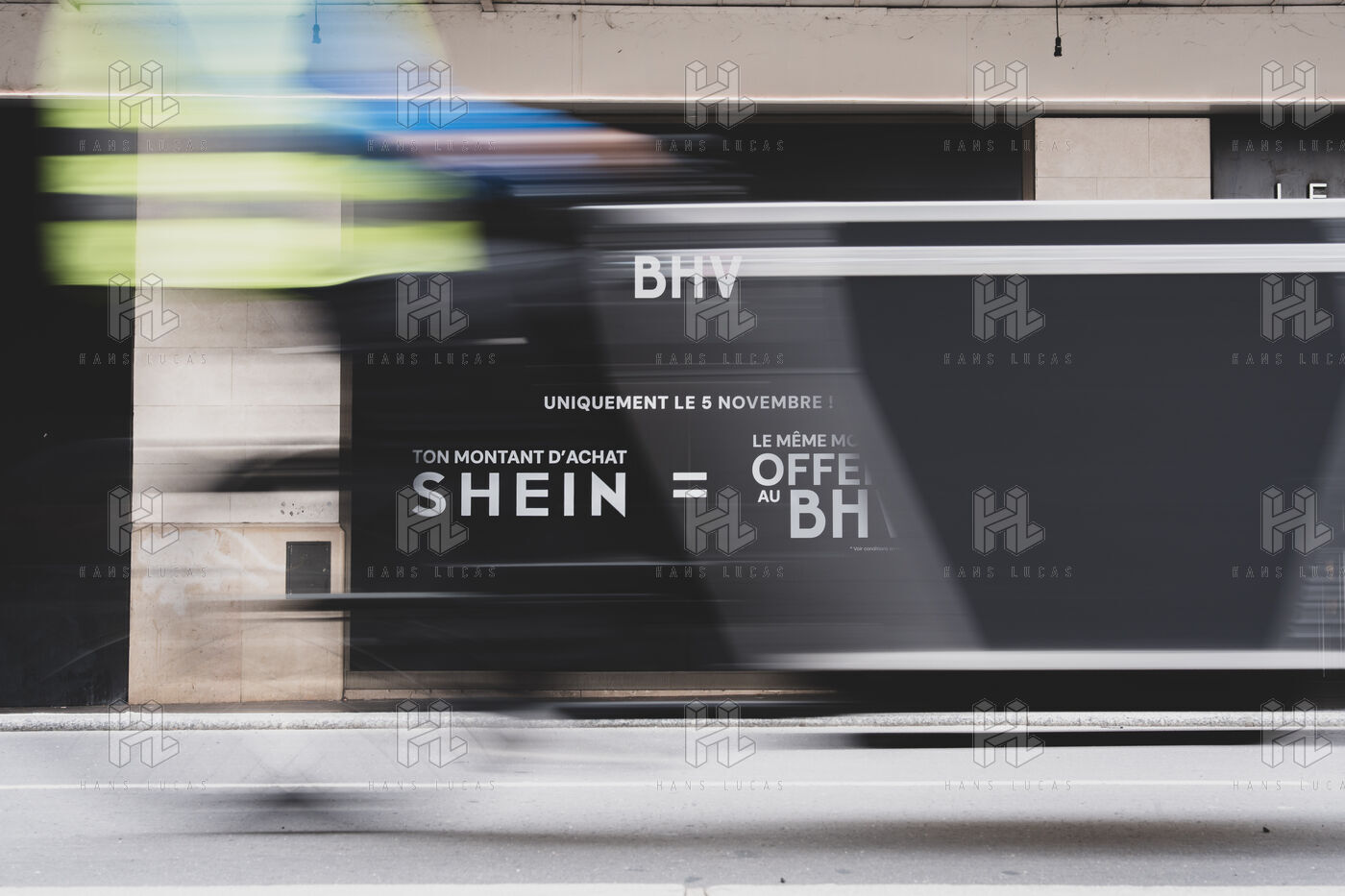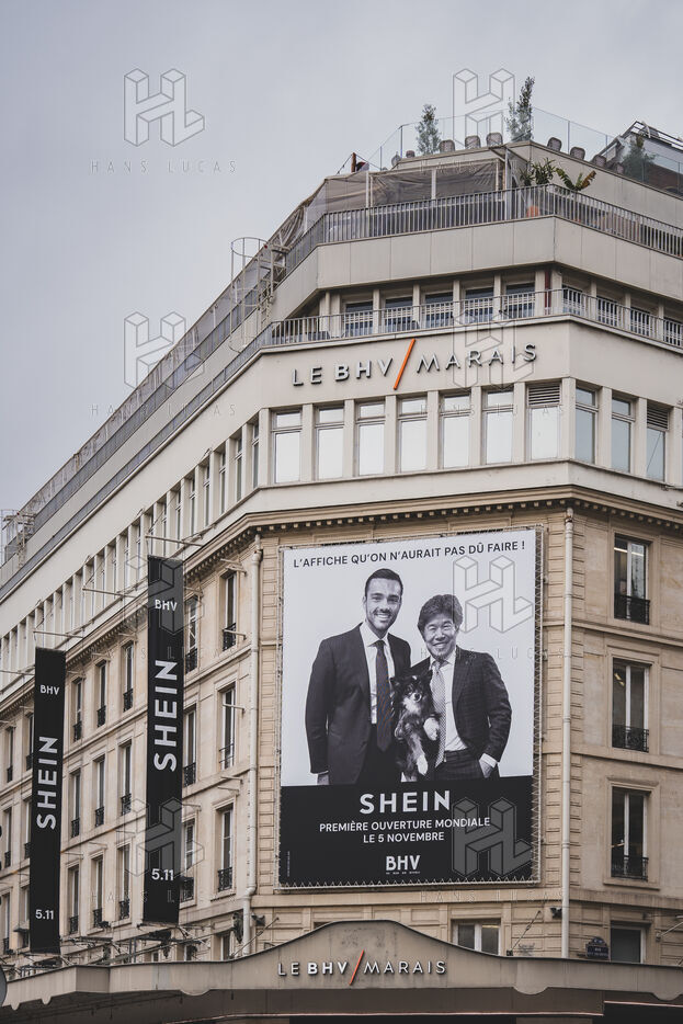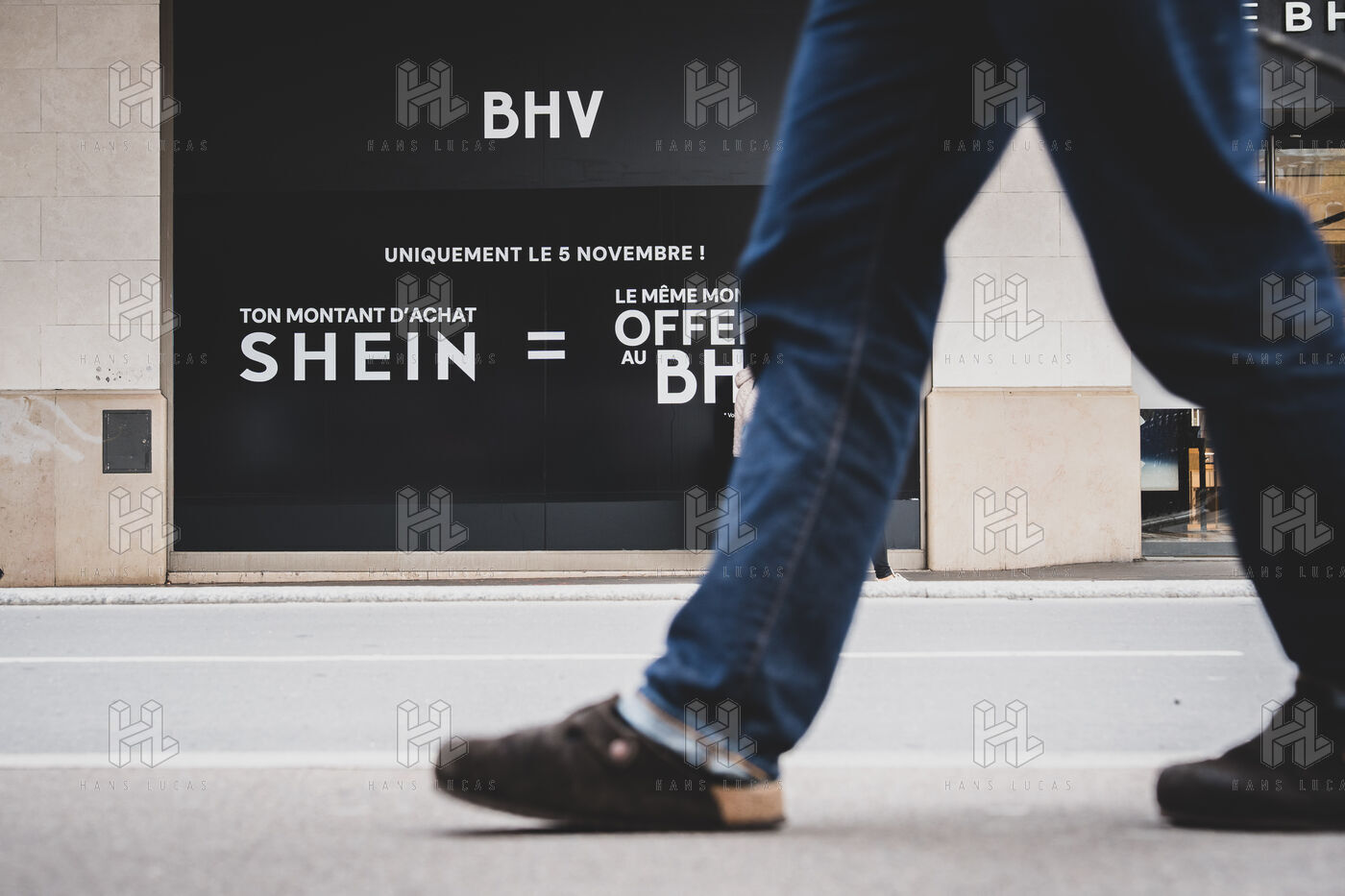 Le BHV Marais se prépare à l'arrivée de la première boutique physique de la marque de fast fashion chinoise SHEIN en France le 05 Novembre 2025.