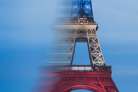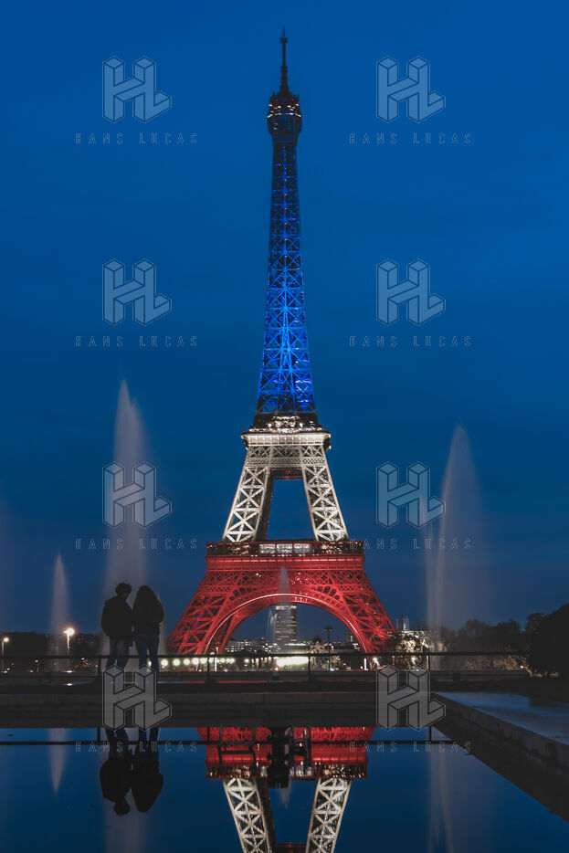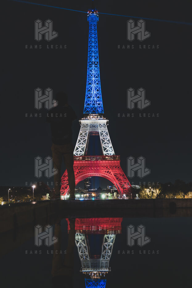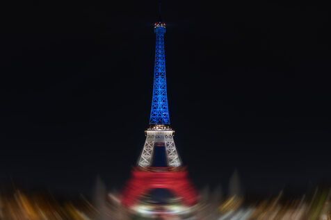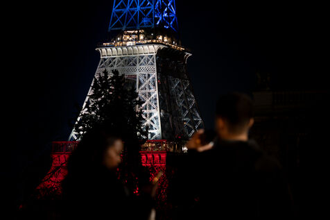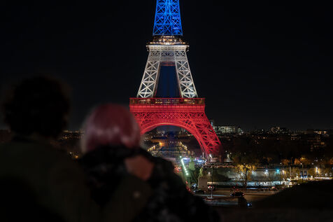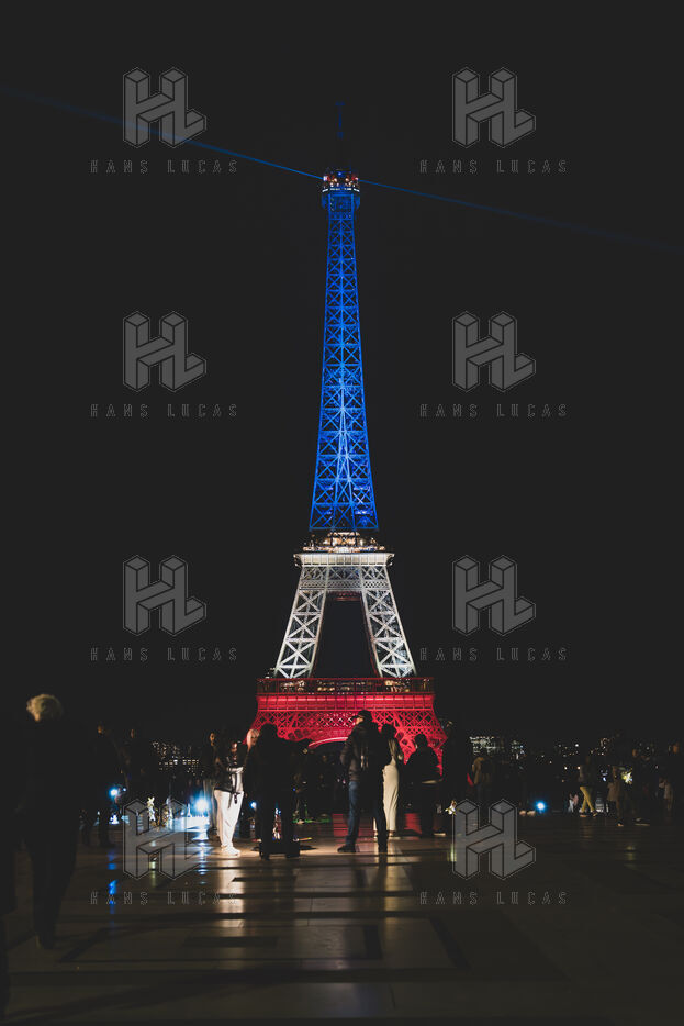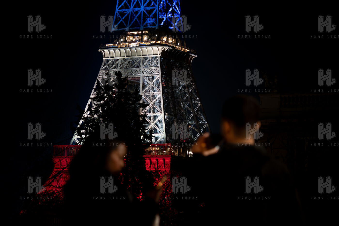 On the 10th anniversary of the attacks of November 13, 2015, and in tribute to the victims, the city of Paris illuminated the Eiffel Tower in the colors of the French flag, blue, white, and red.