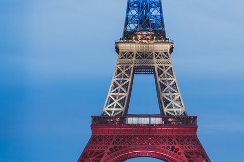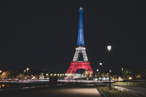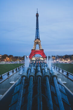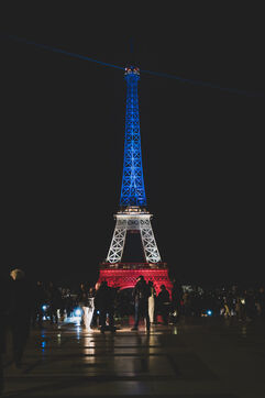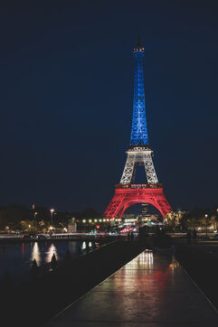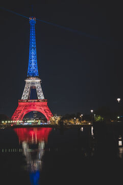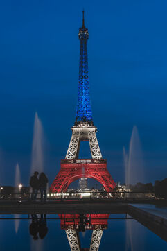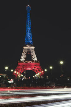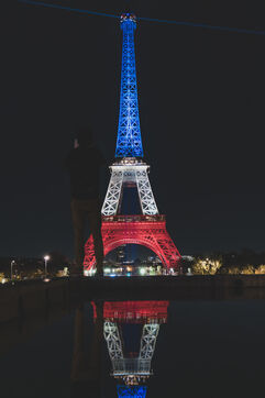 À l'occasion des 10 ans des attentats du 13 novembre 2015, et en hommage aux victimes, la ville de Paris a illuminé la Tour Eiffel aux couleurs du drapeau français, bleu blanc et rouge.
