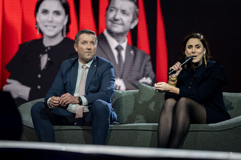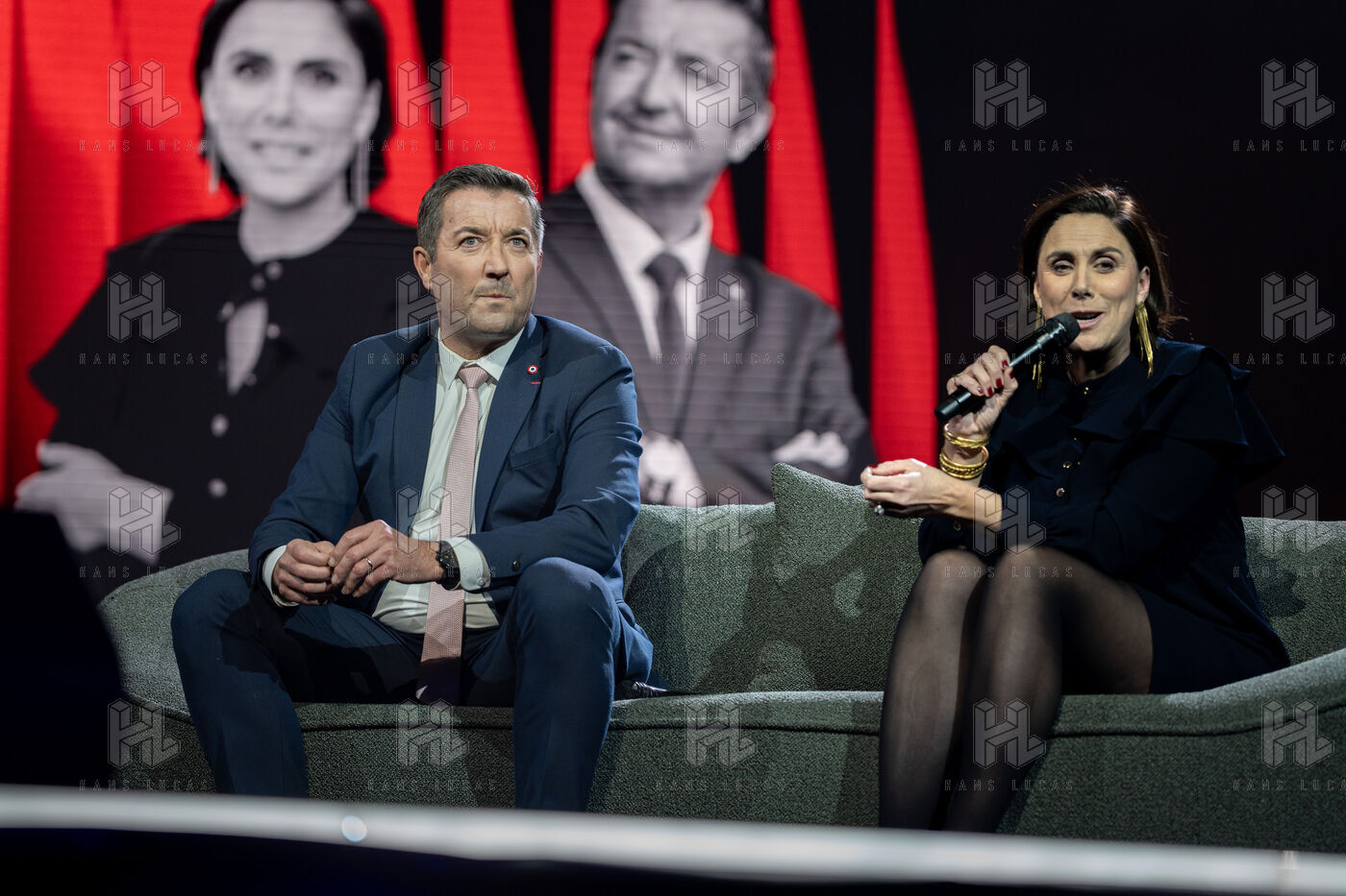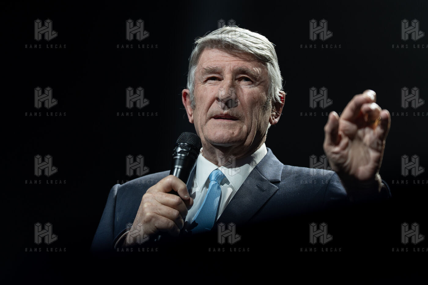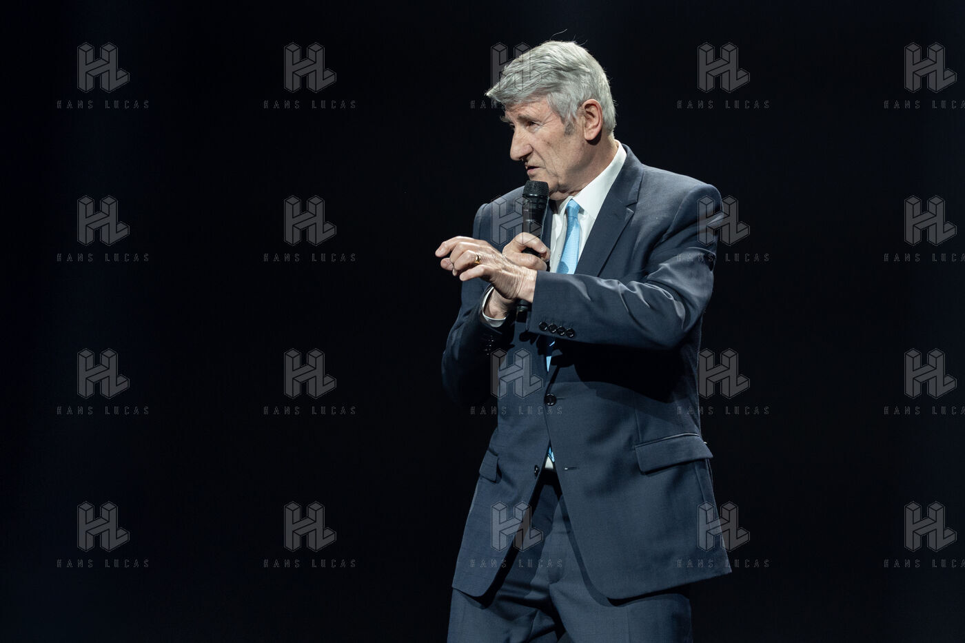 Debate evening entitled Face à vous (Facing you), organized by the Journal du Dimanche JDD on the themes of tomorrow's challenges such as justice, education, insecurity, municipal elections, and immigration at the Paris Dome.