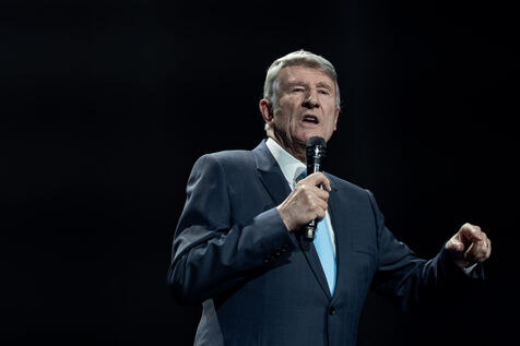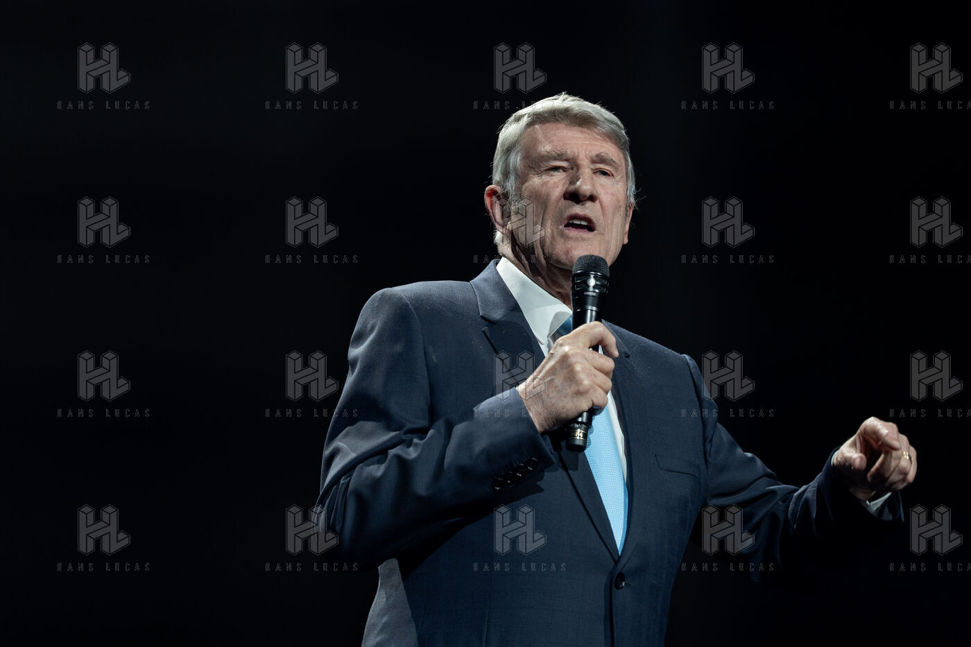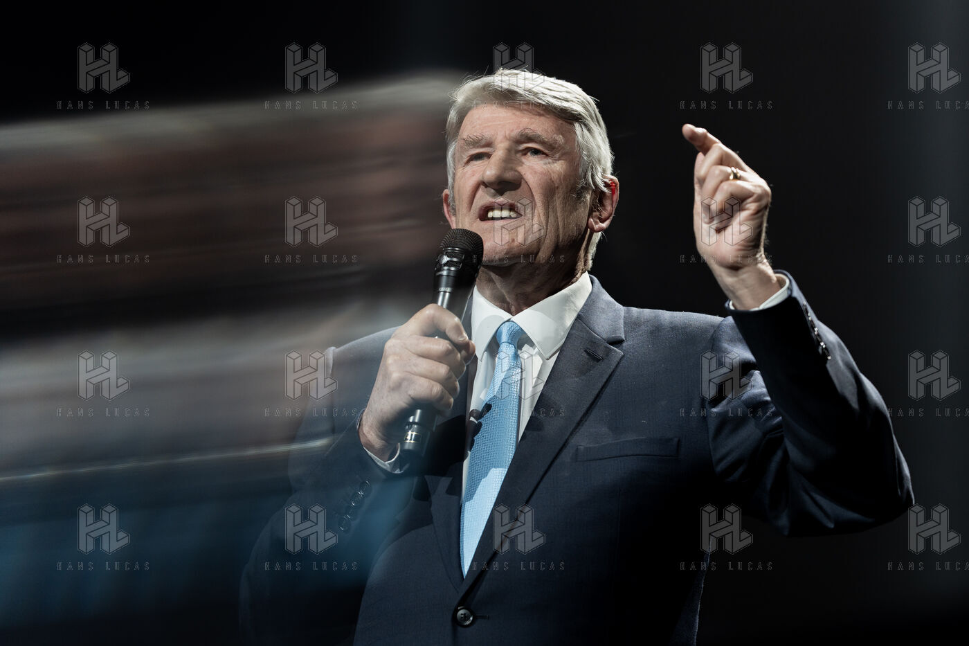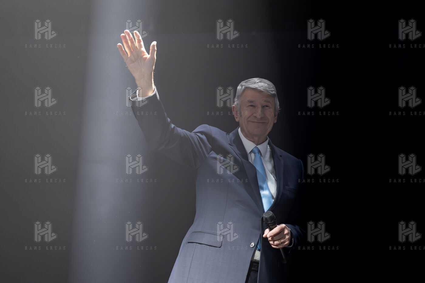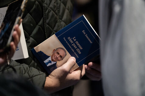 Debate evening entitled Face à vous (Facing you), organized by the Journal du Dimanche JDD on the themes of tomorrow's challenges such as justice, education, insecurity, municipal elections, and immigration at the Paris Dome.