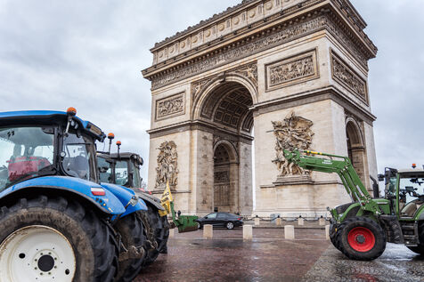 Des agriculteurs sont arrivés en tracteur au pied de l'Arc de Triomphe pour obtenir des entretiens avec les dirigeants politiques. Ils manifestent notamment contre l'accord de libre échange avec le Mercosur et réclament également des simplifications administratives jugées trop contraignantes.