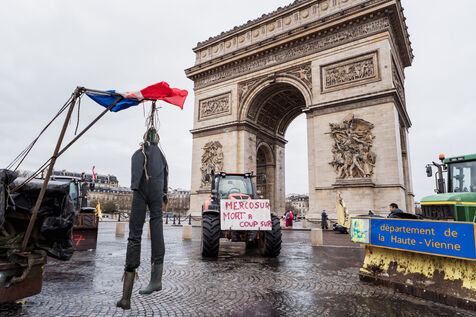 Farmers arrived by tractor at the foot of the Arc de Triomphe to demand meetings with political leaders. They are protesting against the free trade agreement with Mercosur and are also calling for administrative simplifications, which they consider too restrictive.