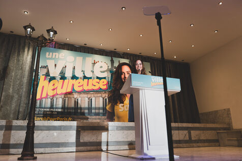 First meeting of Sarah Knafo, Reconquête! candidate for the 2026 municipal election campaign, at the Salons Hoche.
