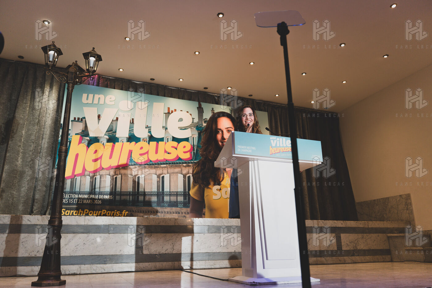 Premier meeting de Sarah Knafo, candidate Reconquête ! pour la campagne des élections municipales 2026, aux salons Hoche.
