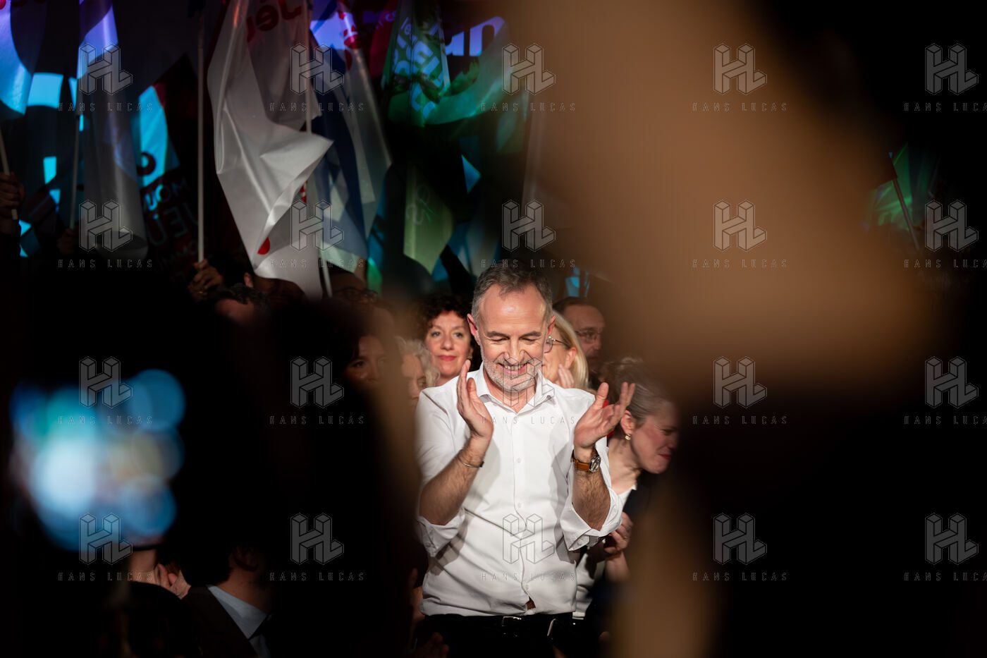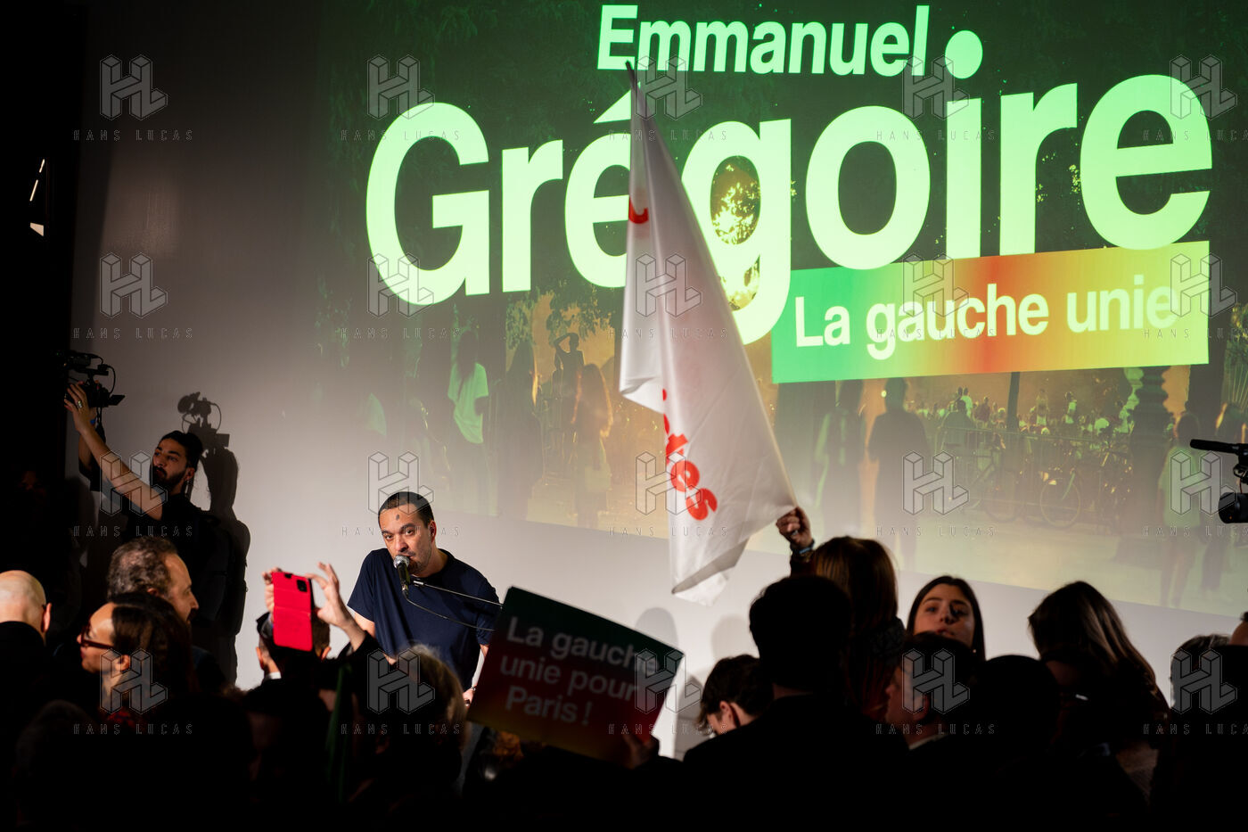 Premier grand meeting de campagne de la "gauche unie" – LFI exceptée – autour du candidat socialiste à la mairie de Paris Emmanuel Grégoire à La Bellevilloise.