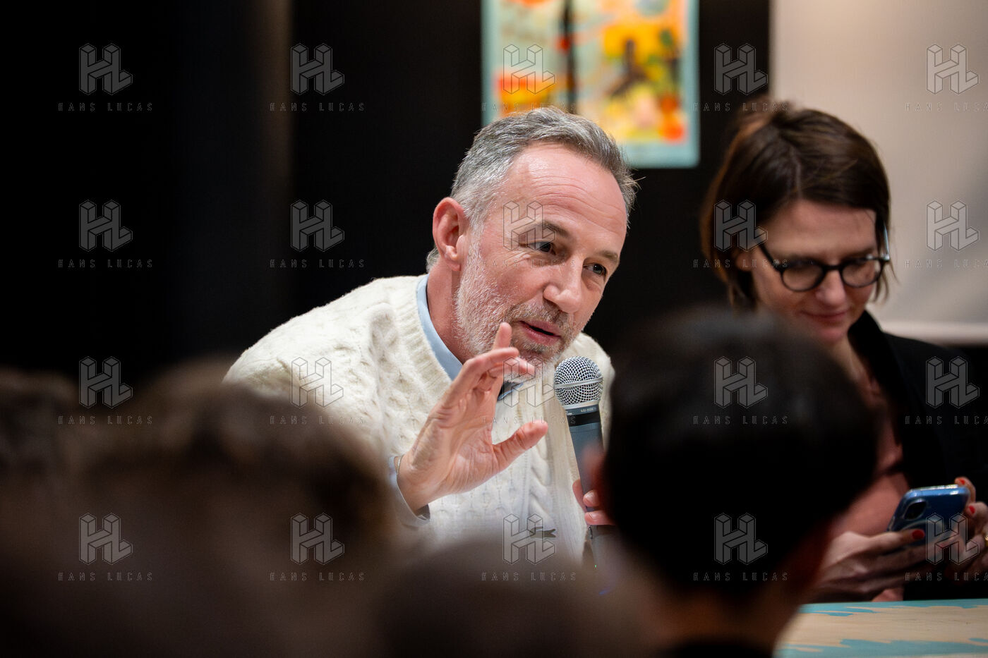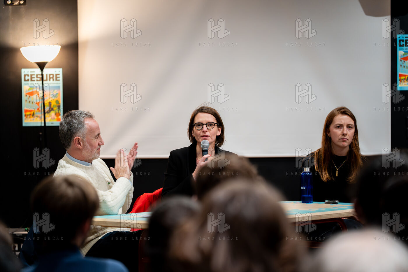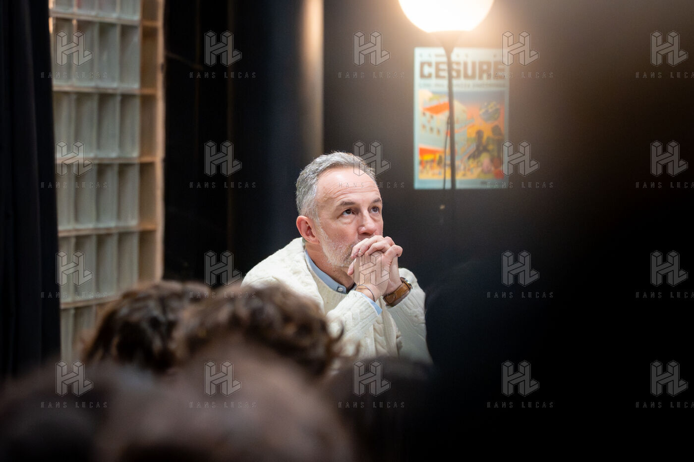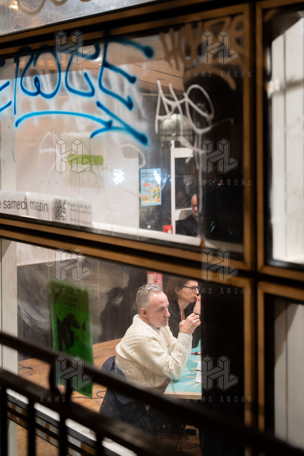 Emmanuel Grégoire, candidat du Parti socialiste PS à la mairie de Paris pour les élections municipales de 2026 échange avec les étudiants, leurs associations et organisations syndicales pour leurs exposer son programme au Césure dans le 5ème arrondissement.