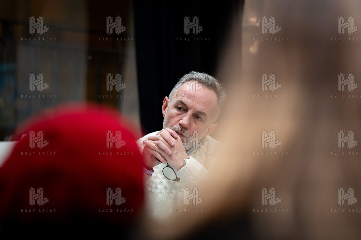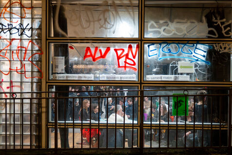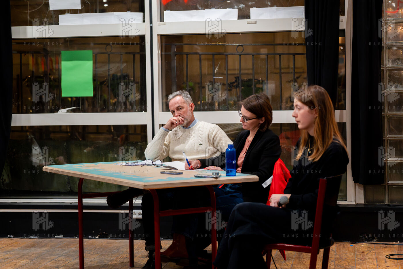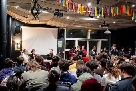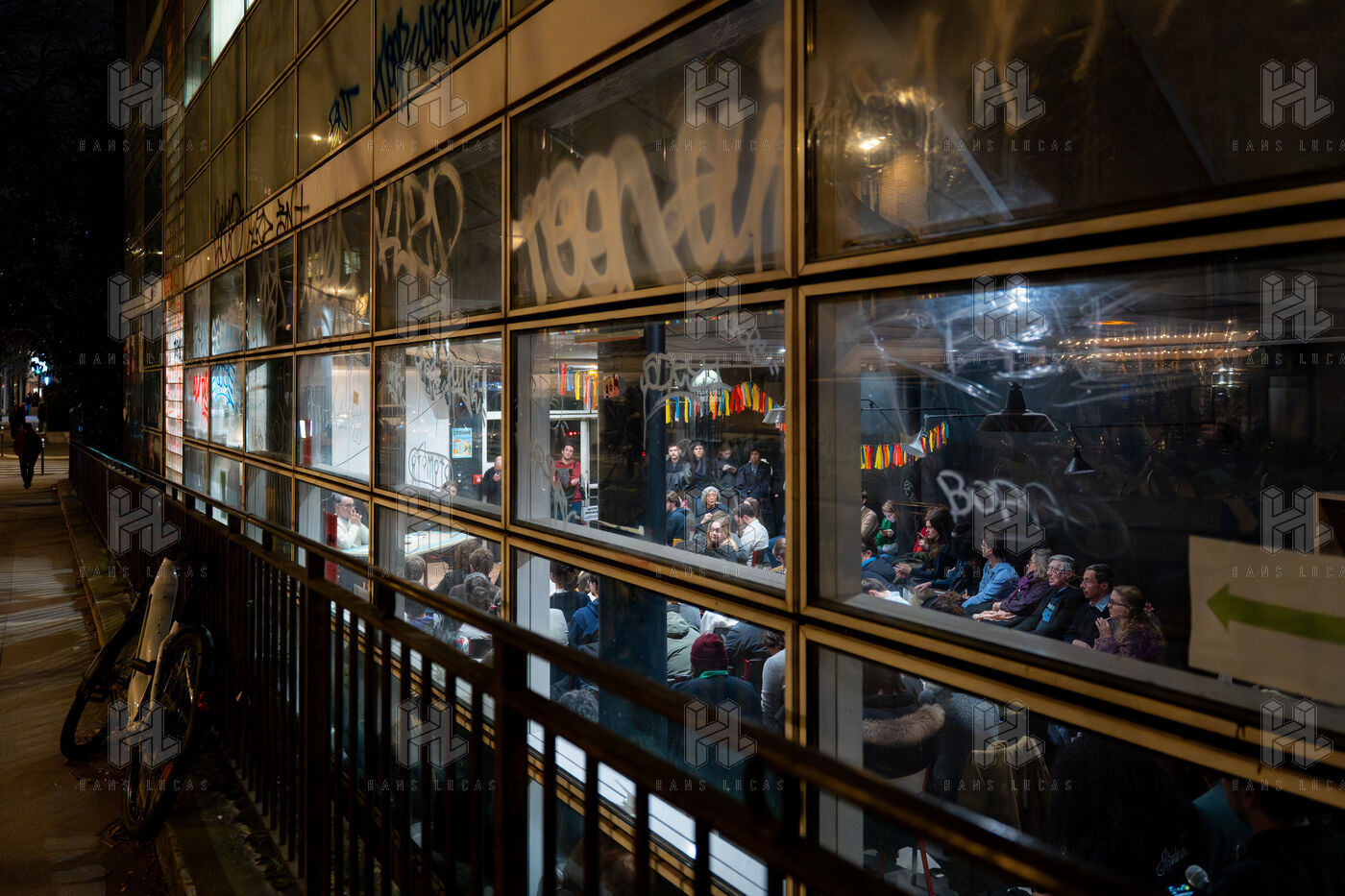 Emmanuel Grégoire, candidat du Parti socialiste PS à la mairie de Paris pour les élections municipales de 2026 échange avec les étudiants, leurs associations et organisations syndicales pour leurs exposer son programme au Césure dans le 5ème arrondissement.