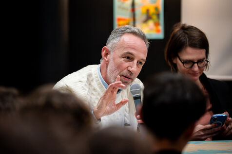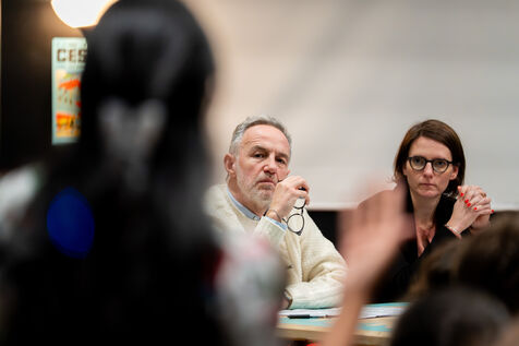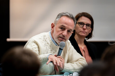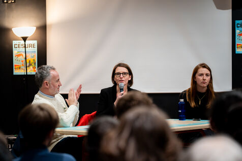 Emmanuel Grégoire, Socialist Party candidate for mayor of Paris in the 2026 municipal elections, meets with students, their associations, and trade unions to present his program at Cesure in the 5th arrondissement.