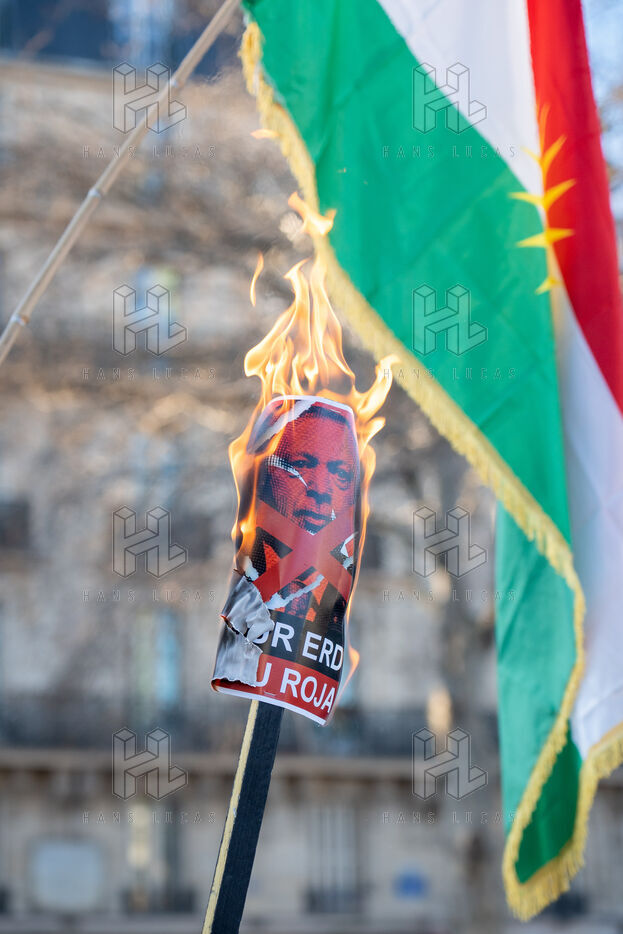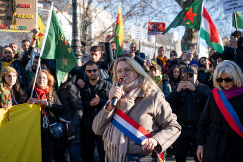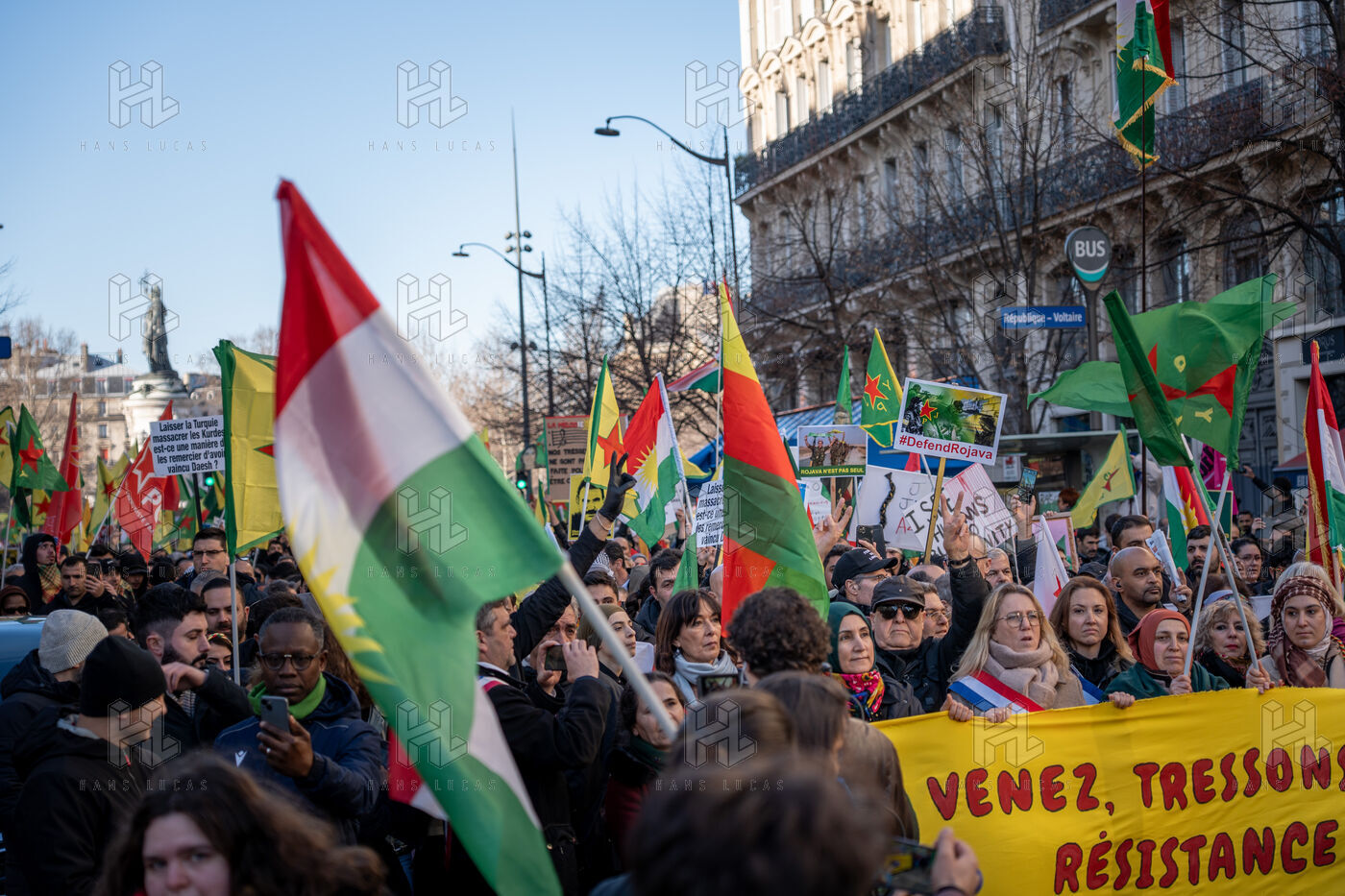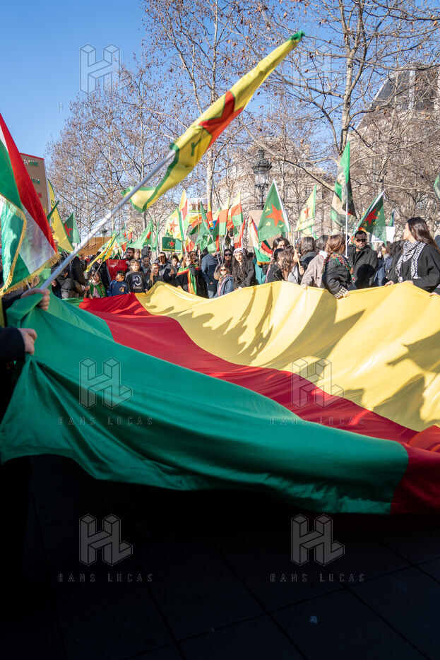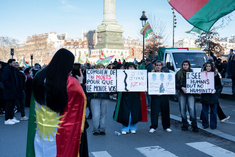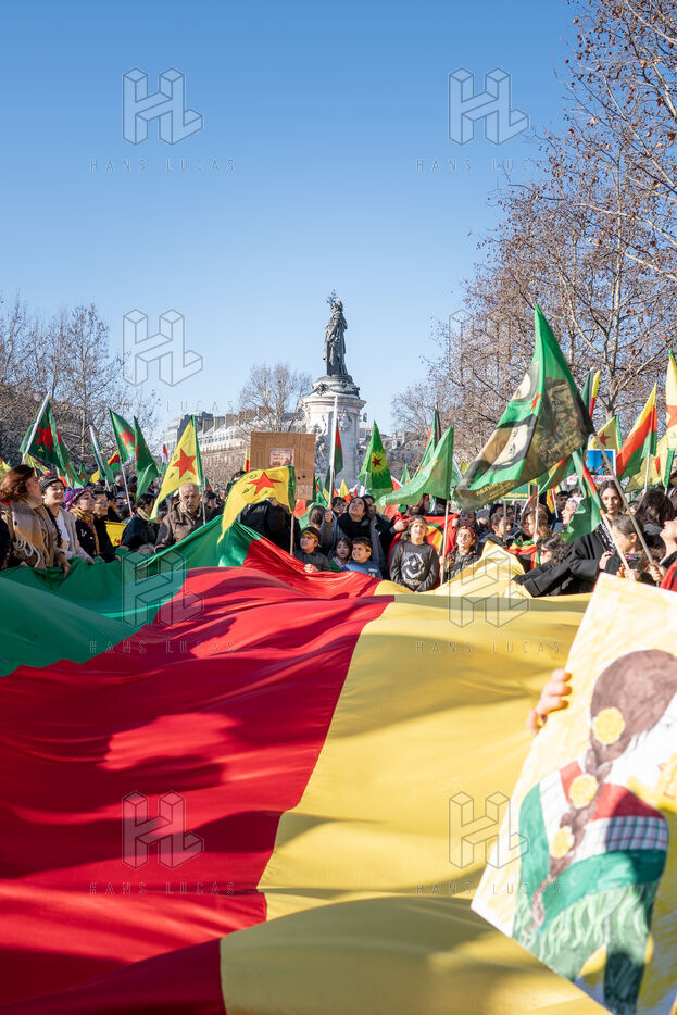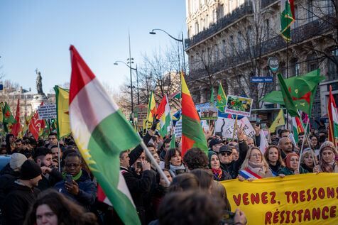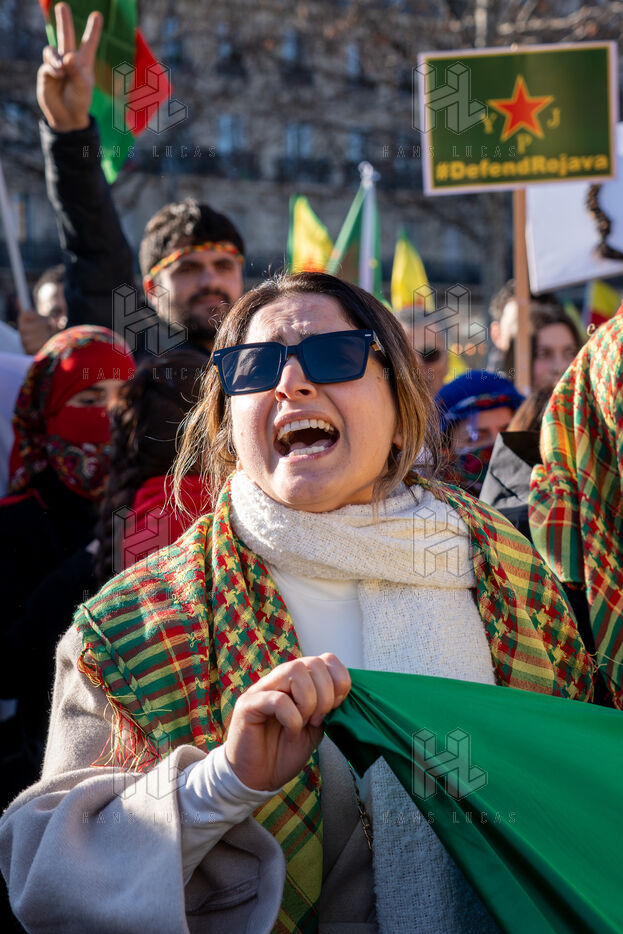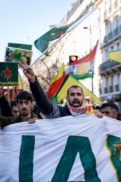 Demonstration in Paris in support of the Kurdish people of Rojava, who are under attack by the Syrian and Turkish regimes in northern Syria.