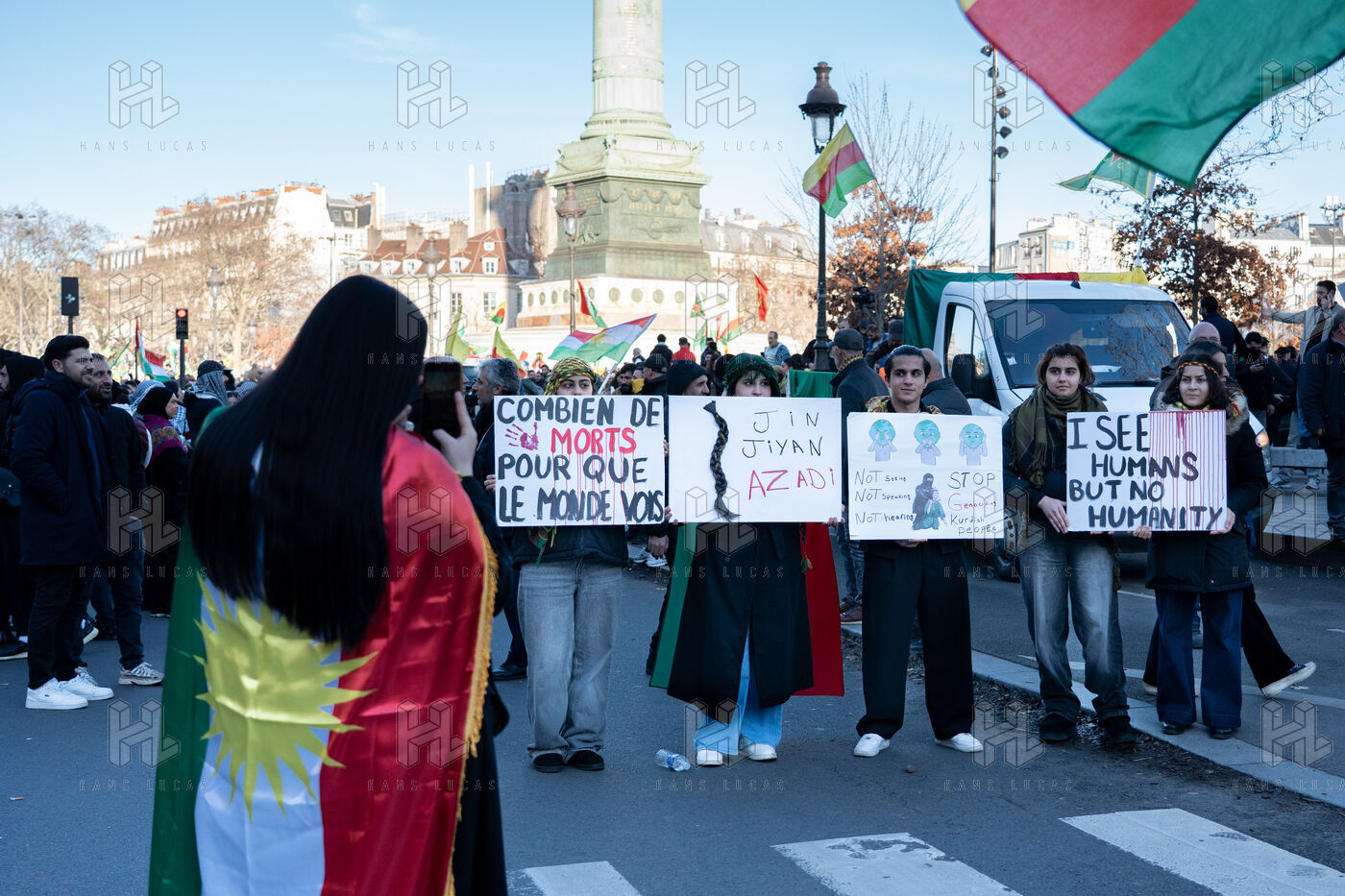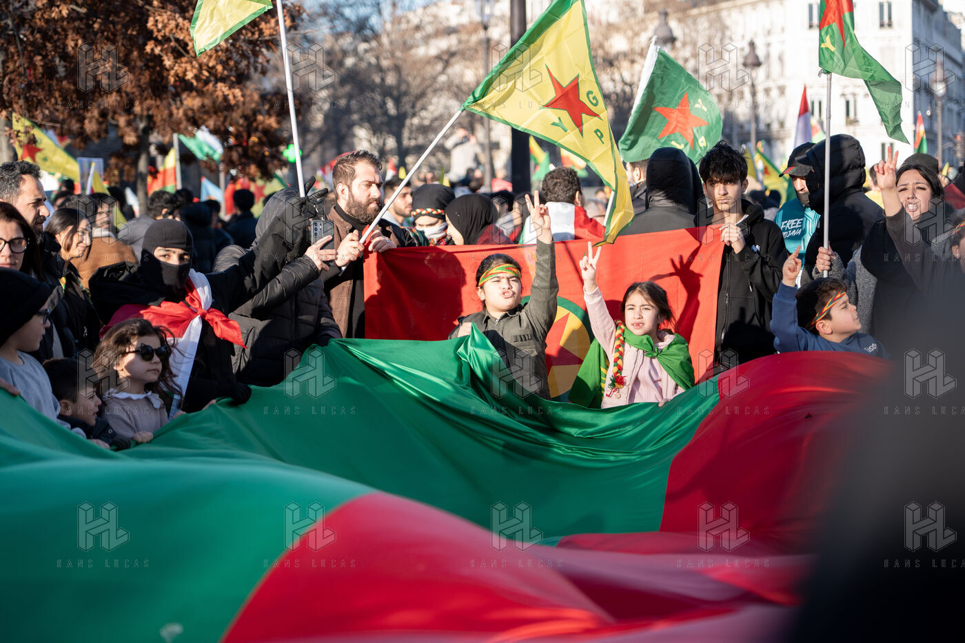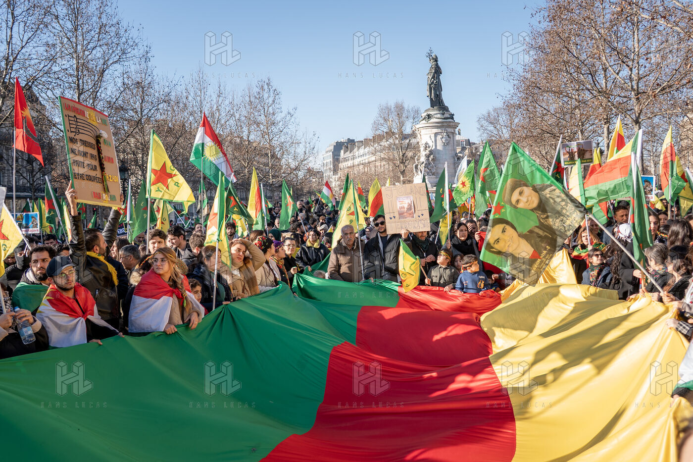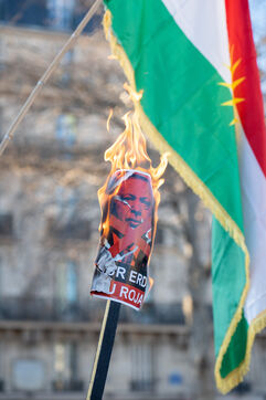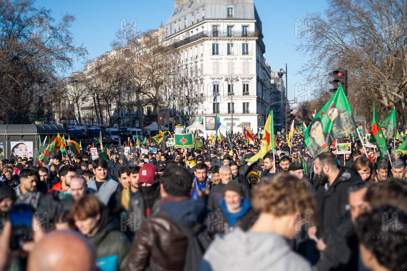 Demonstration in Paris in support of the Kurdish people of Rojava, who are under attack by the Syrian and Turkish regimes in northern Syria.