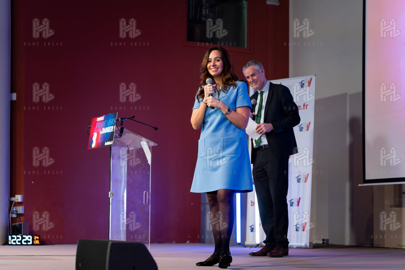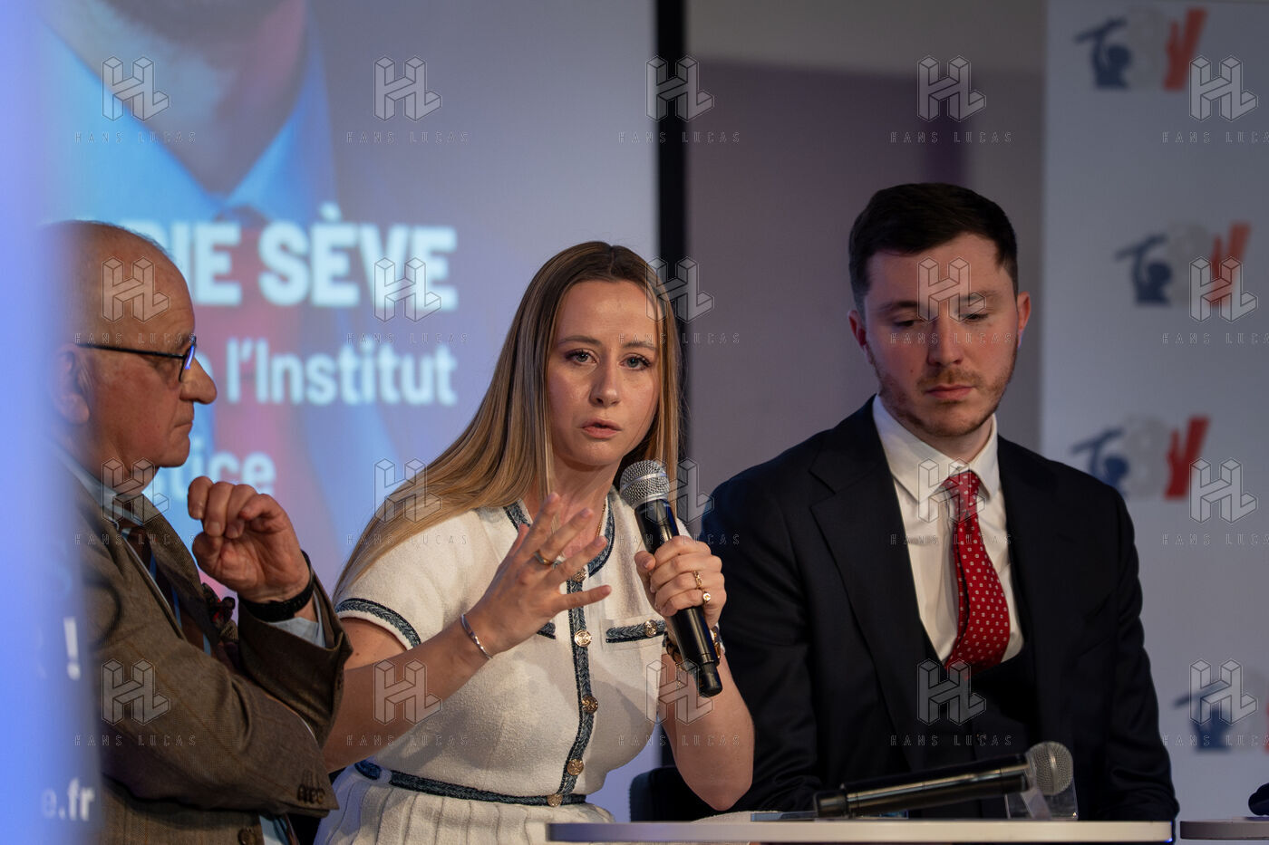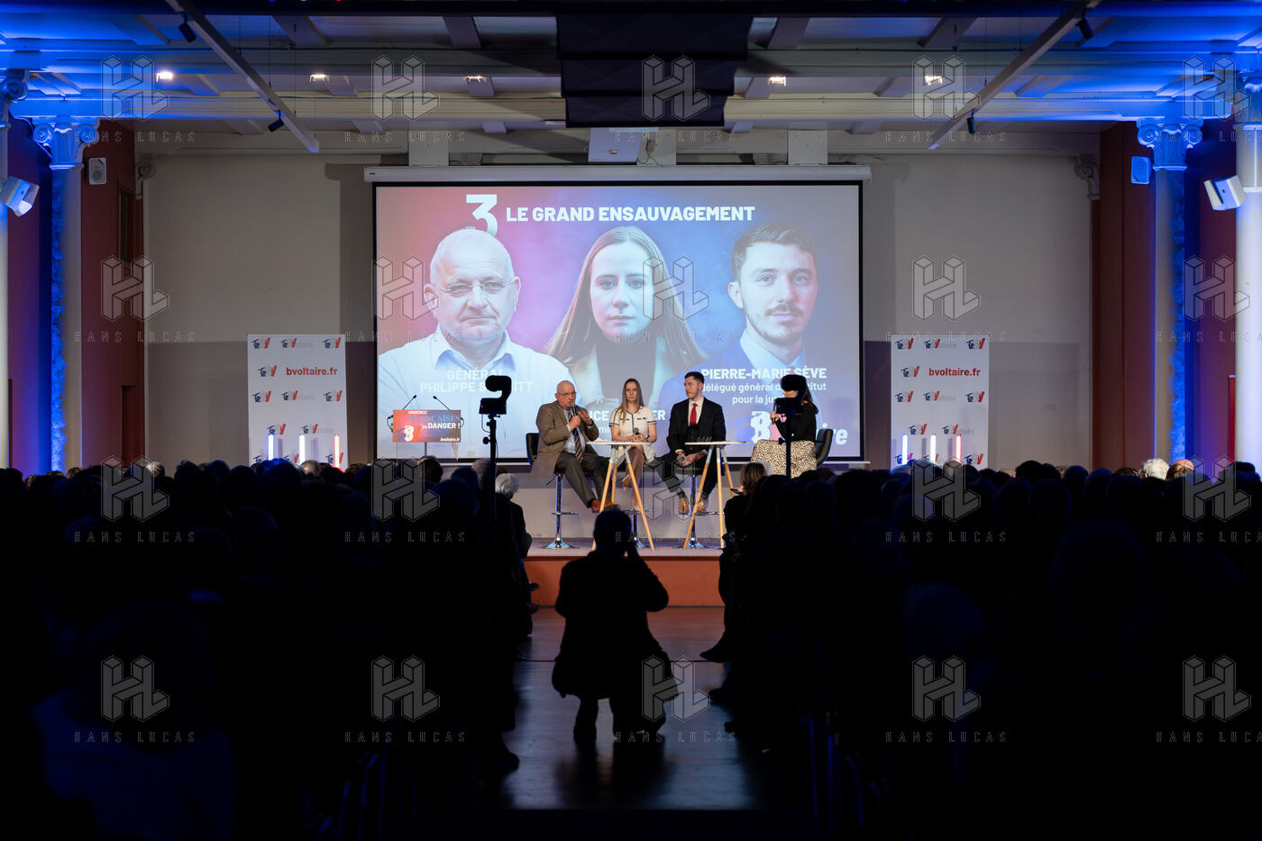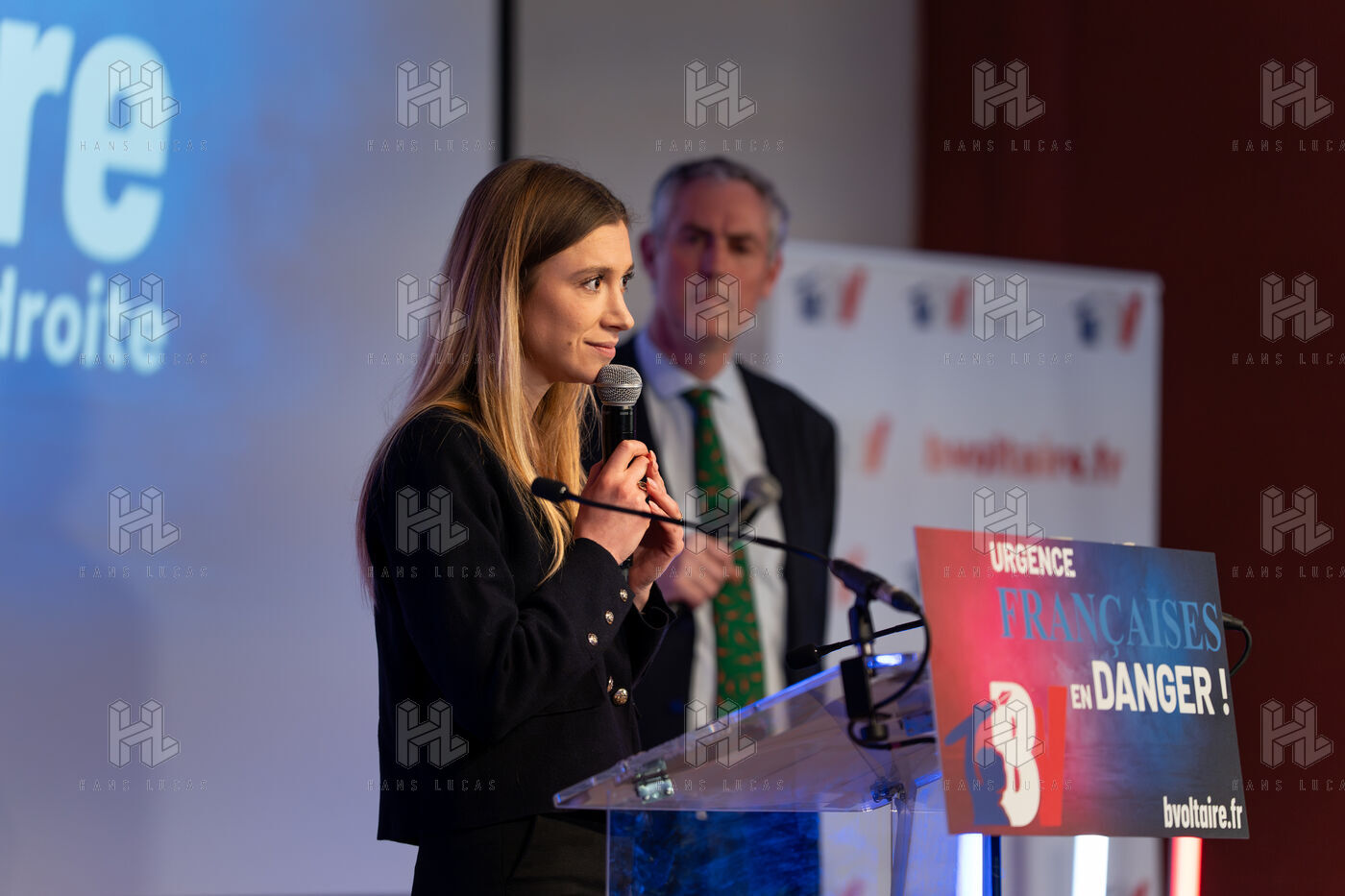 Evening event organized by the news outlet Boulevard Voltaire at the Salle Boissiere on the theme of Emergency: French women in danger.