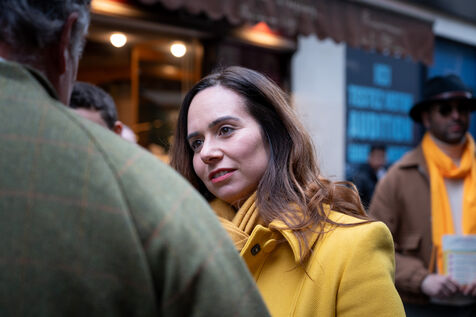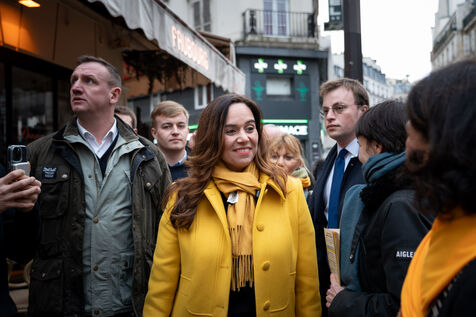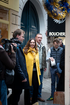 Sarah Knafo, Member of the European Parliament and Reconquête! candidate for mayor of Paris in the 2026 municipal elections, meets with shopkeepers and residents of the 9th arrondissement.