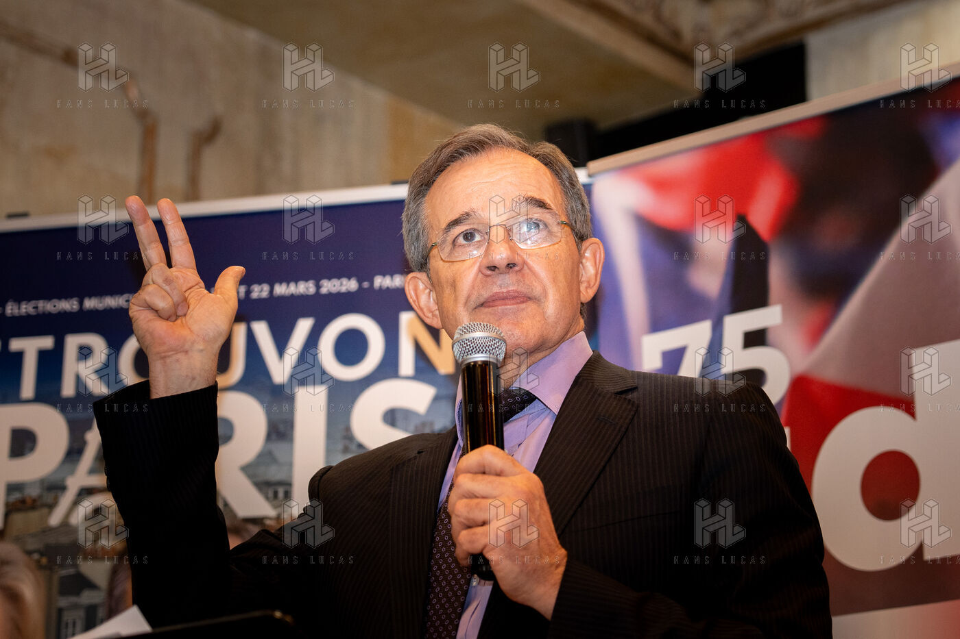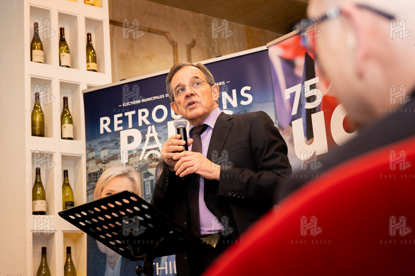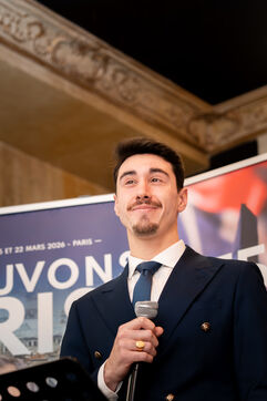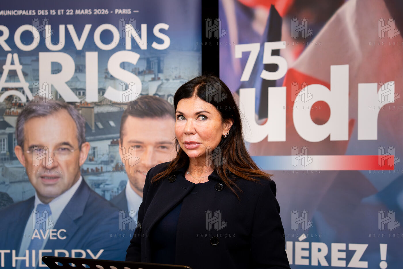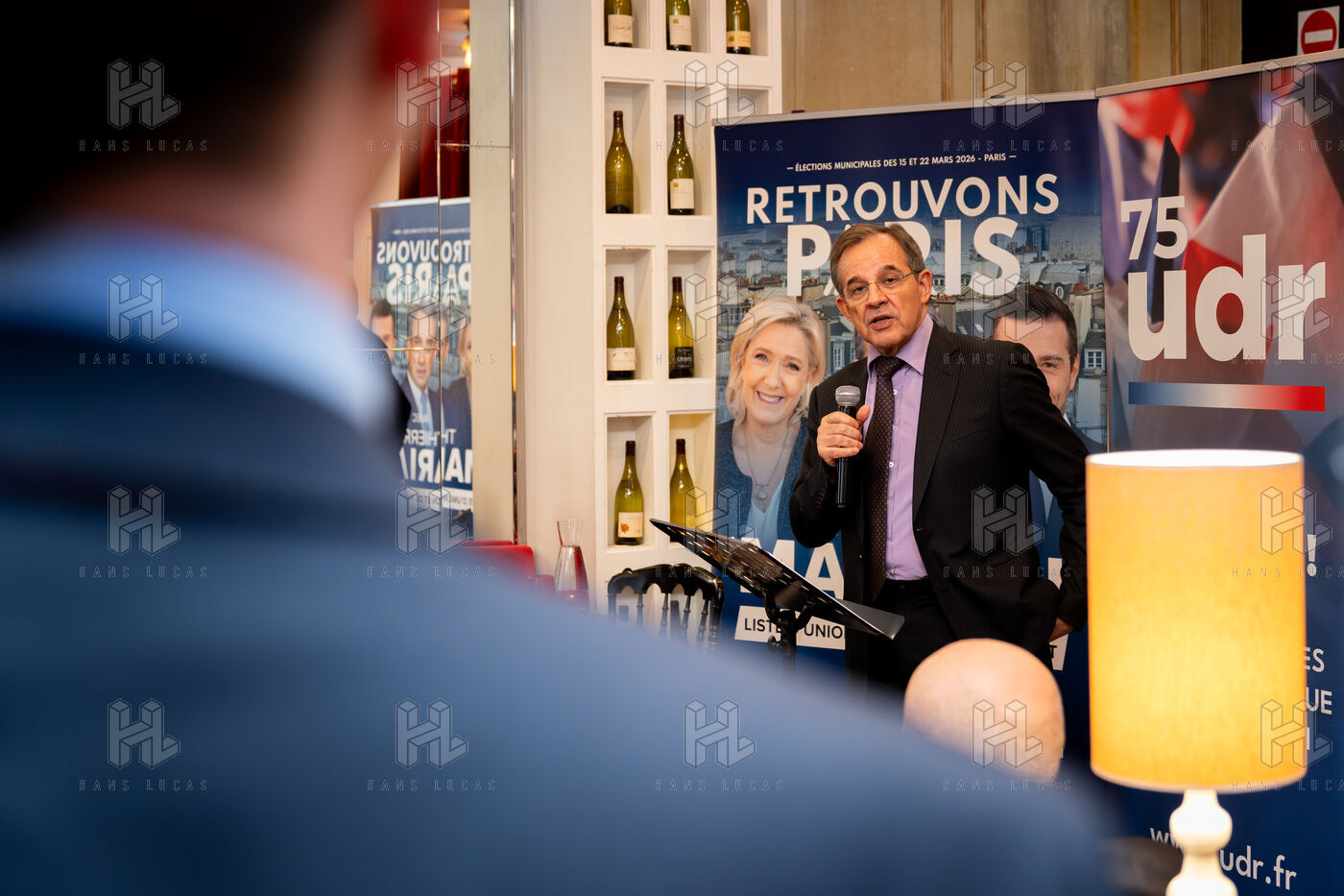 Press conference with Thierry Mariani, candidate for the National Rally (RN), Union of the Right (UDR), and Identity Freedom (IDL) parties in the 2026 Paris municipal elections, at the Bistrot de la Gaite, accompanied by eight leading candidates for Paris, on the topic of schools and extracurricular activities.