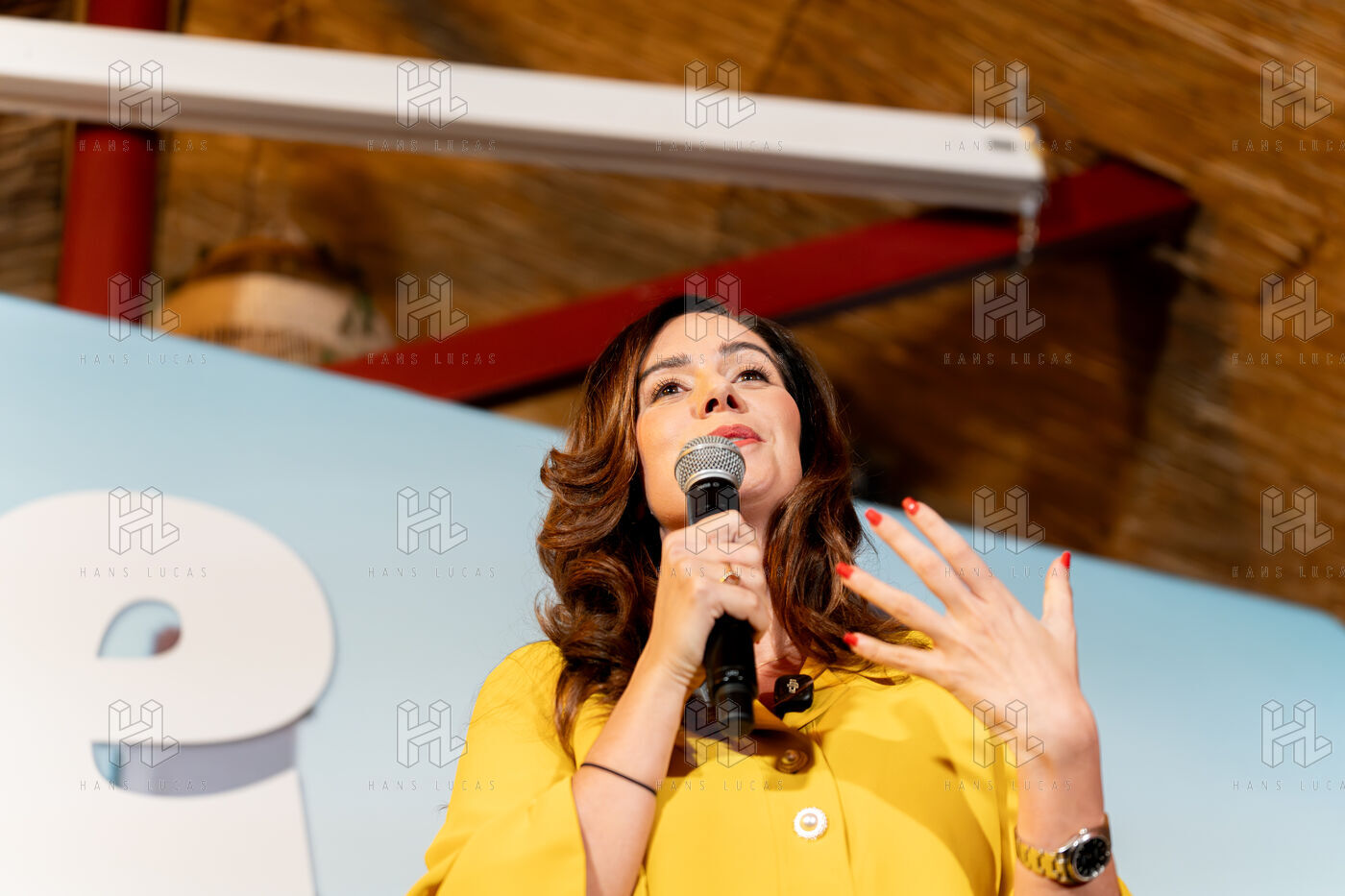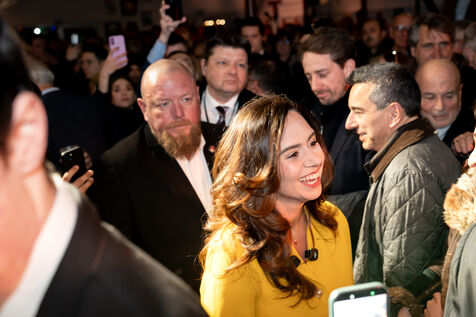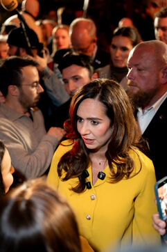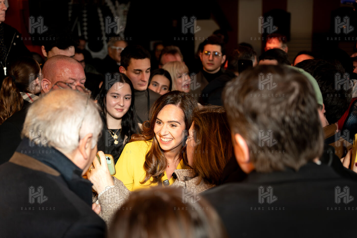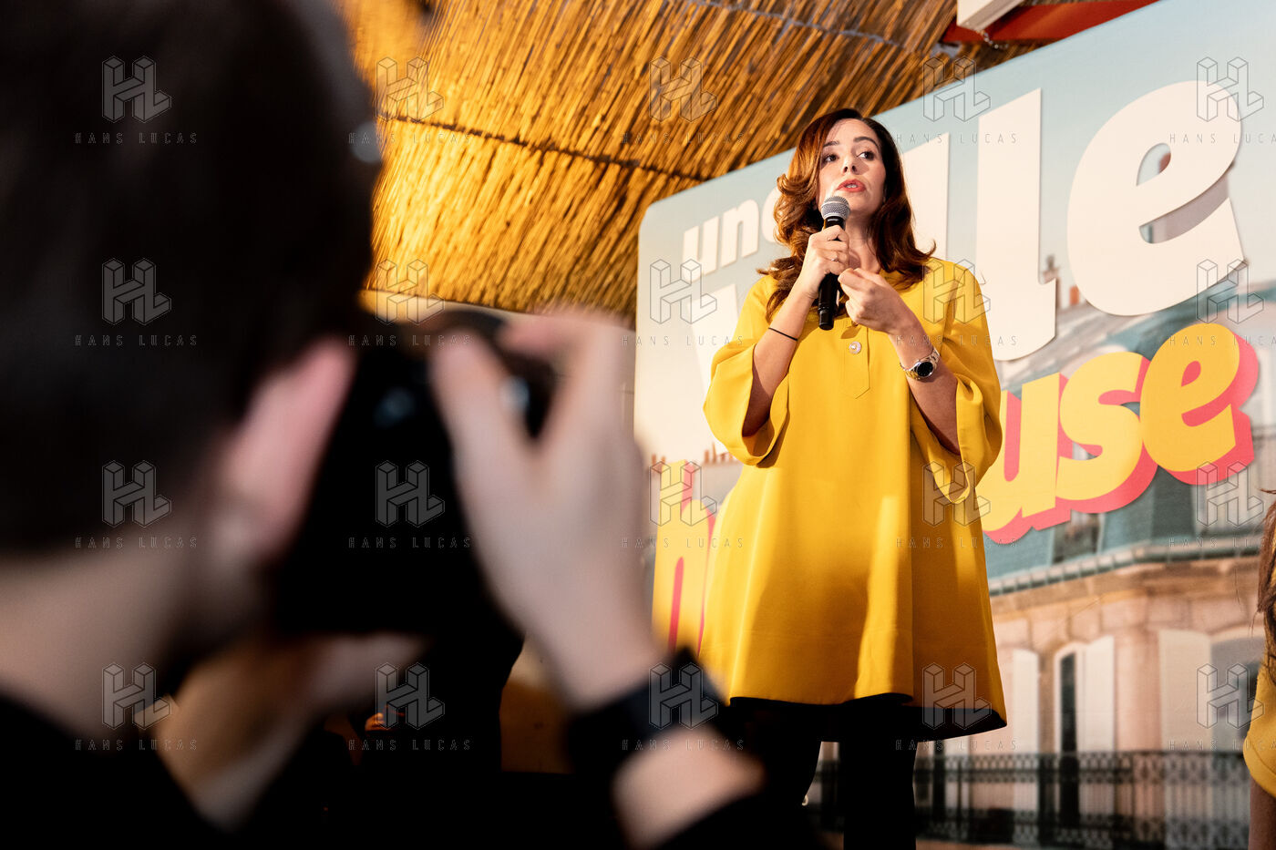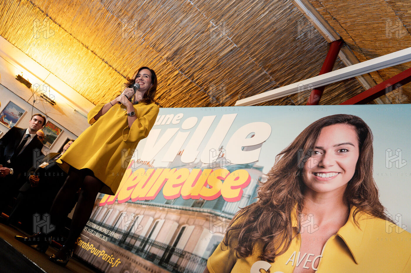 Meeting de campagne de Sarah Knafo candidate Reconquête ! à la mairie de Paris pour les élections municipales 2026 dans le 16ème Arrondissement avec les habitants du quartier. Elle a notamment annoncé qu'elle était candidate pour briguer la mairie du 16ème.