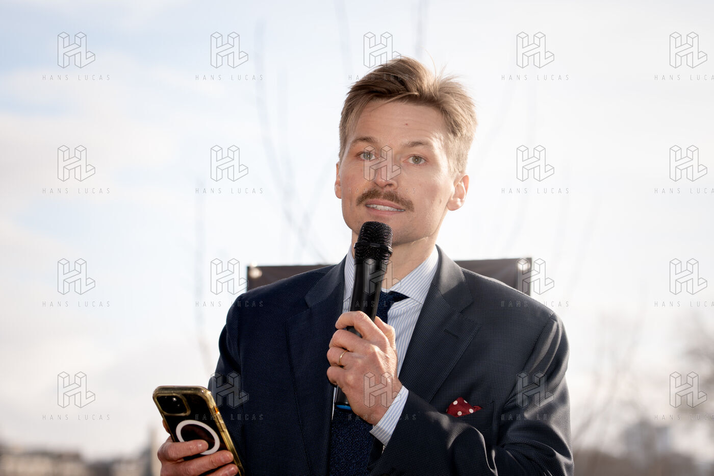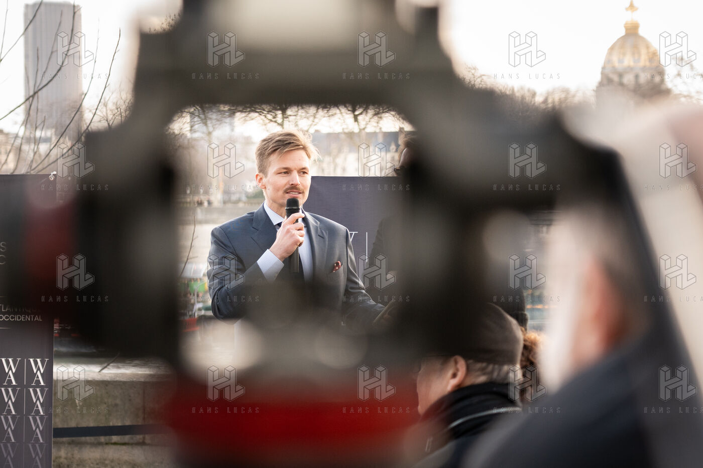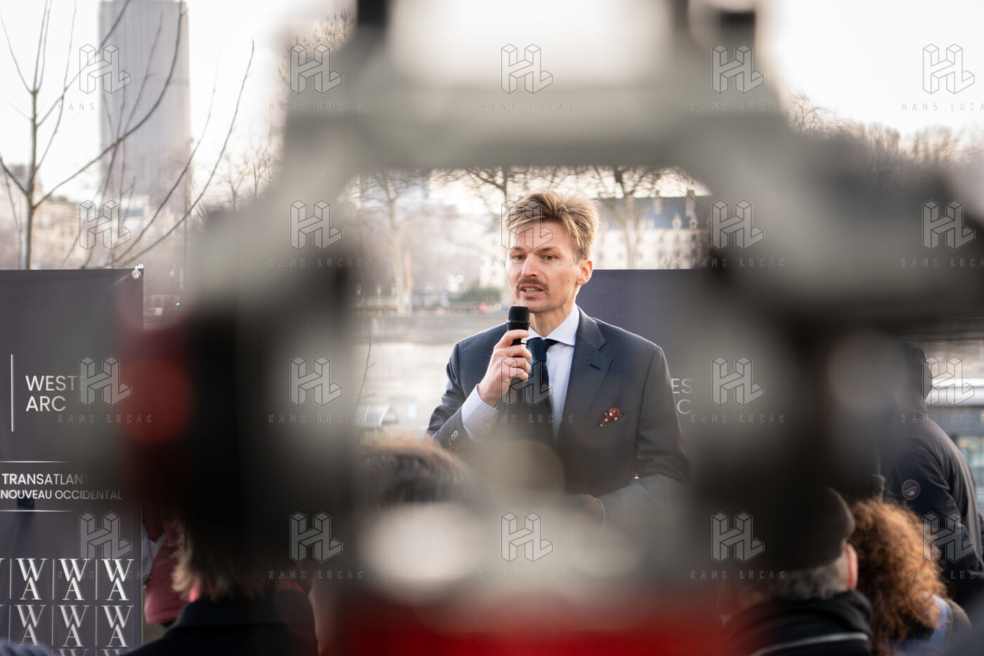 Mobilization organized by Nicolas Conquer, founder of Western Arc, a conservative think tank inspired by MAGA USA, to defend freedom of speech after the raid on the premises of social network X in Paris.
