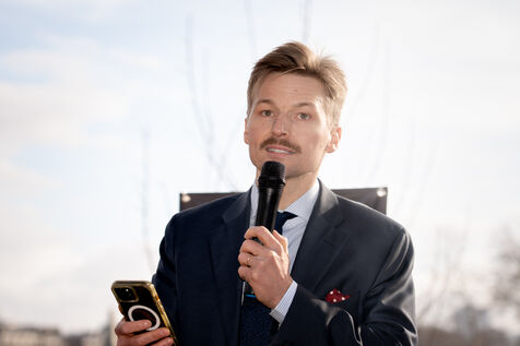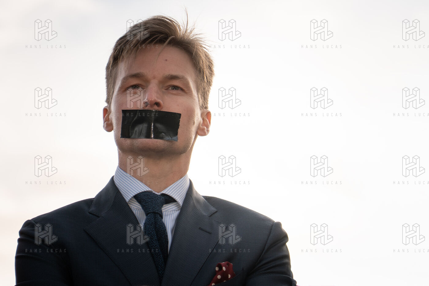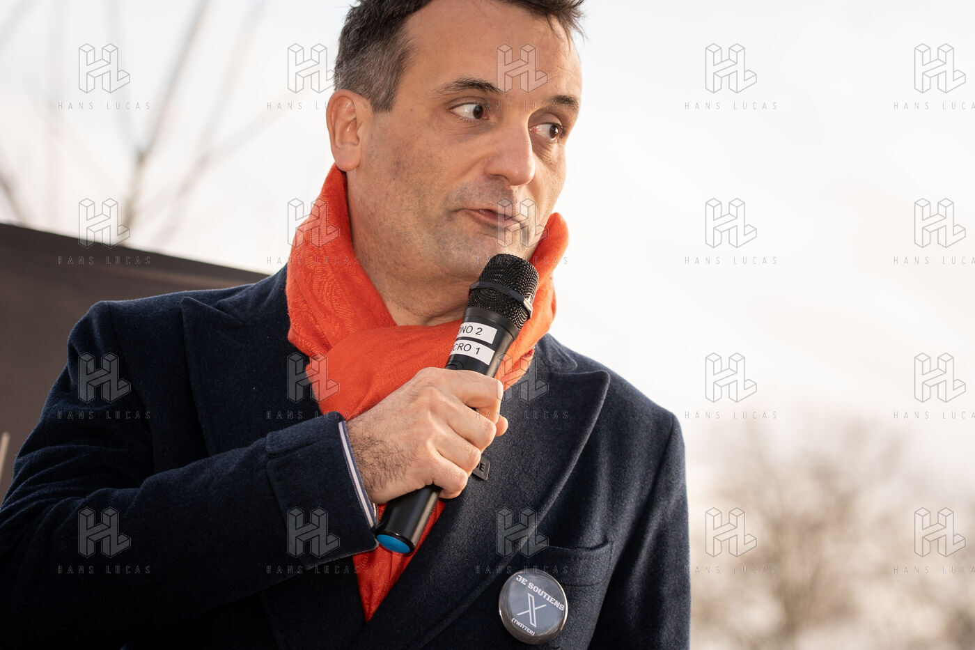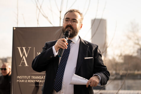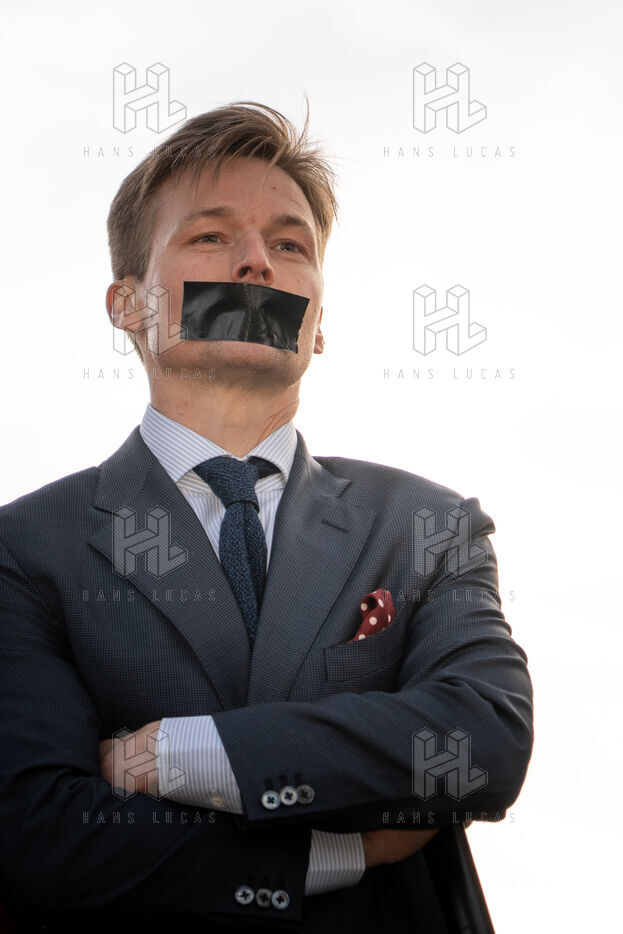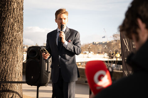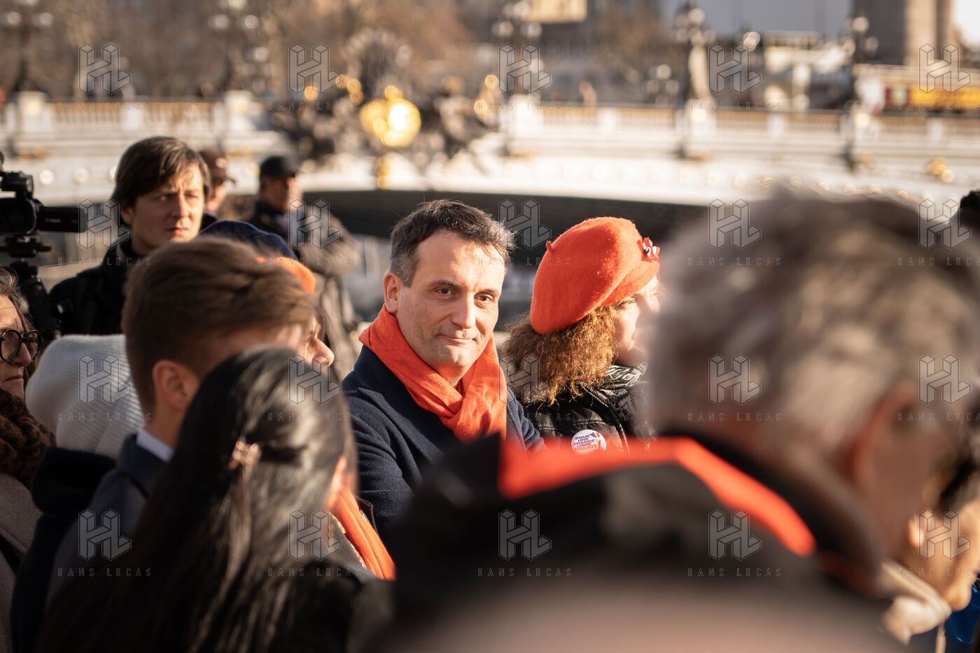 Mobilization organized by Nicolas Conquer, founder of Western Arc, a conservative think tank inspired by MAGA USA, to defend freedom of speech after the raid on the premises of social network X in Paris.