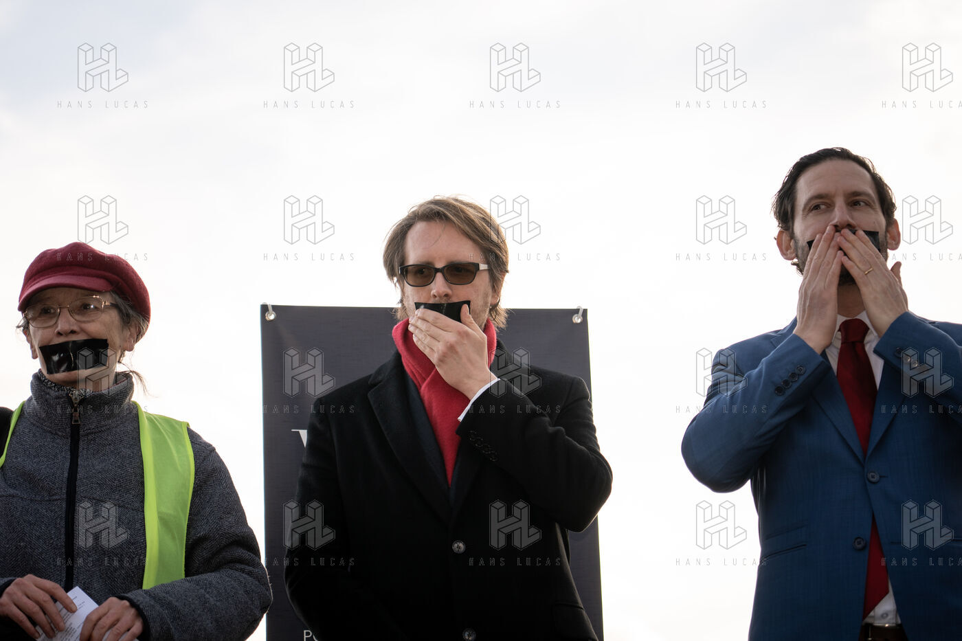 Mobilisation organisée par Nicolas Conquer, fondateur de Western Arc do tank conservateur inspiré par l'Amérique MAGA, pour défendre la liberté d'expression après la perquisition des locaux du réseau social X à Paris.