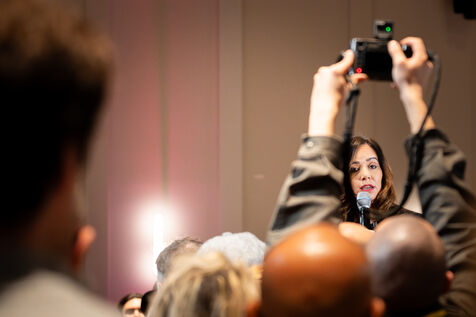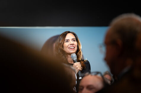Réunion publique de Sarah Knafo, candidate à la Mairie au Studio Saint Honore dans le 2ème arrondissement dans le cadre de la campagne pour les élections municipales 2026 de Paris sur le thème de l'entreprenariat.