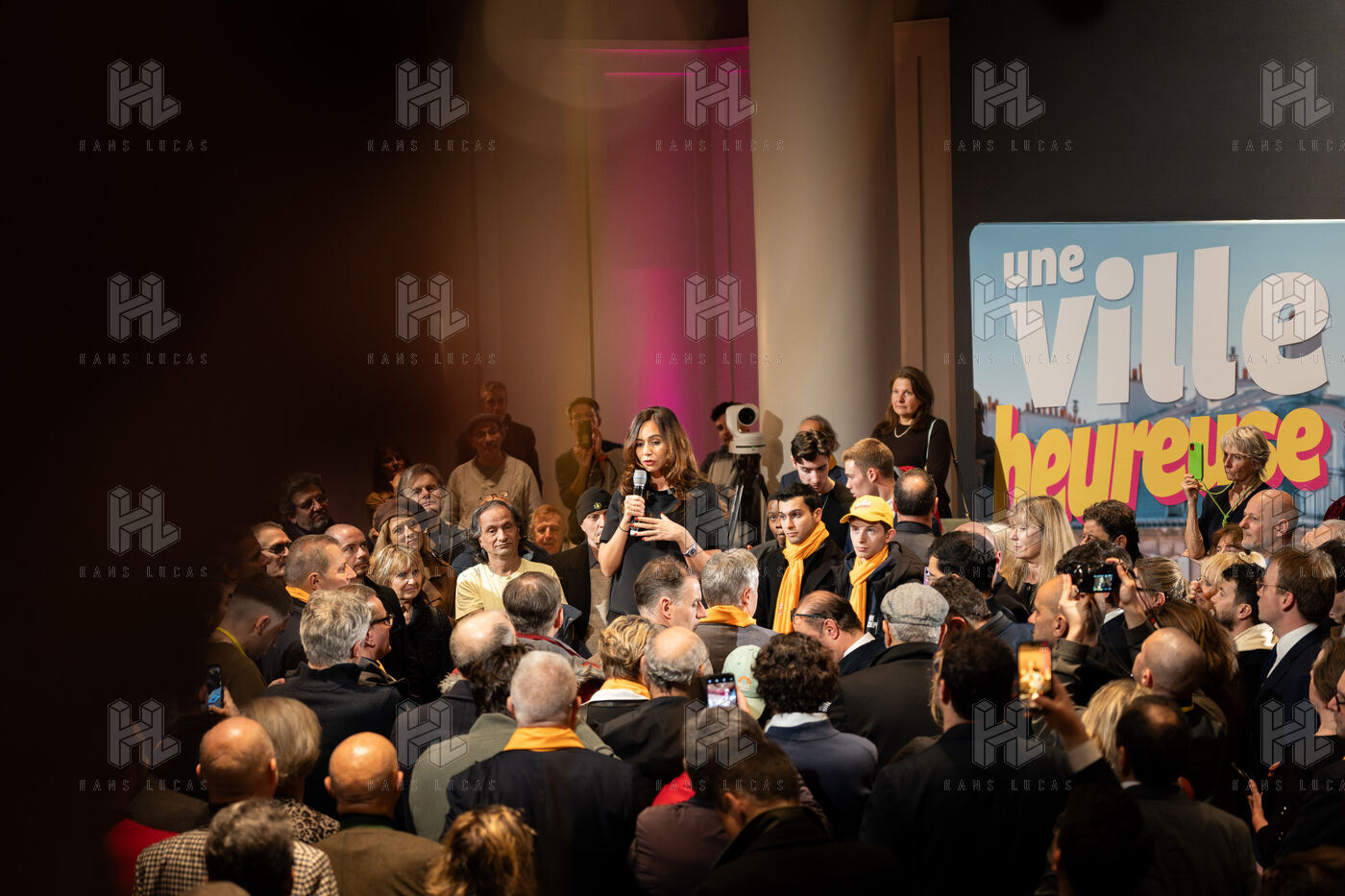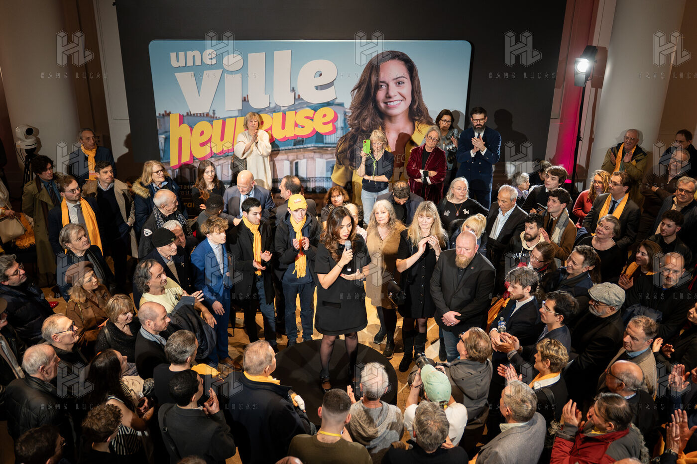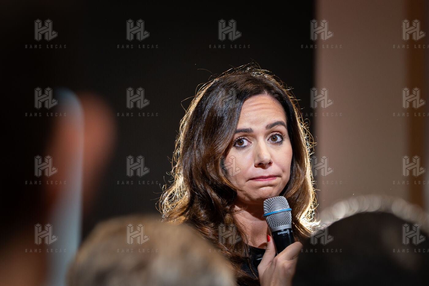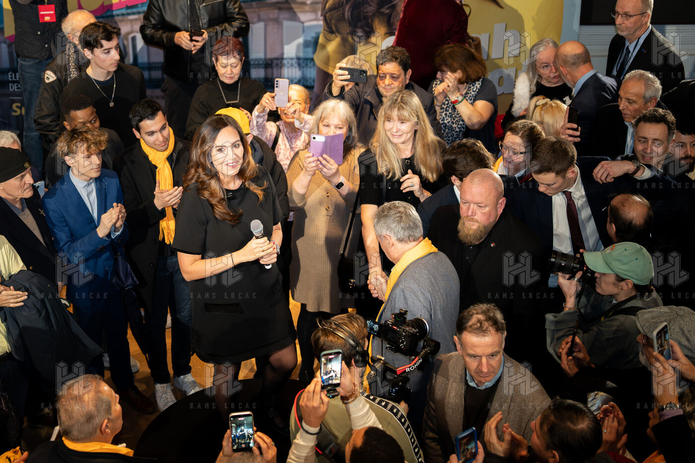 Public meeting with Sarah Knafo, candidate for mayor, at Studio Saint Honore in the 2nd arrondissement as part of the campaign for the 2026 Paris municipal elections on the theme of entrepreneurship.