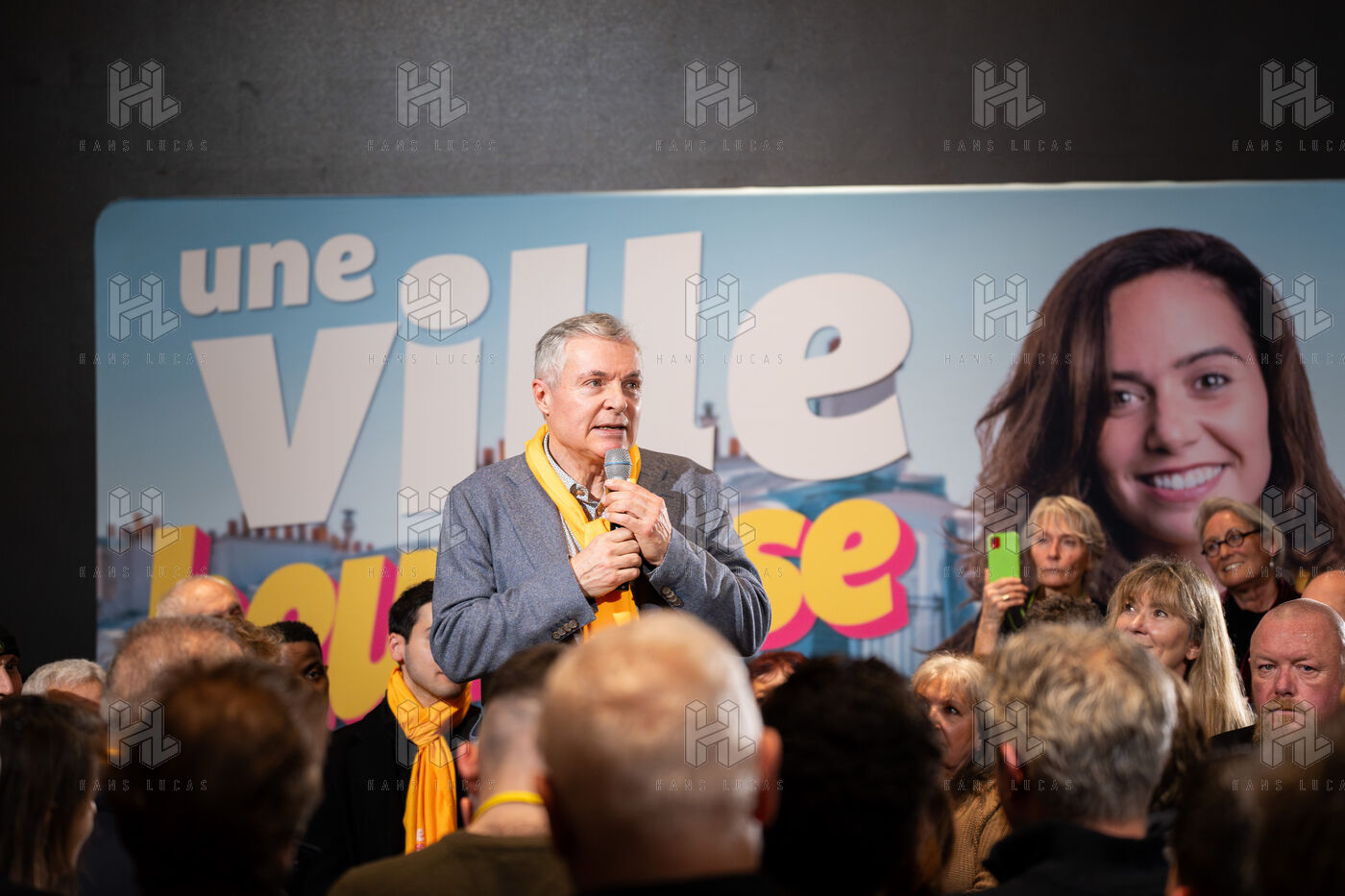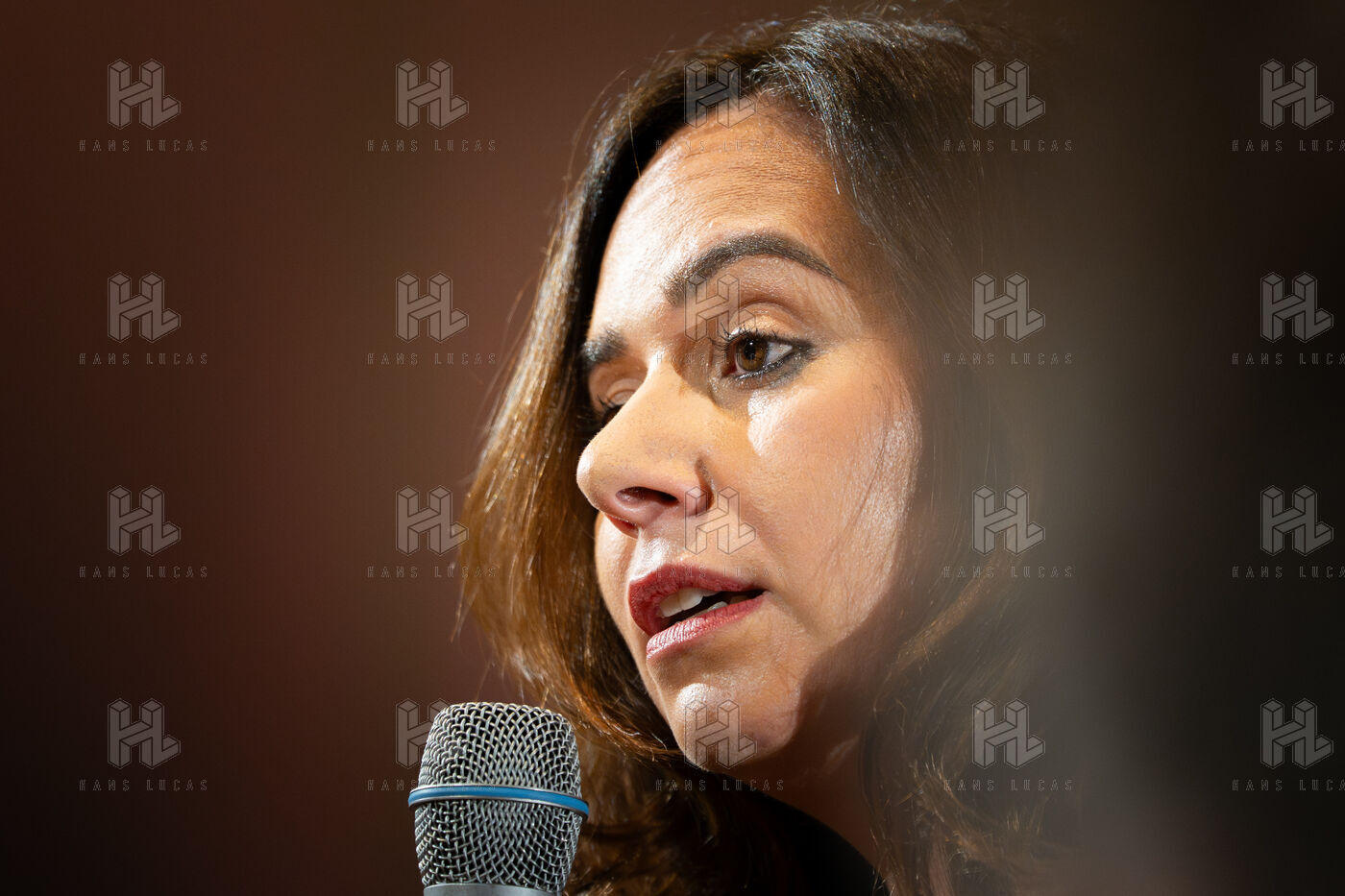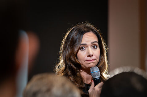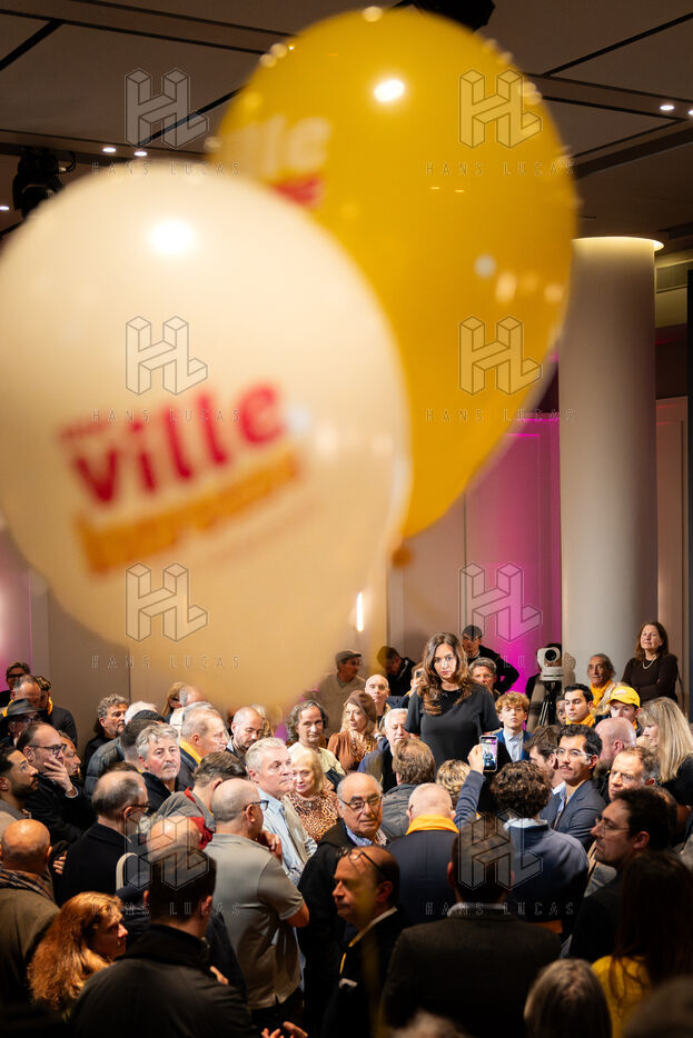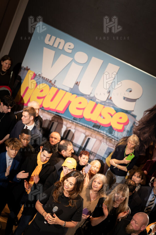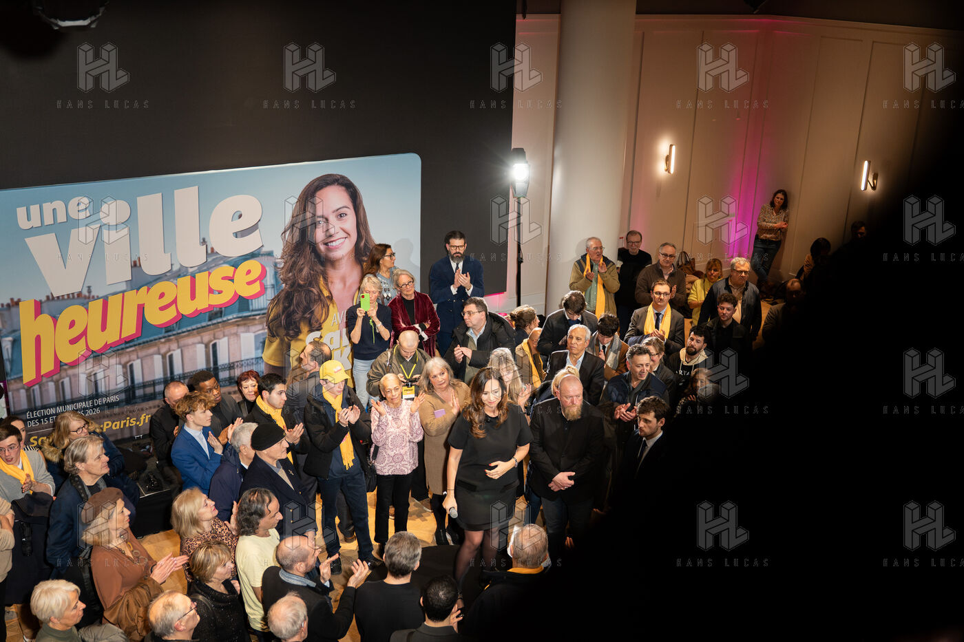 Public meeting with Sarah Knafo, candidate for mayor, at Studio Saint Honore in the 2nd arrondissement as part of the campaign for the 2026 Paris municipal elections on the theme of entrepreneurship.